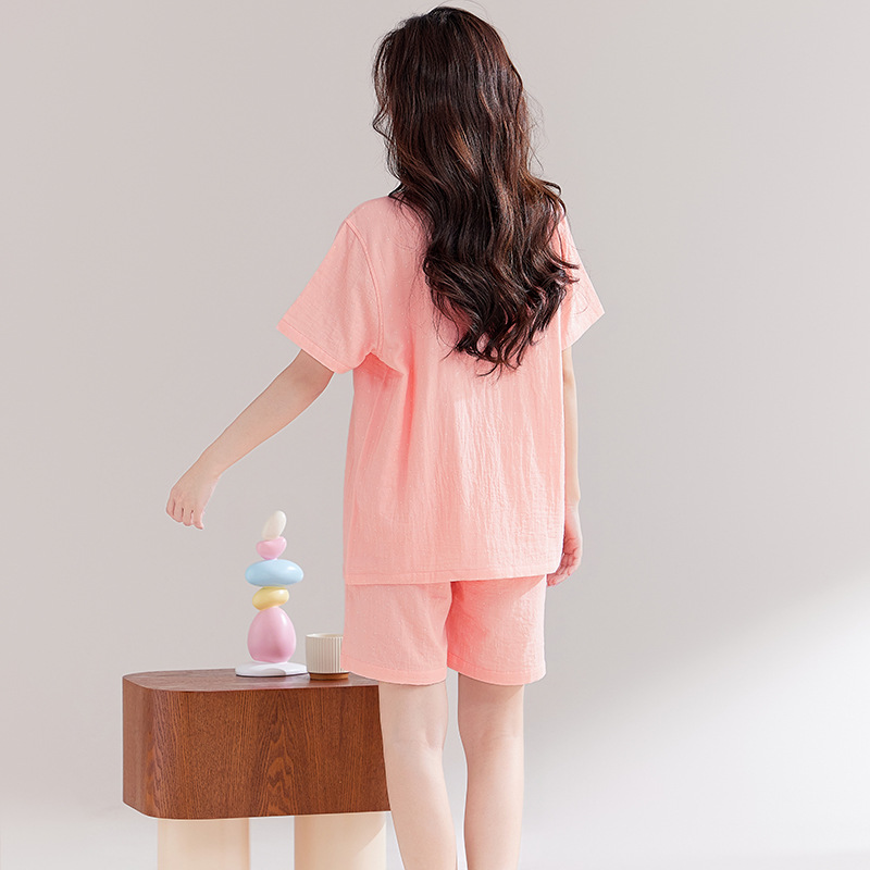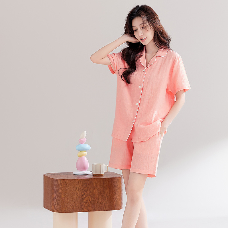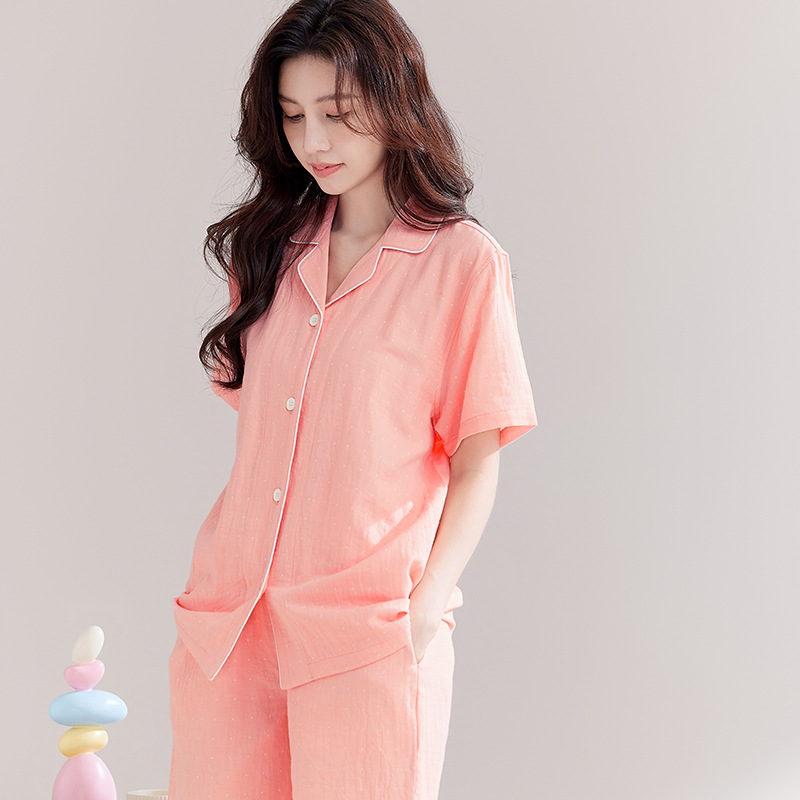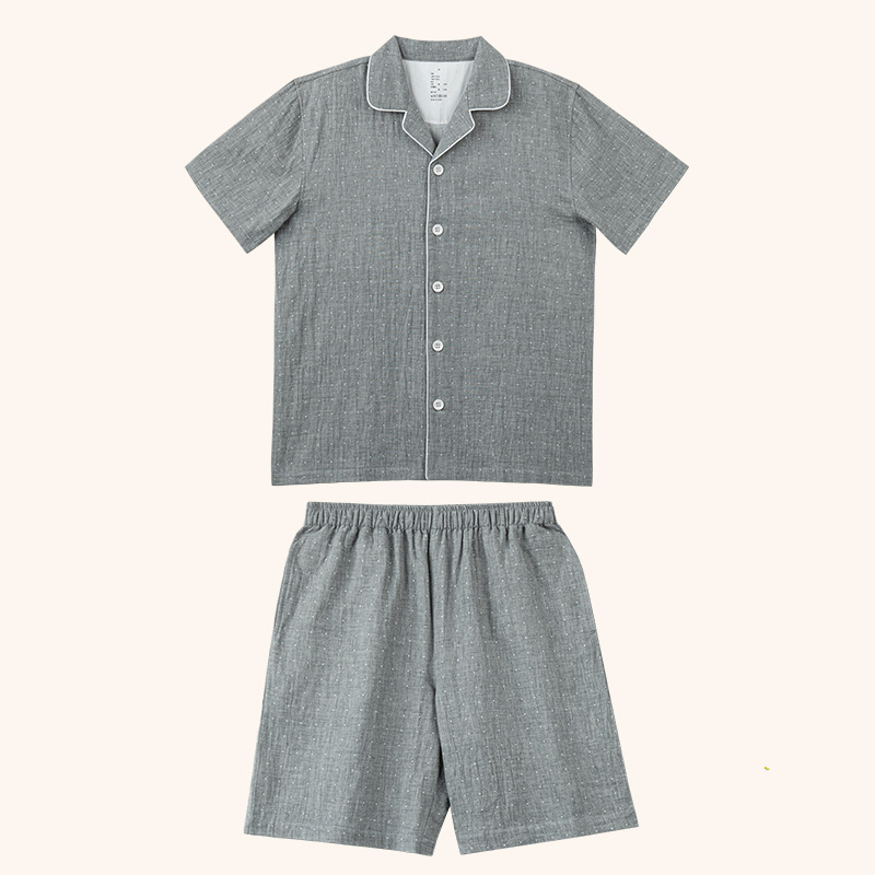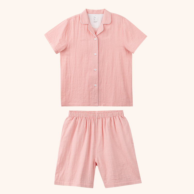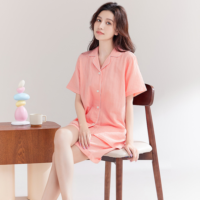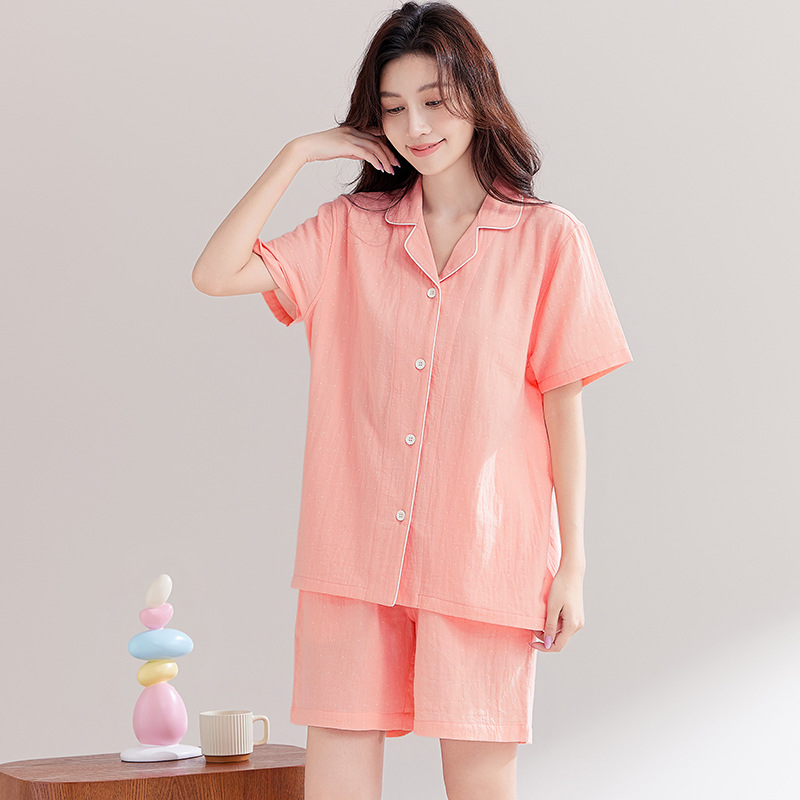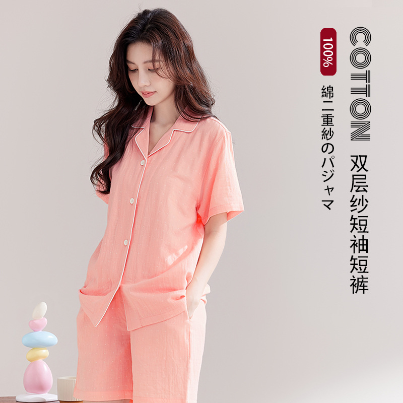 【双层纱波点家居服】全棉双层纱波点家居服短袖短裤夏季睡衣套装情侣居家