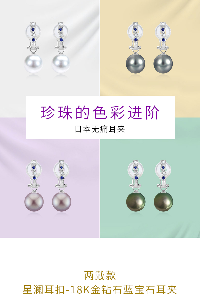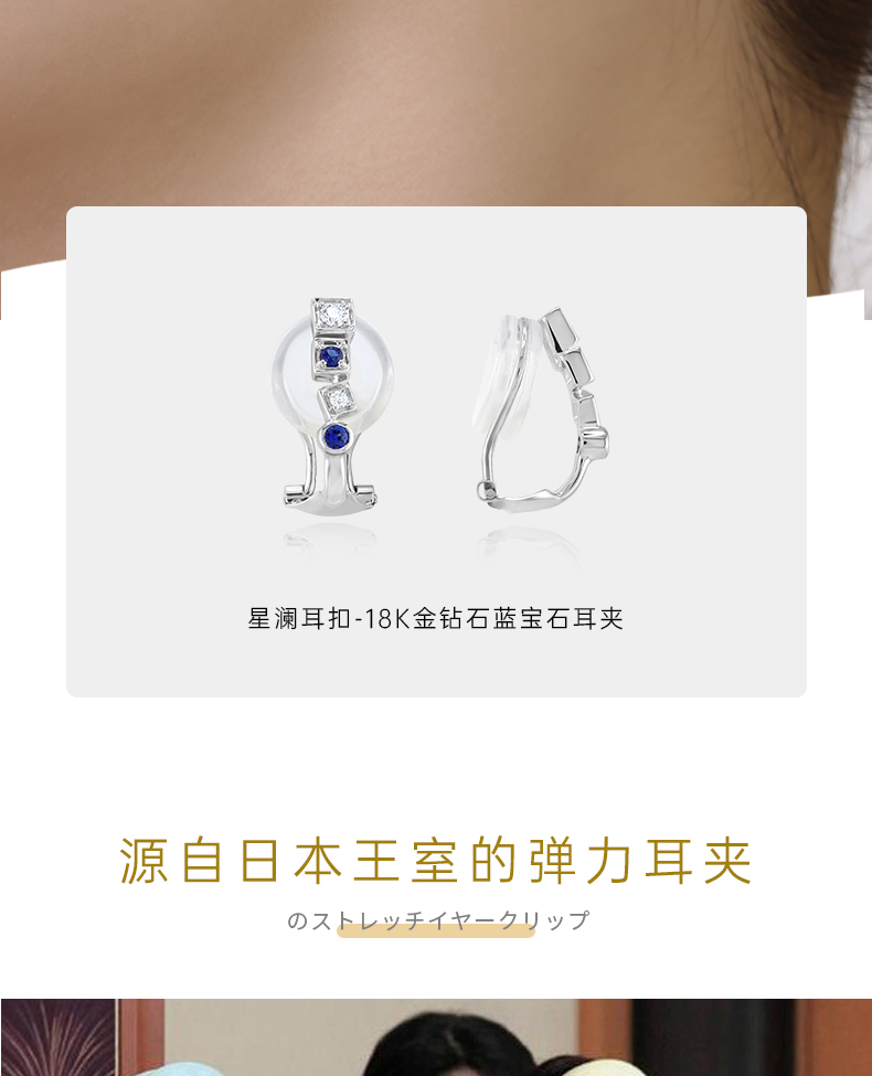 【天猫同款】悦甄 星澜耳扣款-两戴18K金蓝宝石钻石耳夹