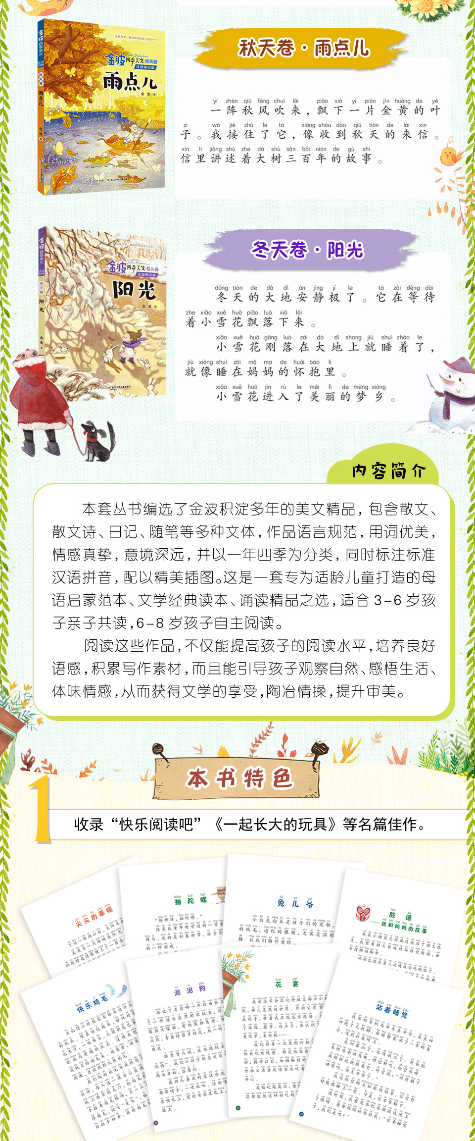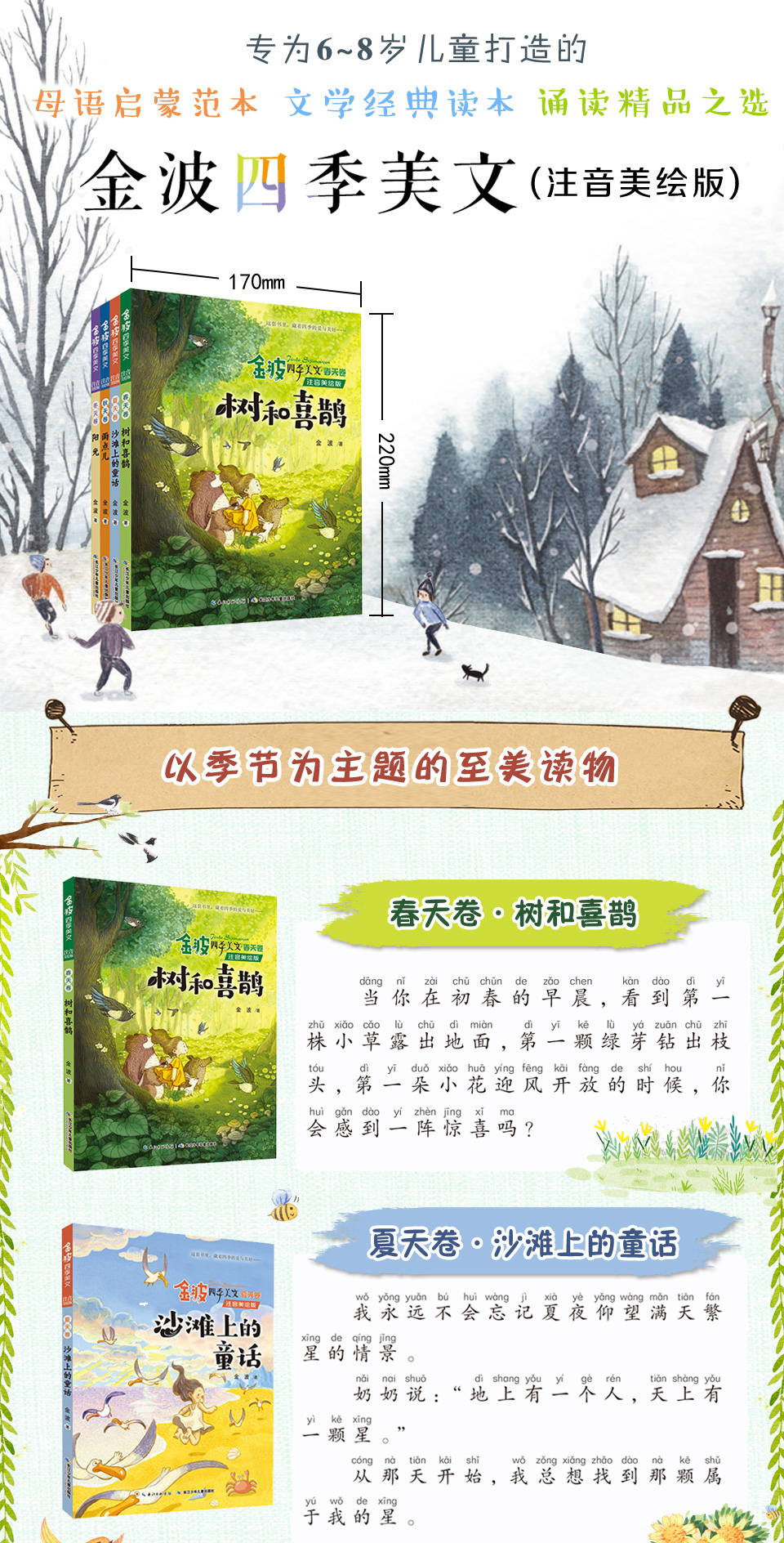 金波四季美文全套4册注音版 树和喜鹊 小学生阅读 二年级必读课外书老师推荐 经典儿童诗选 小学一年级书籍适合的一二童话集作品选