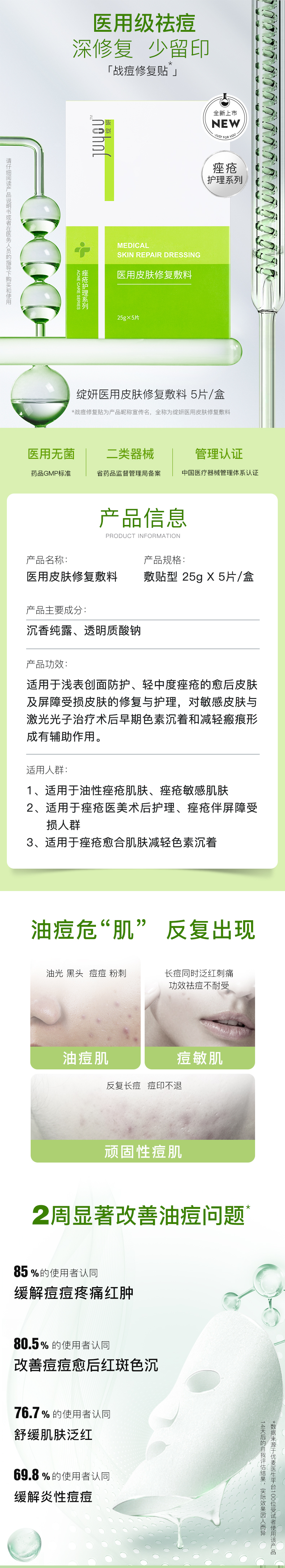 绽妍医用皮肤修复敷料(祛痘面膜)25g5片