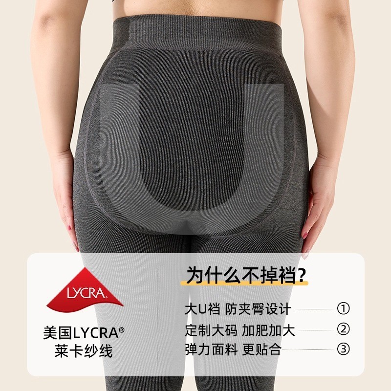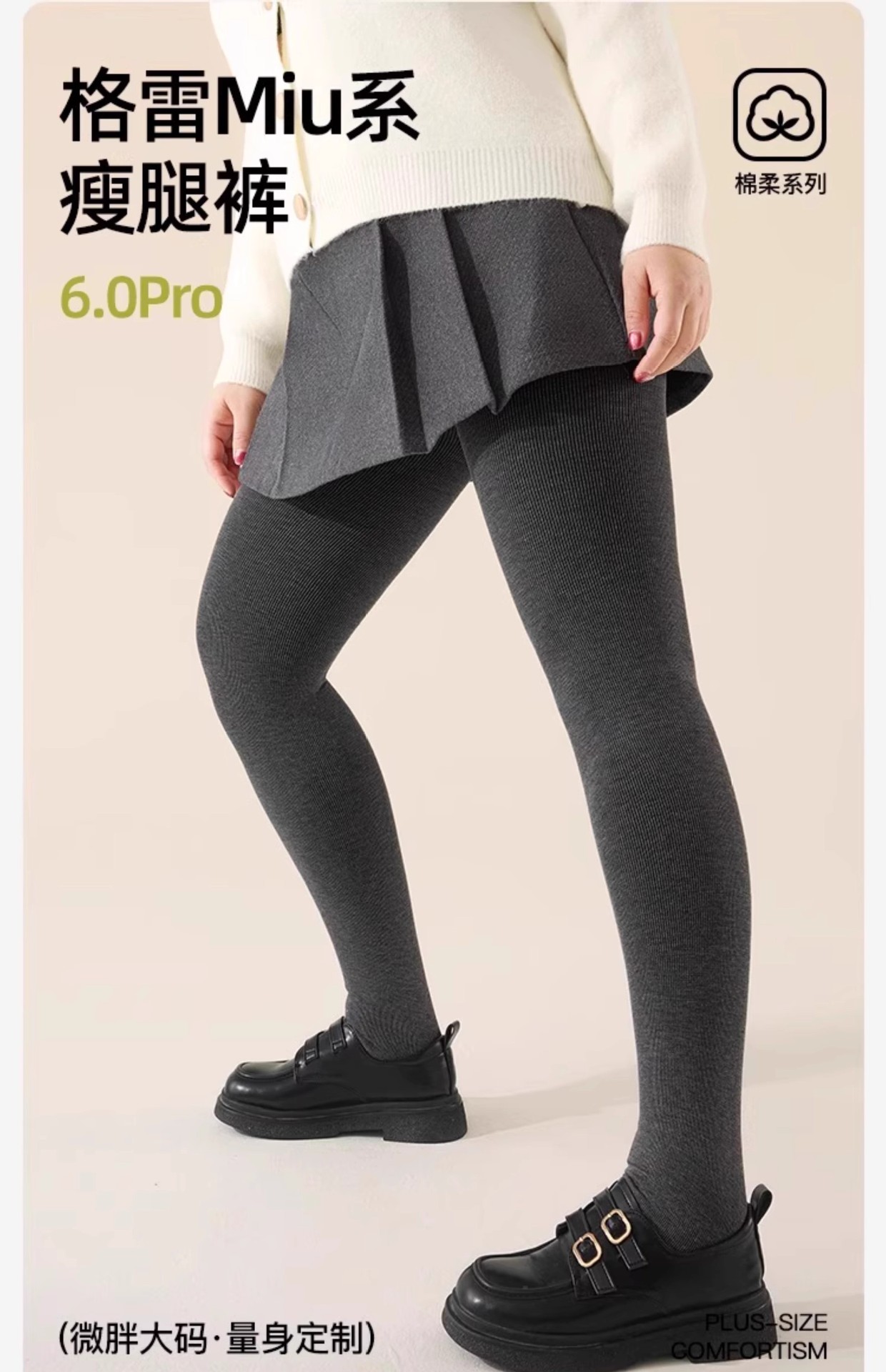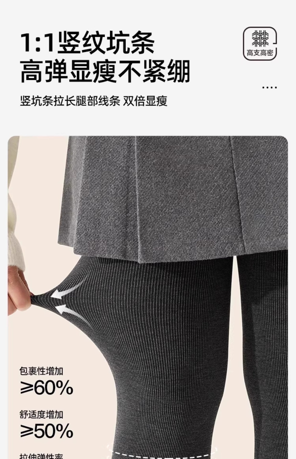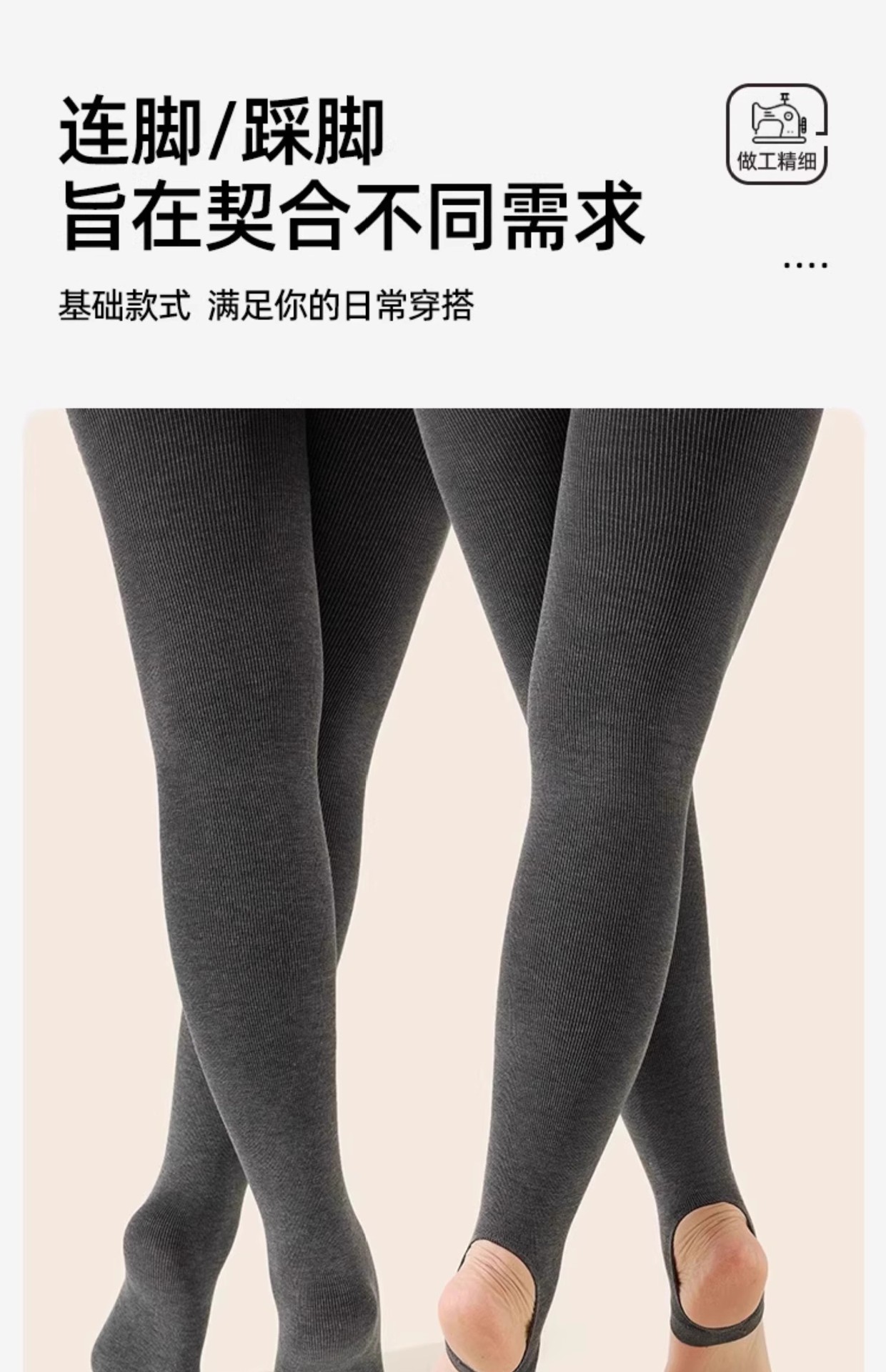 【棉质亲肤❗️高弹显瘦】特大码连裤袜棉竖条纹打底袜灰色秋冬加肥加大保暖提臀一体裤。ja
