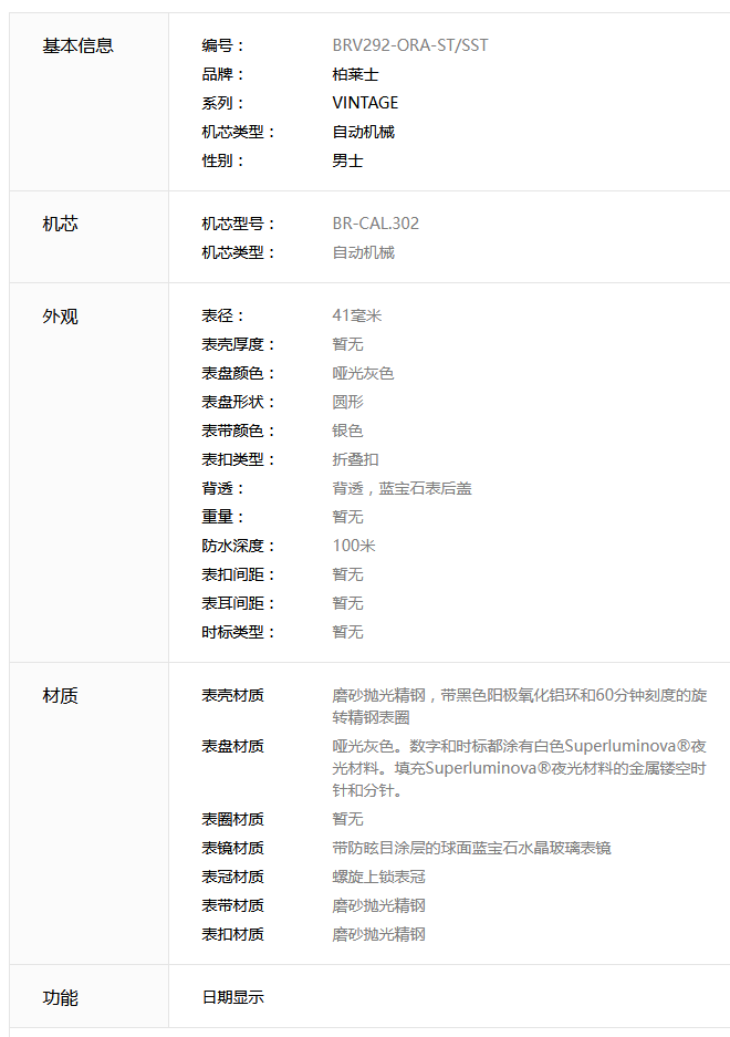 Bell & Ross 柏莱士 VINTAGE 系列 BRV292-ORA-ST/SST 腕表