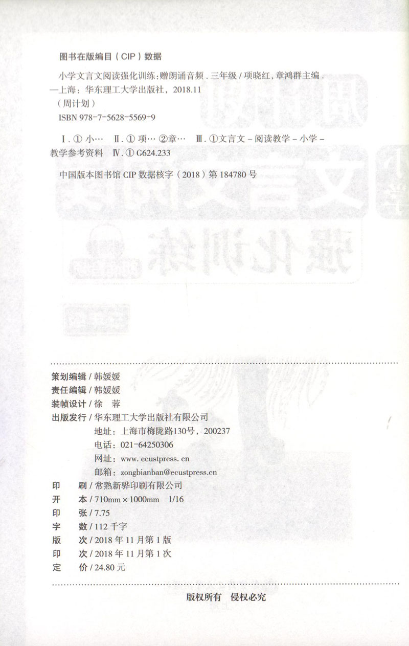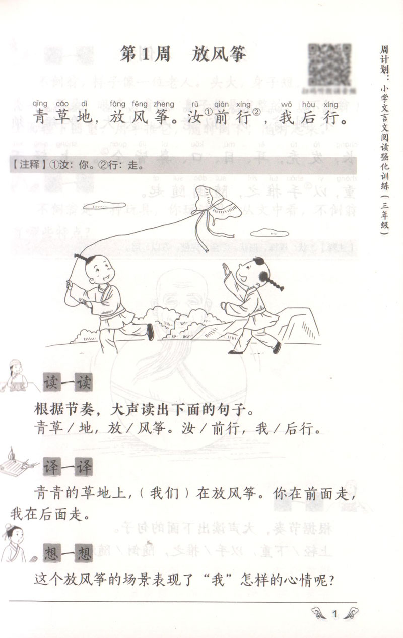 小学 周计划 文言文阅读 强化训练 三年级/3年级 赠朗诵音频 每天10分钟 文言文变轻松 专业诵读扫码即听 漫画图解 快速入门