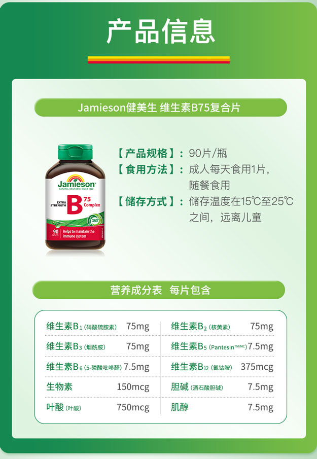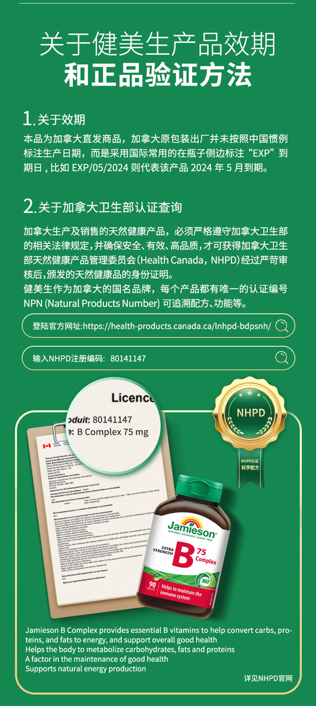【保税仓直发】Jamieson健美生维生素B族75mg90粒