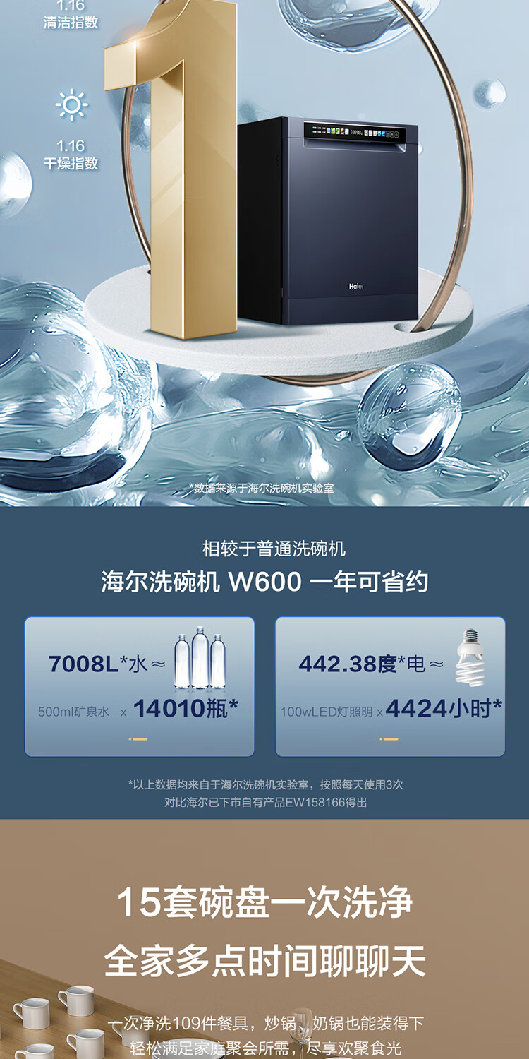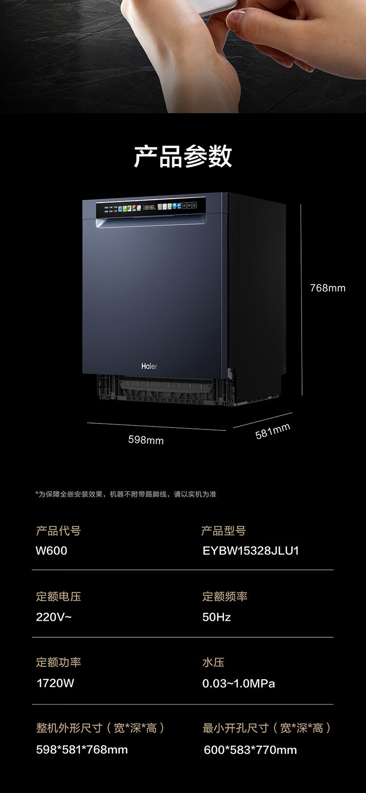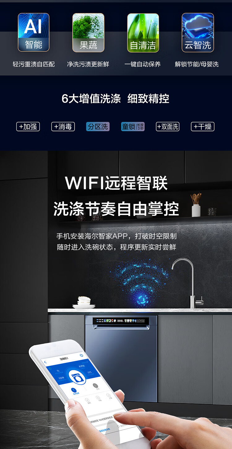 海尔(Haier)15套洗碗机嵌入式W600家用【EYBW15328JLU1】