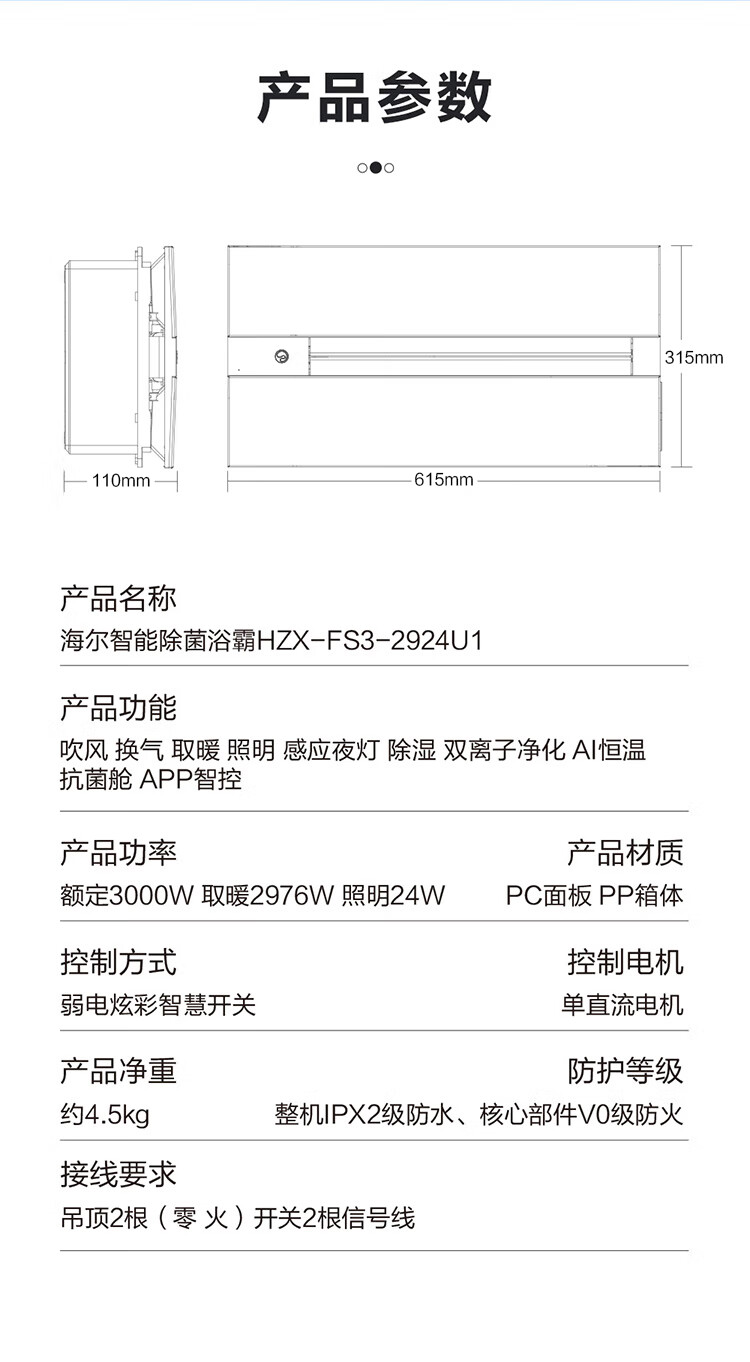 海尔风暖浴霸卫生间暖风照明排气一体机浴室集成吊顶FS3