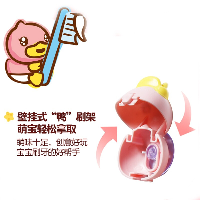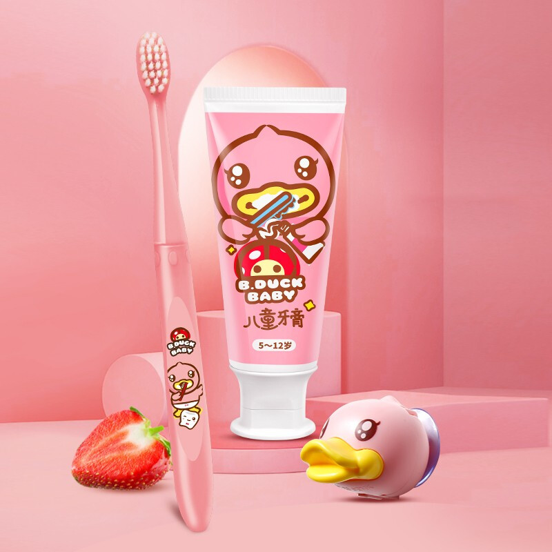 小黄鸭B.Duck Baby-5-12岁儿童牙膏50g+软毛牙刷牙刷架套装含氟固齿防龋齿草莓味/香橙味(三件套)