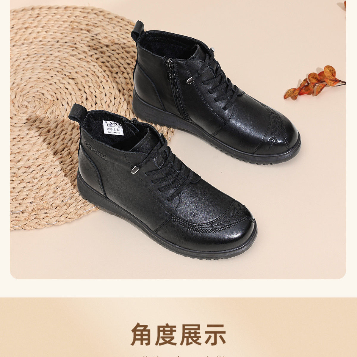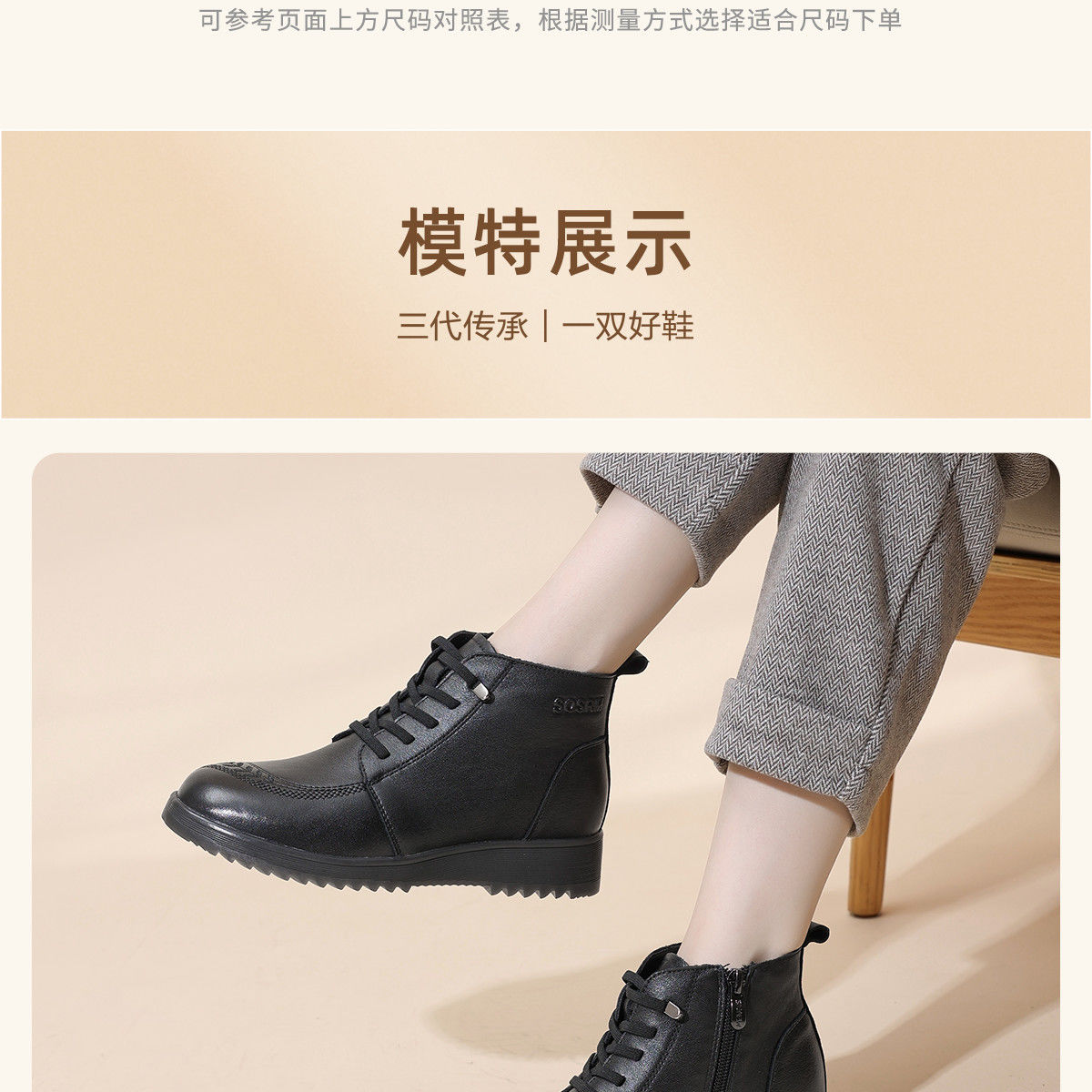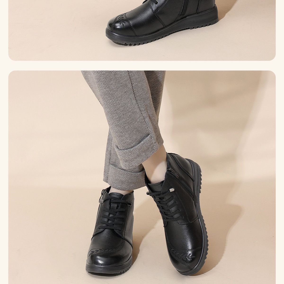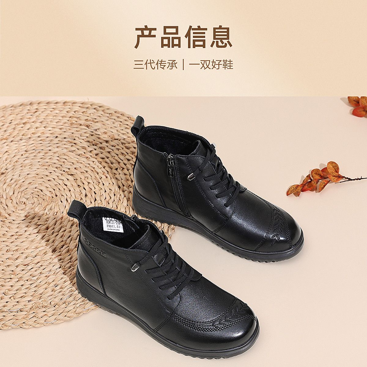 信诺真皮妈妈鞋软底平底加绒保暖棉鞋2025冬季新款中老年女士短靴X5M131-210
