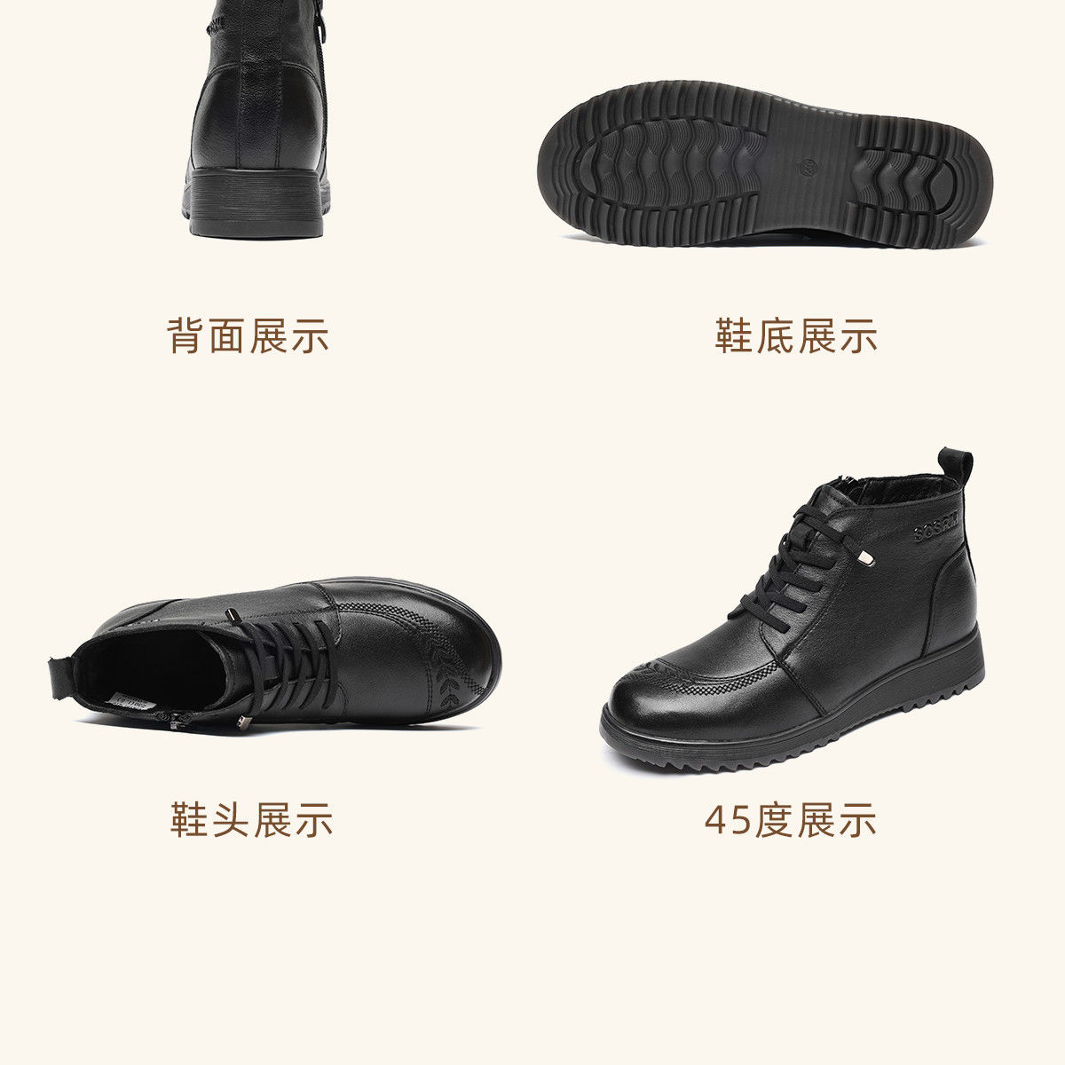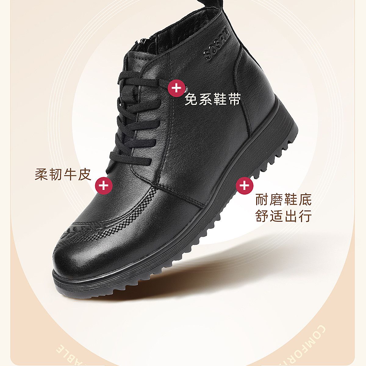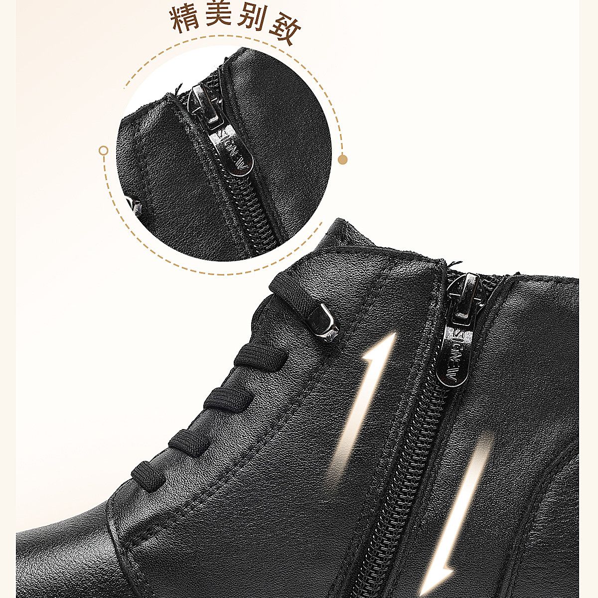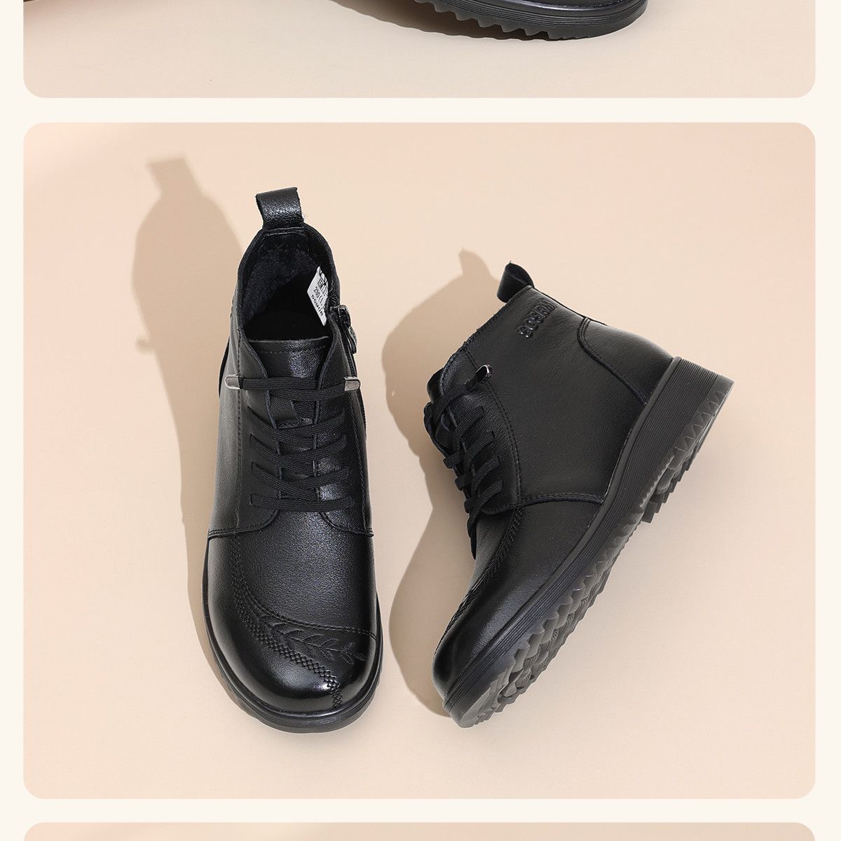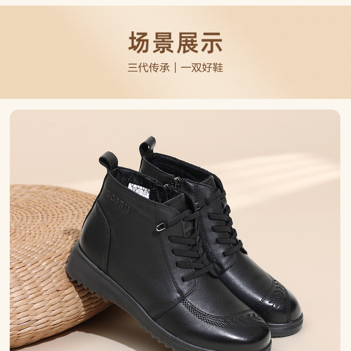 信诺真皮妈妈鞋软底平底加绒保暖棉鞋2025冬季新款中老年女士短靴X5M131-210