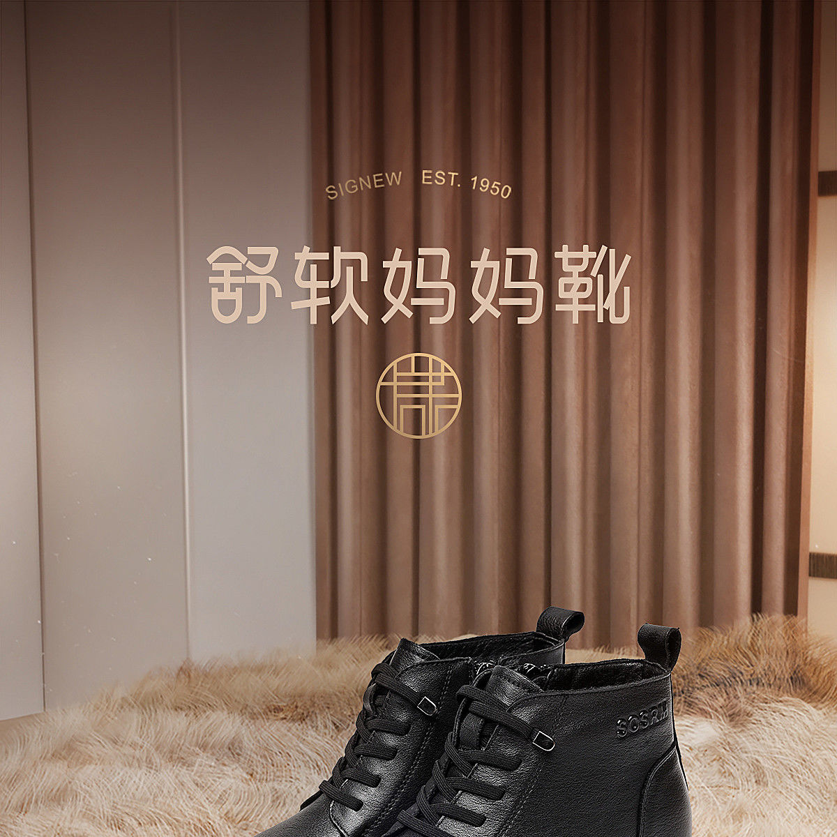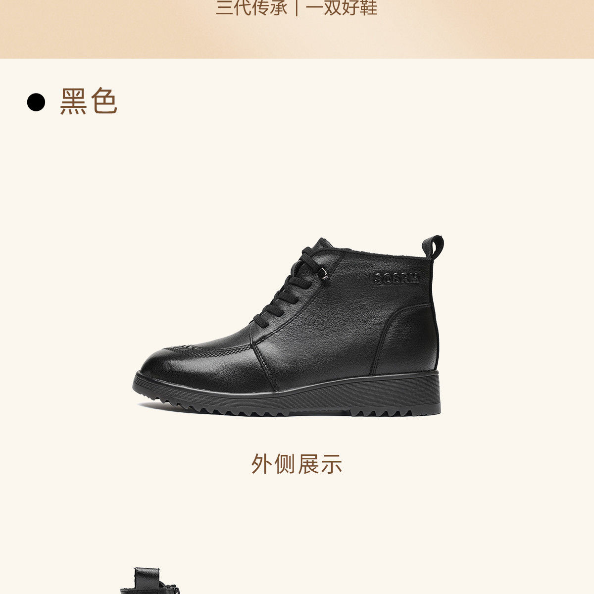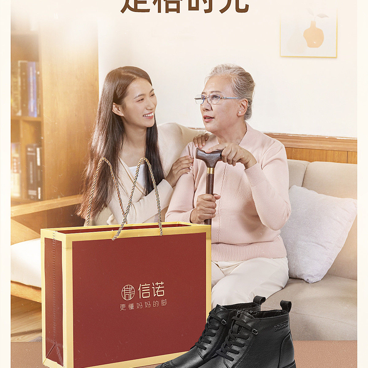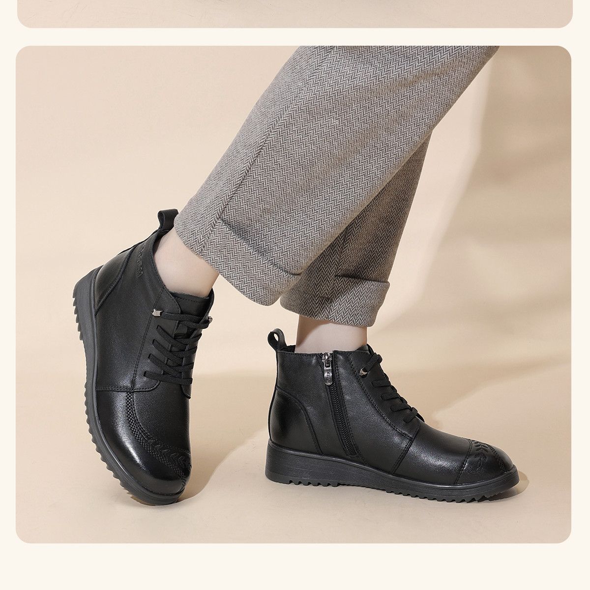 信诺真皮妈妈鞋软底平底加绒保暖棉鞋2025冬季新款中老年女士短靴X5M131-210