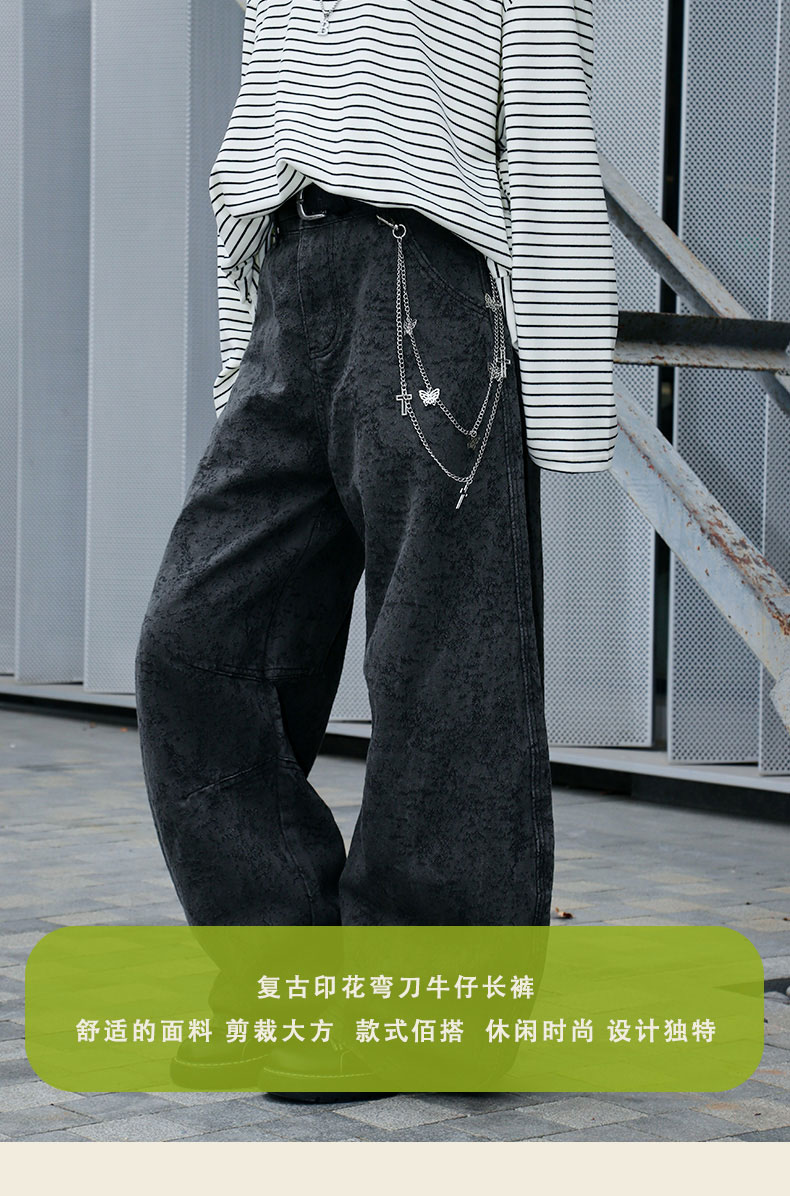 复古印花弯刀牛仔长裤-纪念日百货门店同款169493496