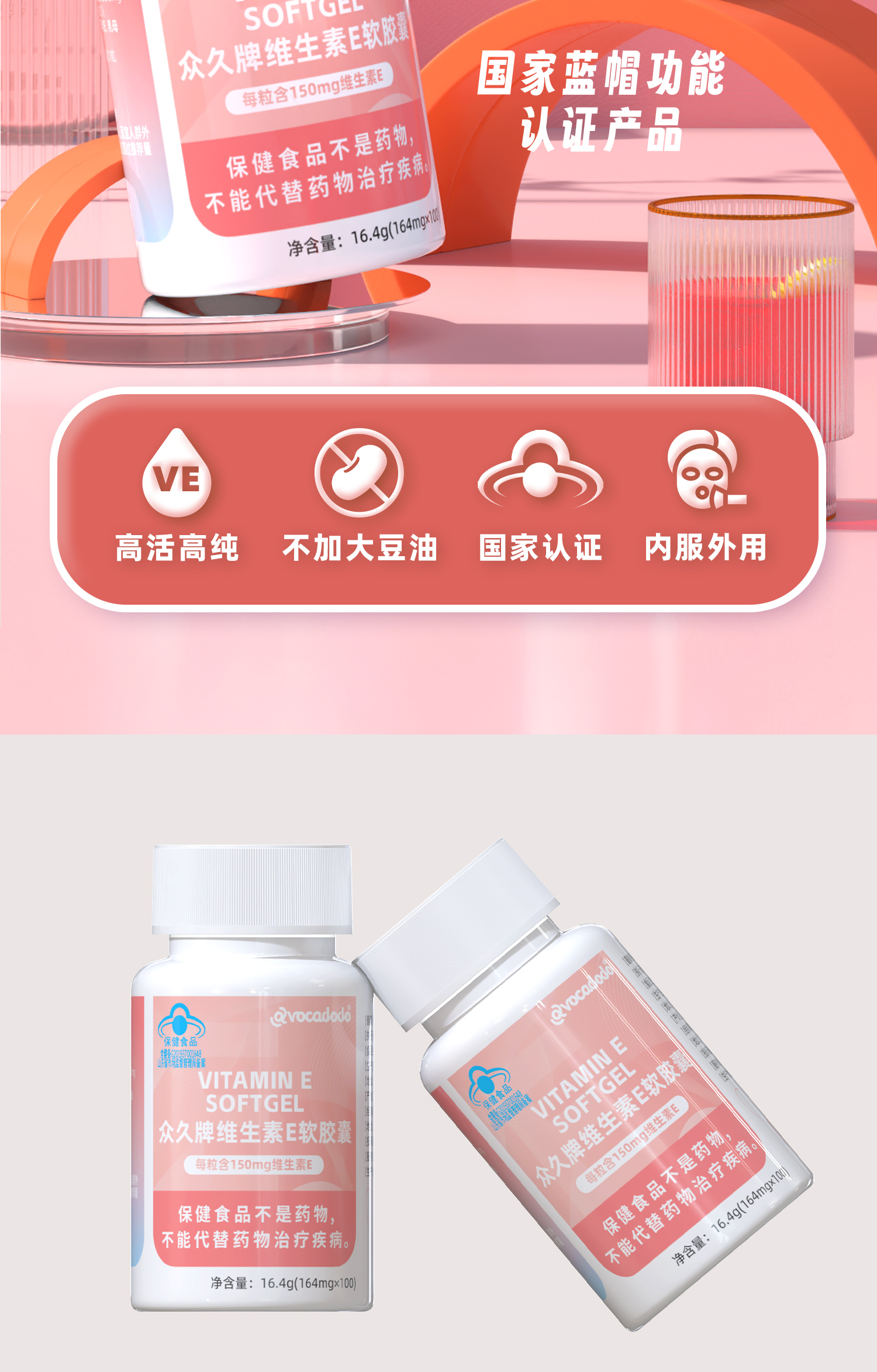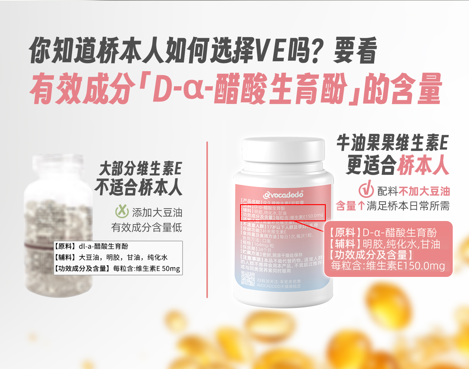 Avocadodo维生素E150mg100粒VE非大豆牛油果果桥本抗体配硒tpoab