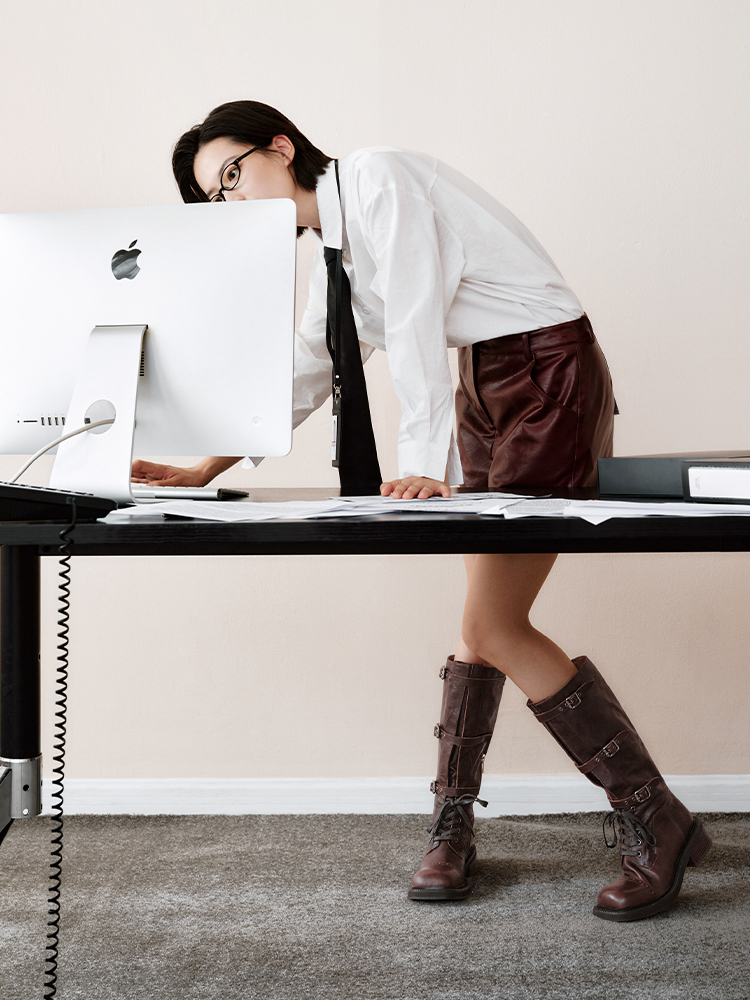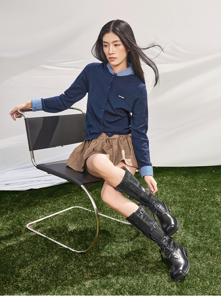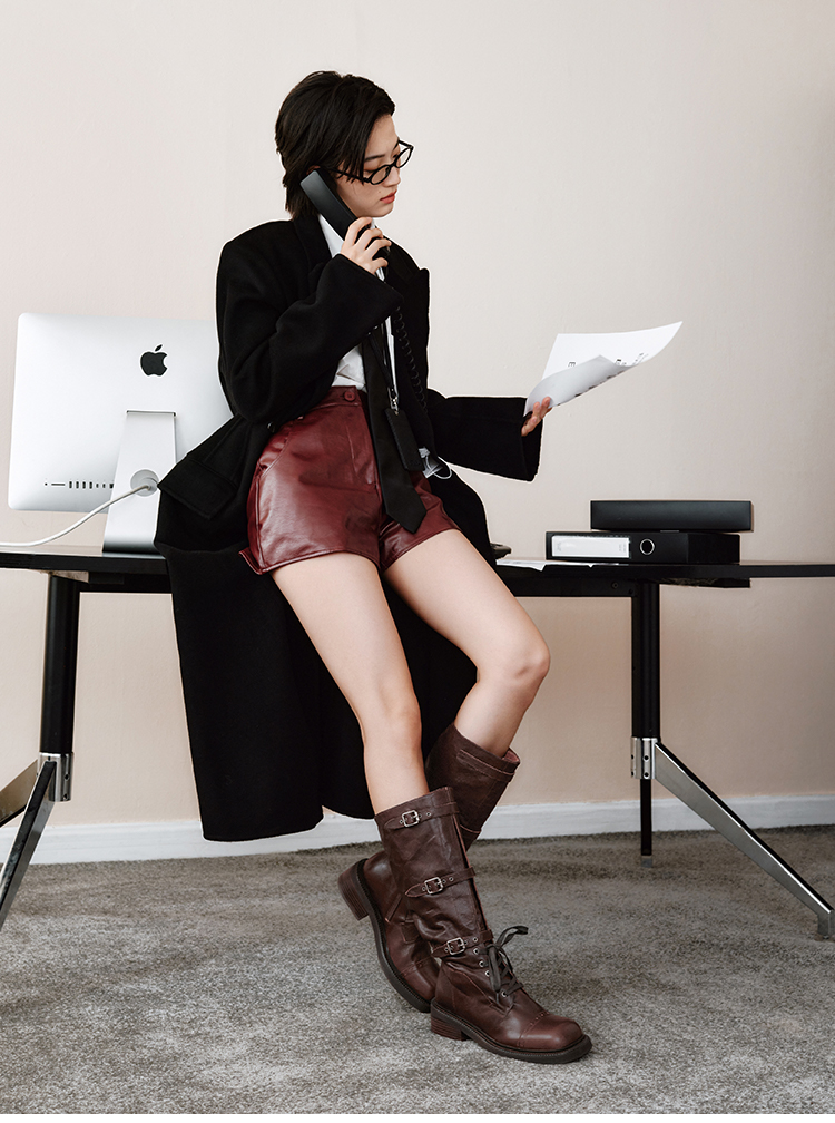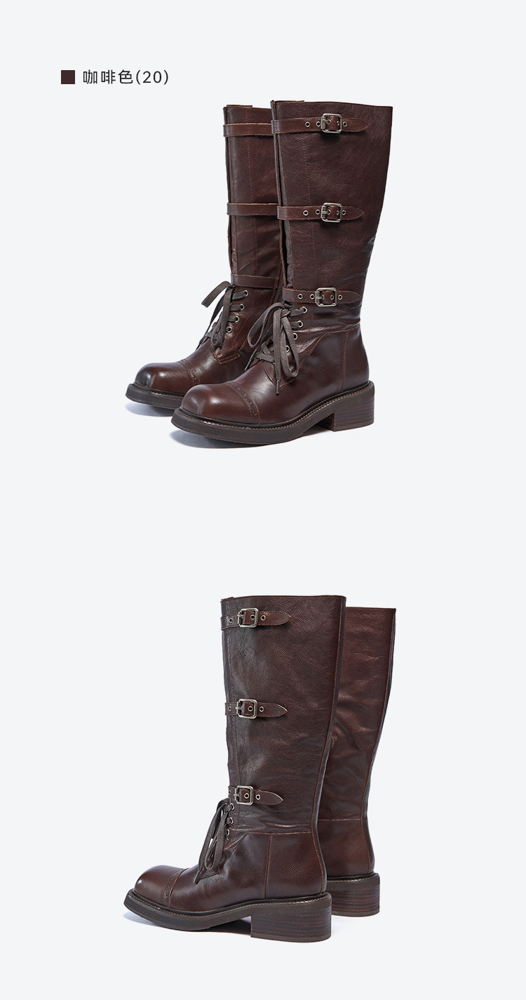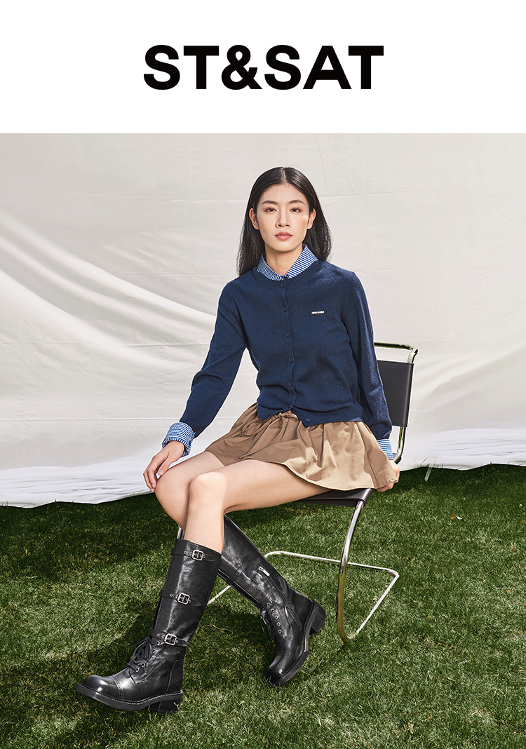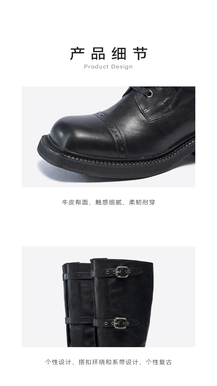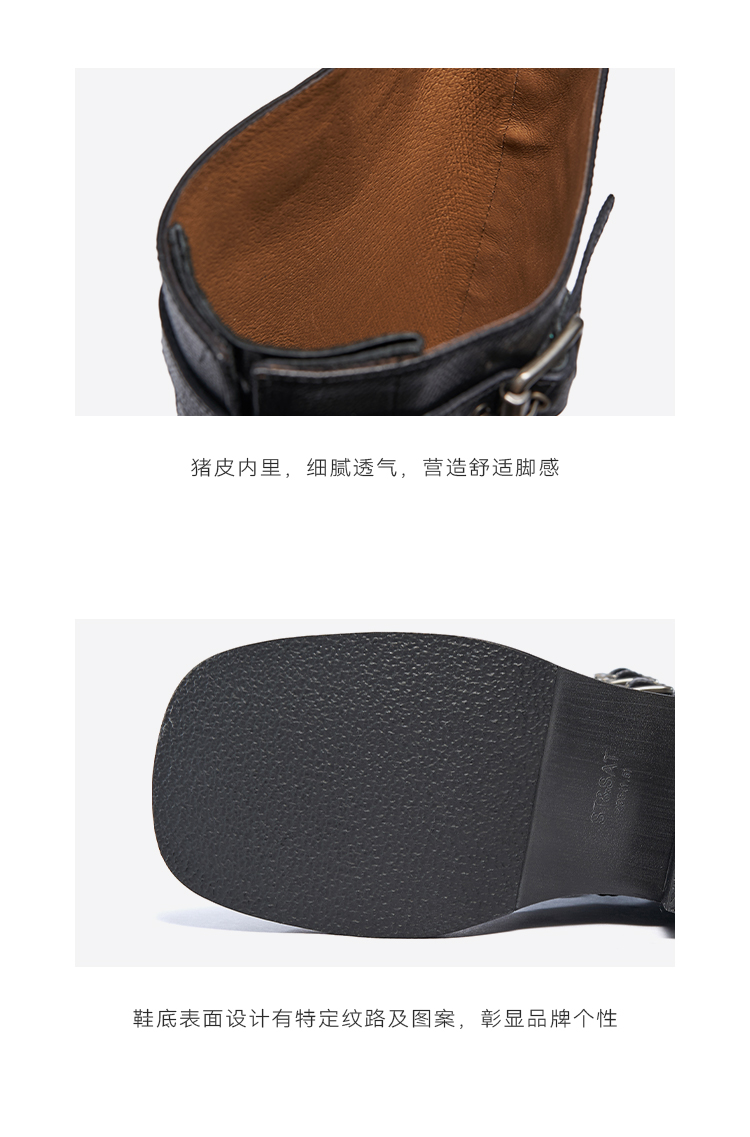 星期六潮流褶皱感复古扣带显瘦长筒靴SSC4117379