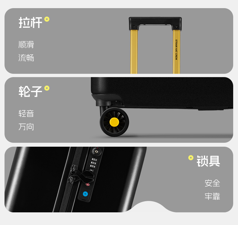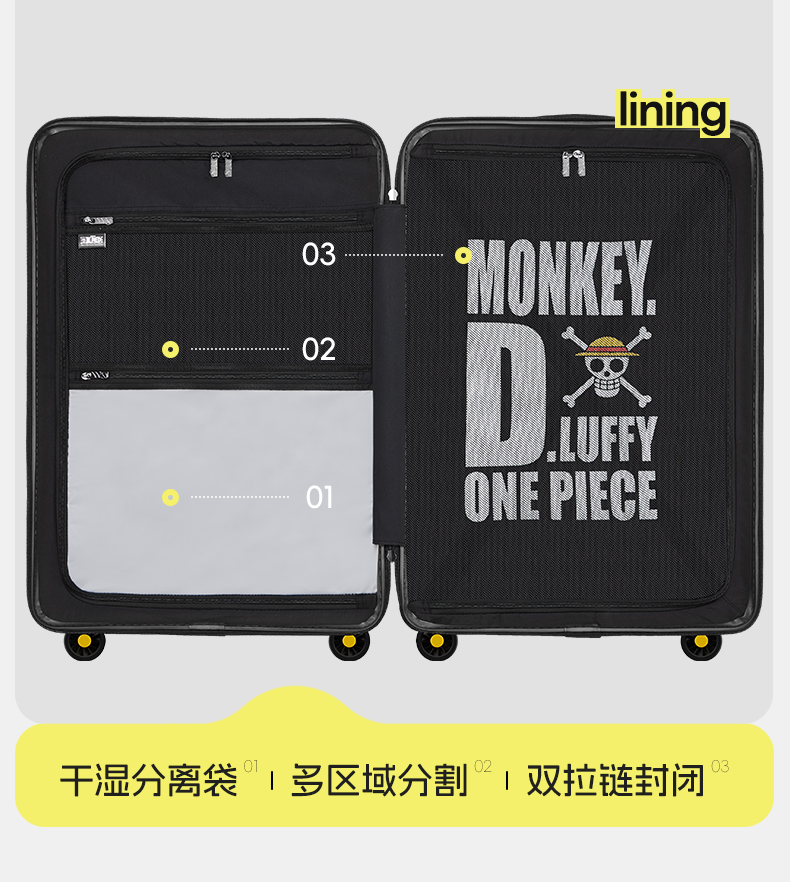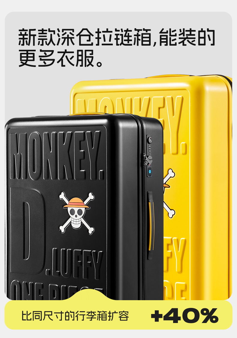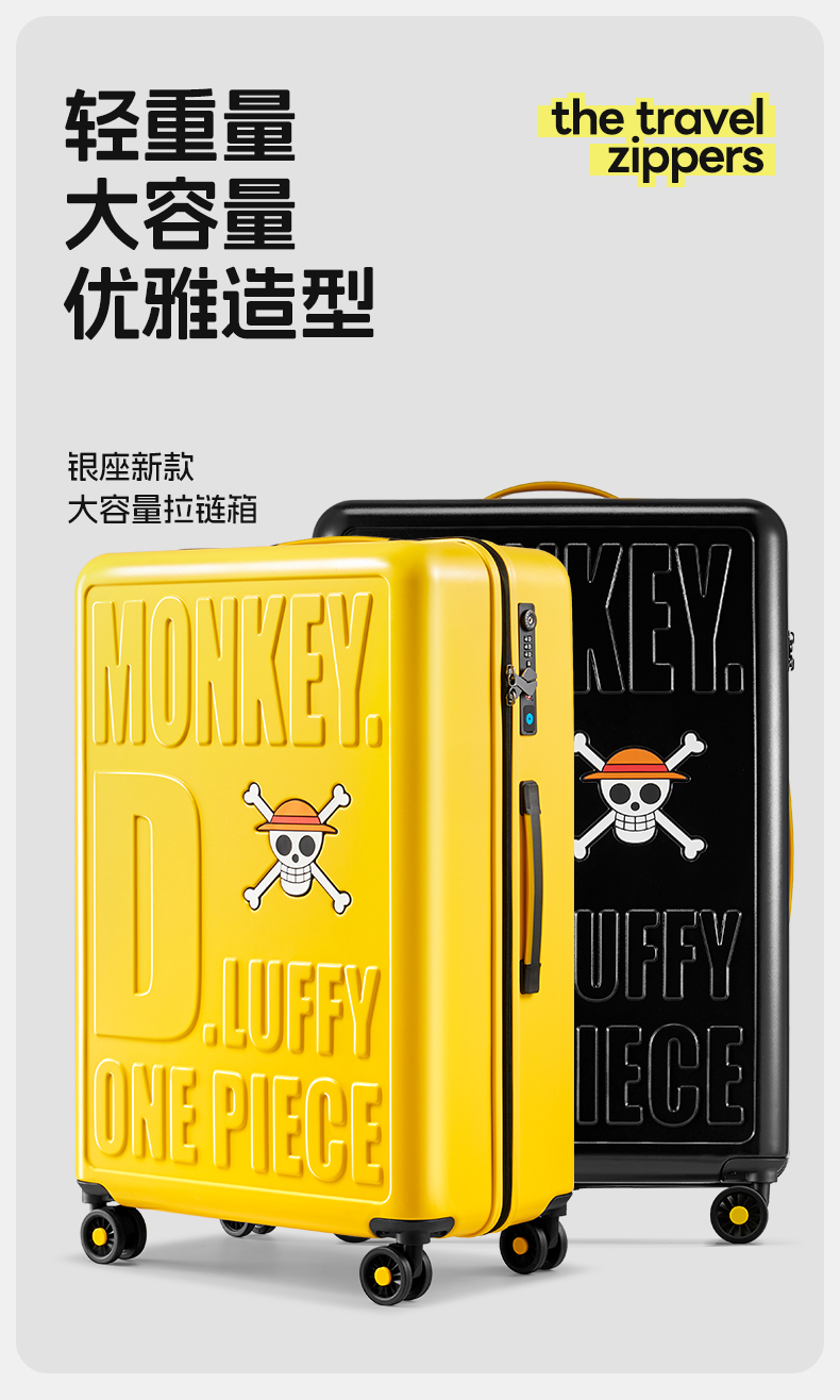 银座GINZA TRAVEL x 航海王路飞正版联名系列USB充电口大容量拉链箱9831L