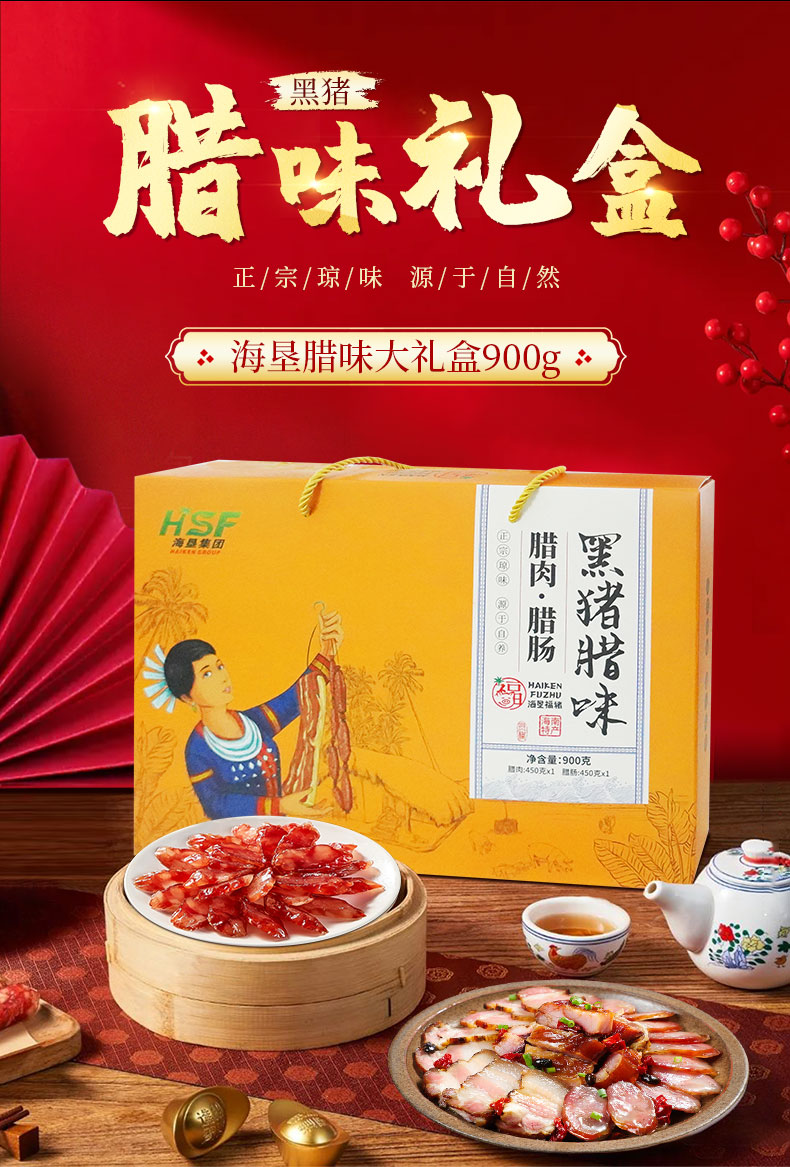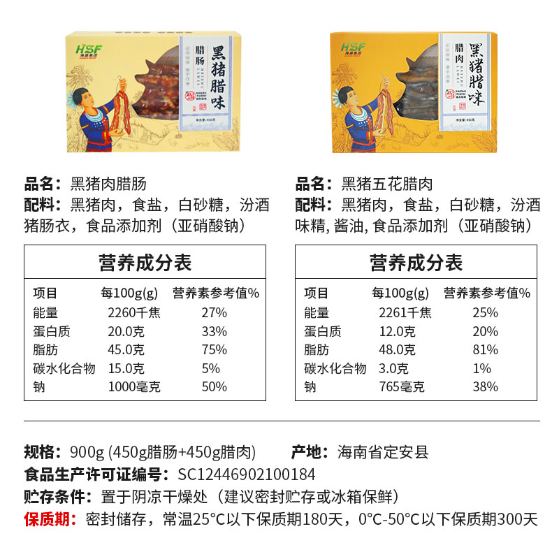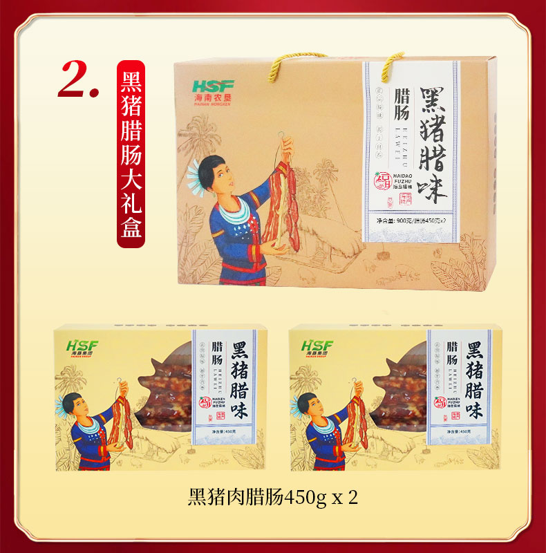 【中国农垦】海垦福猪 黑猪腊肠大礼盒 腊肠450gX2盒