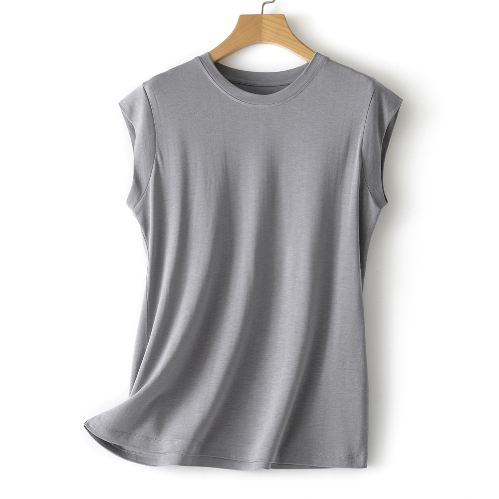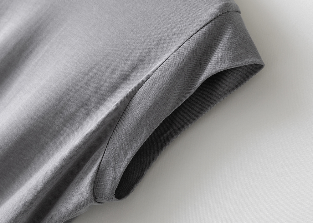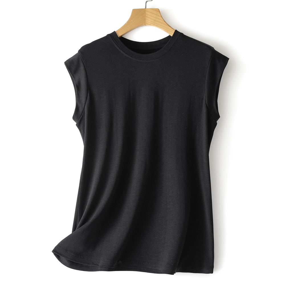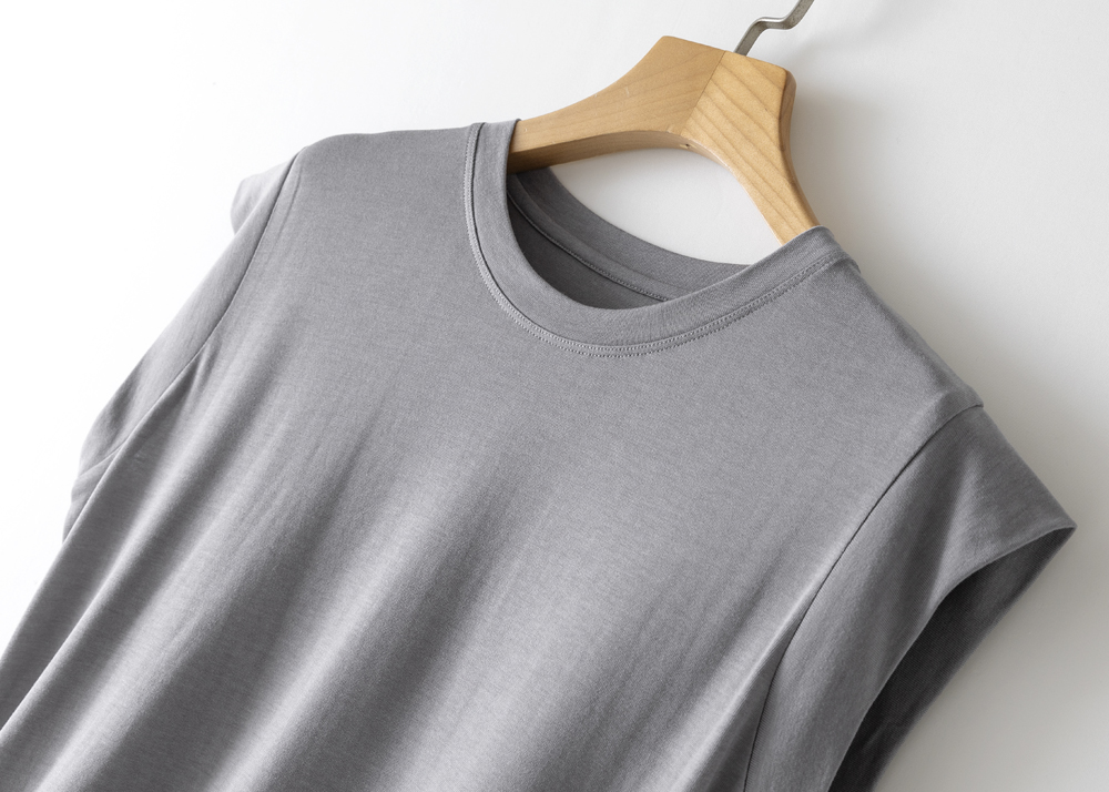无袖日系圆领T恤 桑蚕丝醋酸混纺45支定制面料,肌理感织法 适中厚度还原衣型。