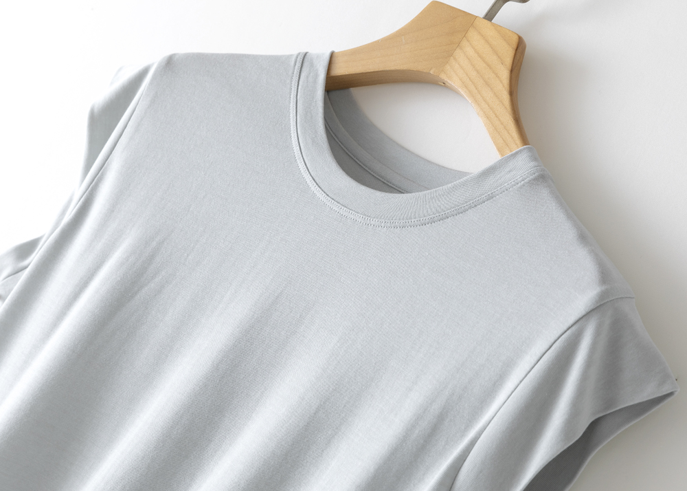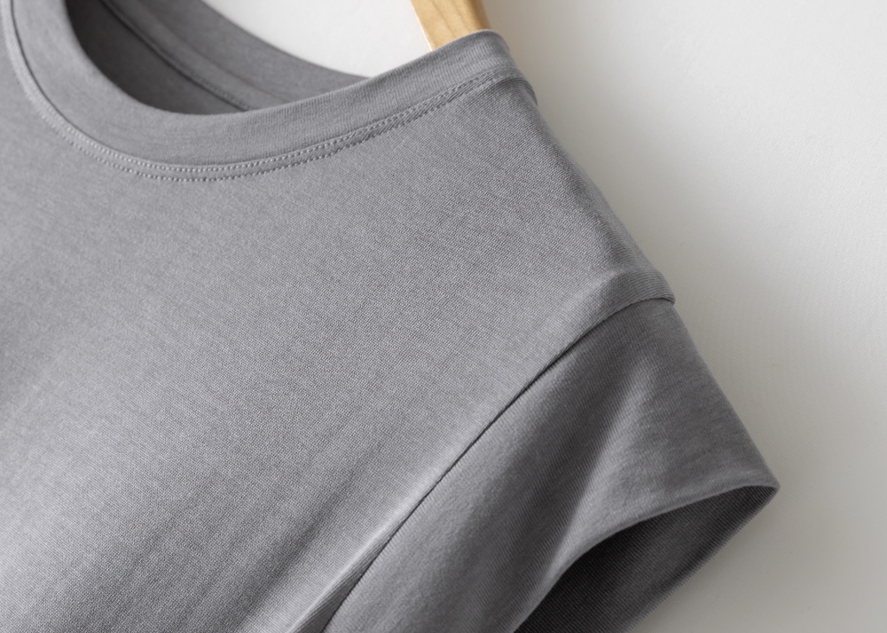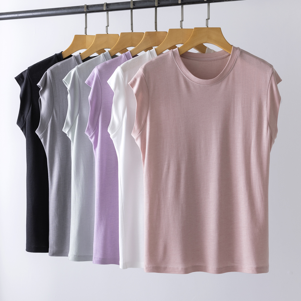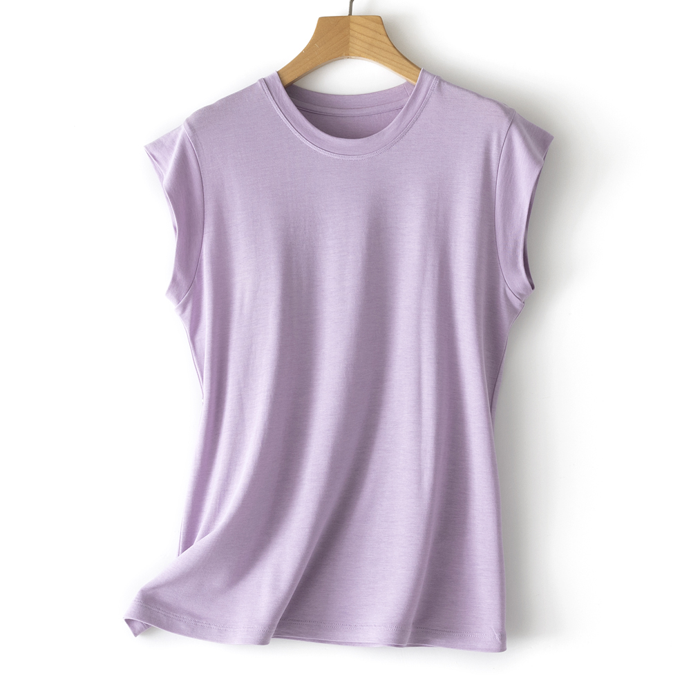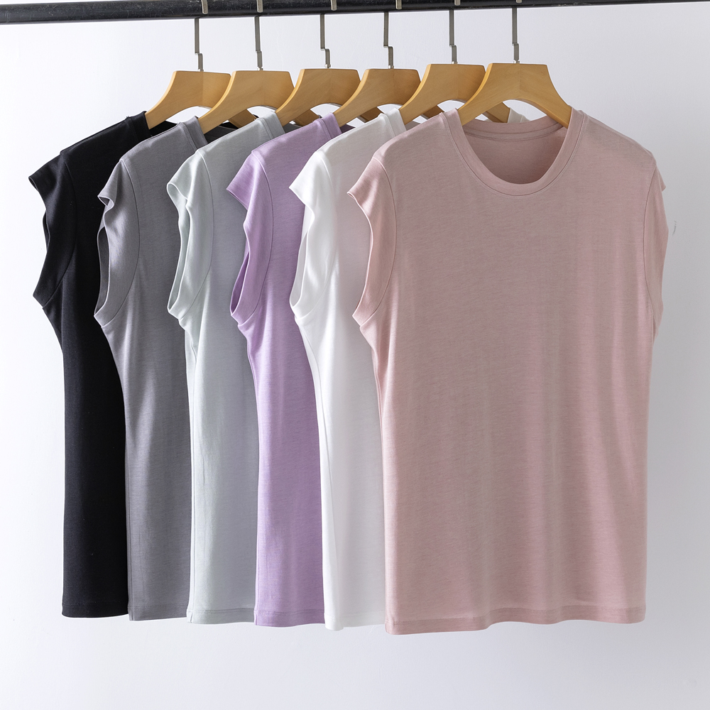 无袖日系圆领T恤 桑蚕丝醋酸混纺45支定制面料,肌理感织法 适中厚度还原衣型。