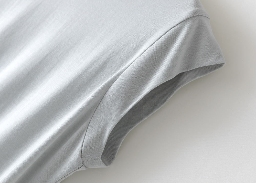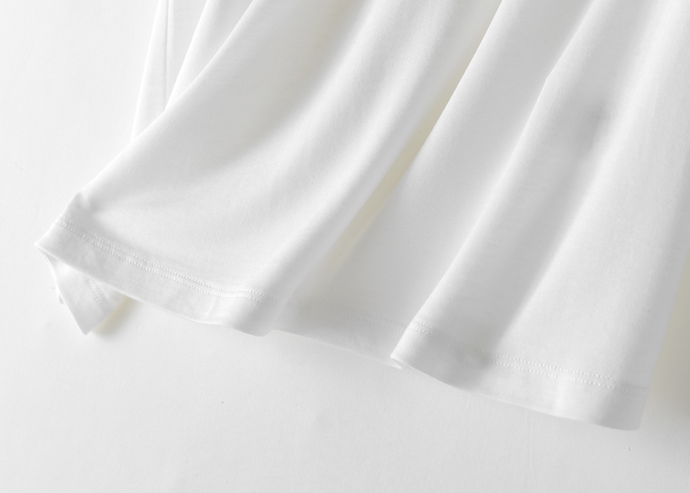小盖袖的直角设计可以很好修饰肩颈线条,适度修饰上臂部分线条。微微加宽的罗纹领口配合罗纹袖口 上身贴合度更高,同时提升不少时髦感。