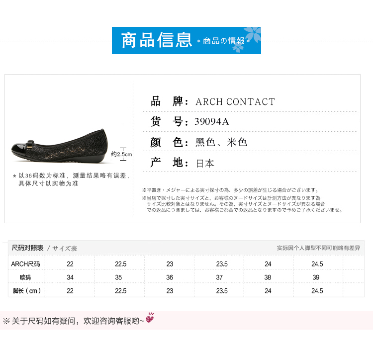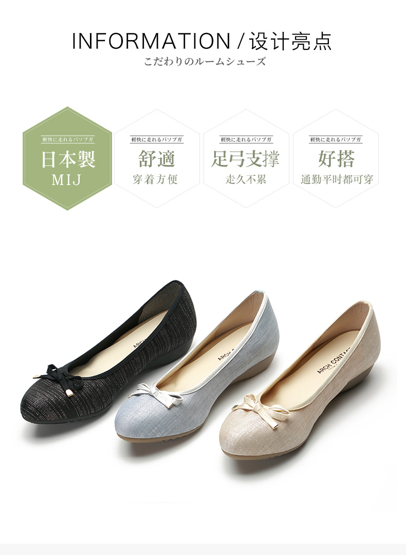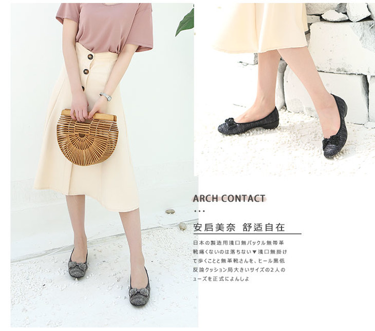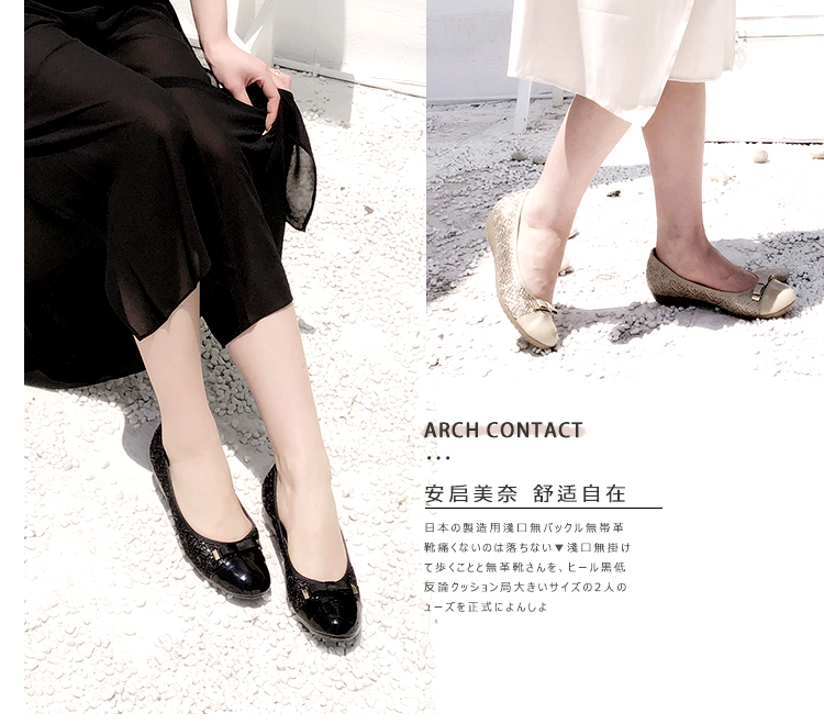 【活动价】日本ARCHCONTACT安启美奈圆头低跟蝴蝶结单鞋39091