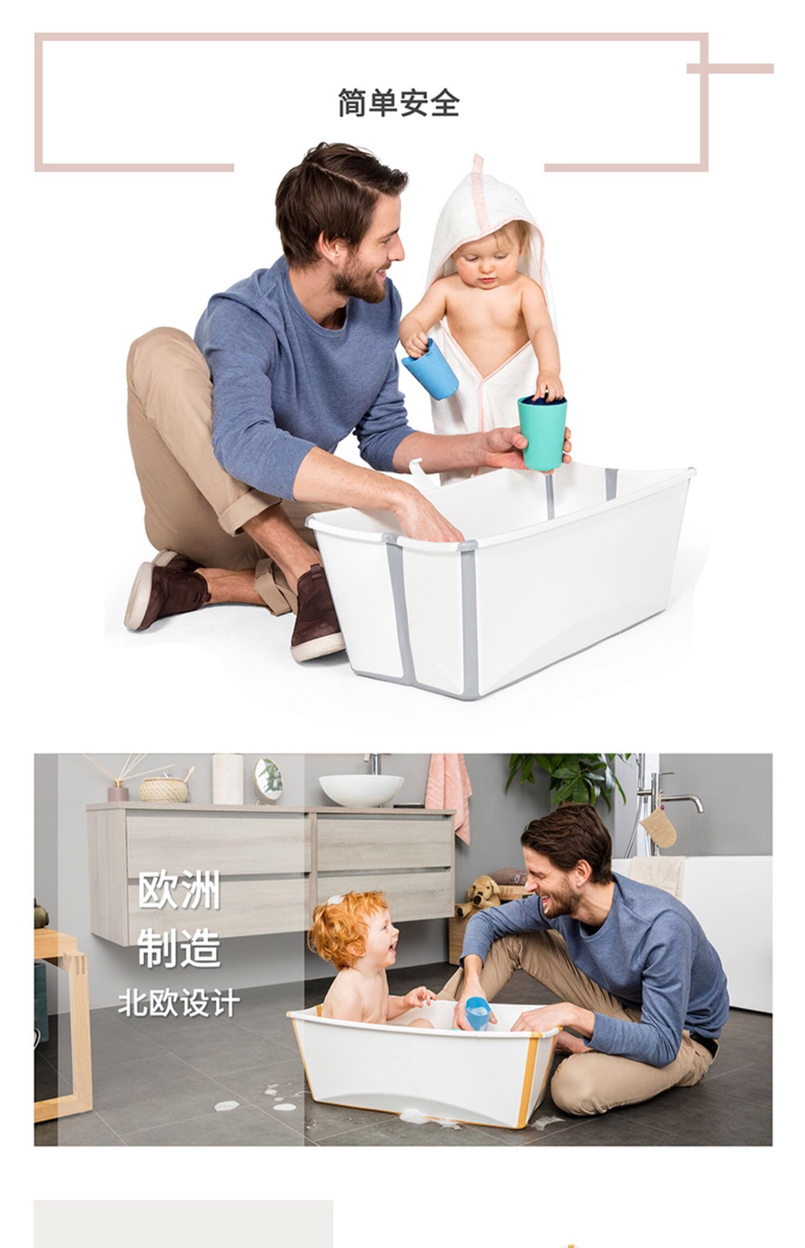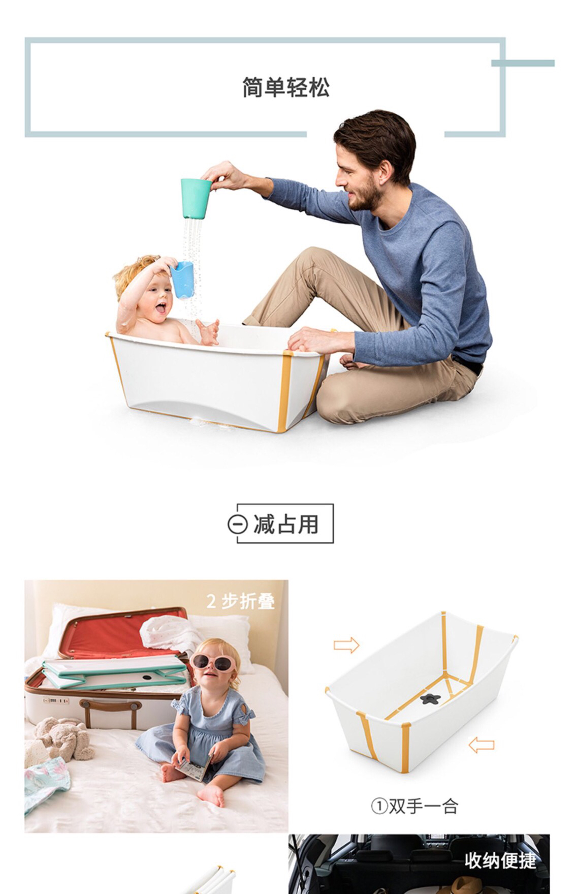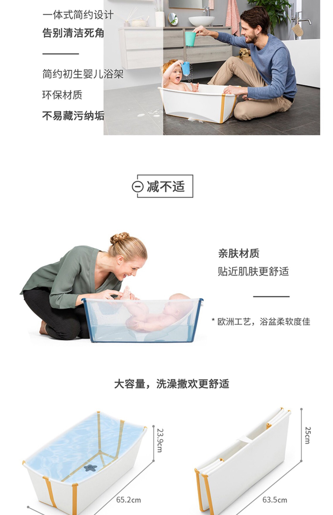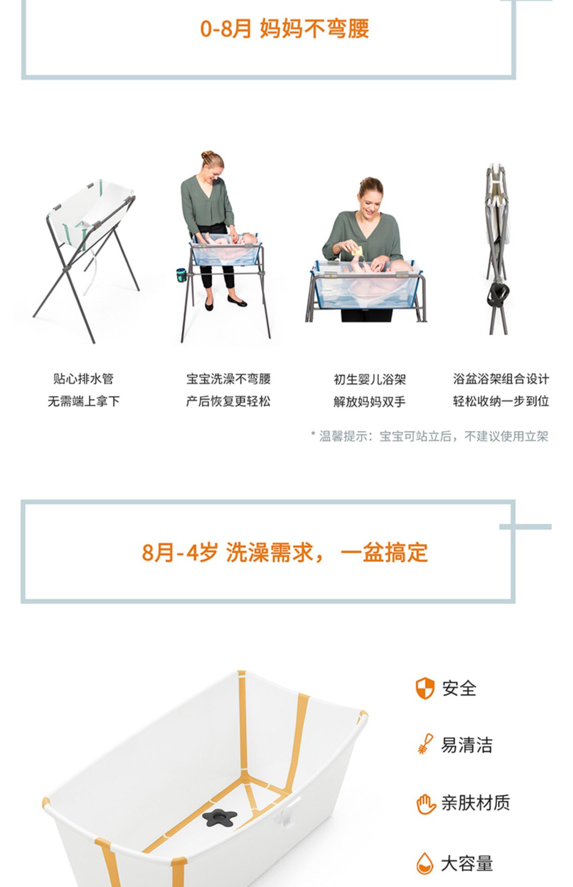挪威Stokke Flexi Bath 折叠式浴盆 + 初生婴儿浴架+浴盆立架