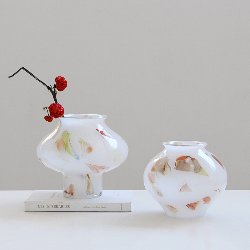 中古玻璃法式高级感花瓶摆件创意水养客厅电视柜玄关插花装饰品