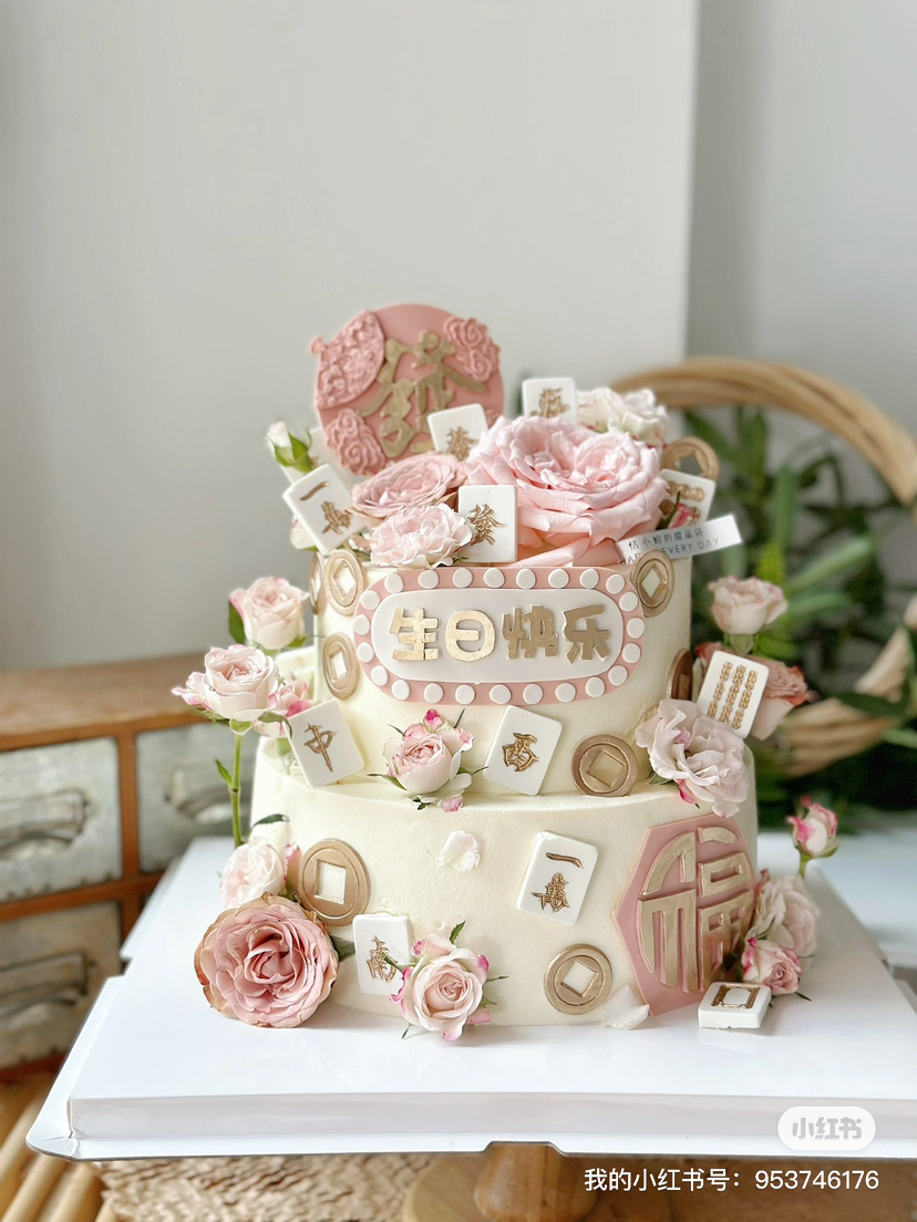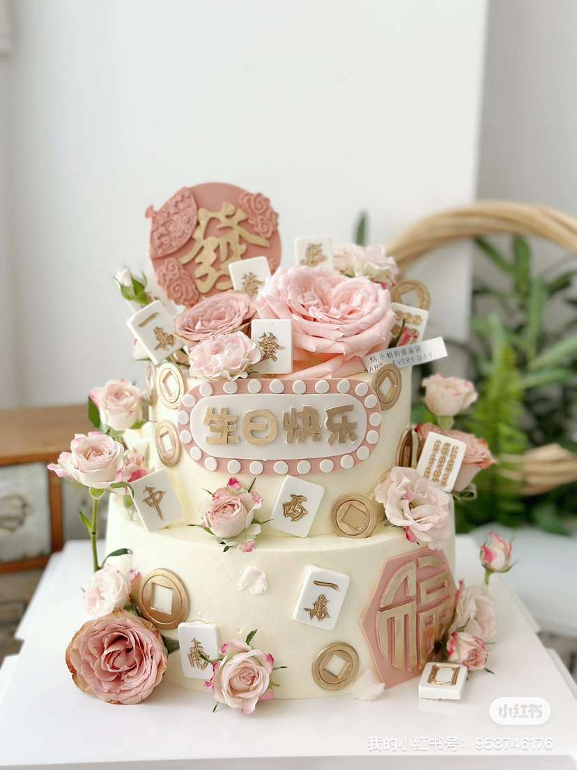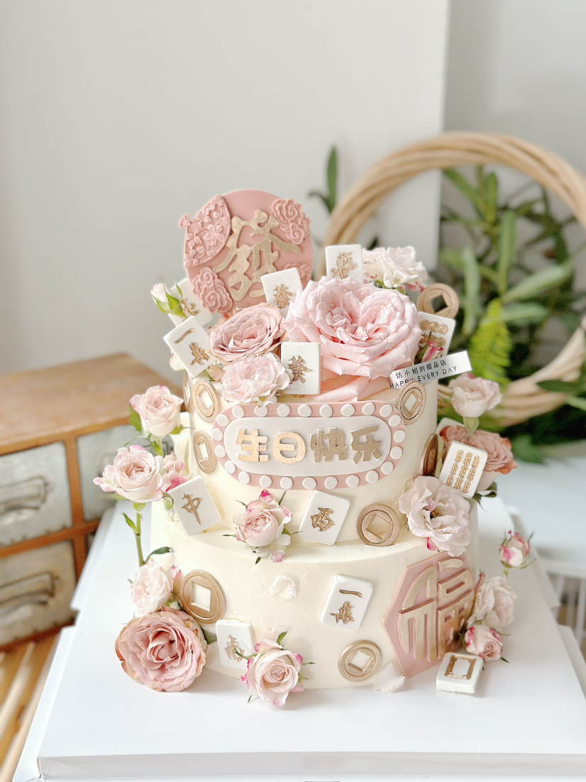 送女神的鲜花翻糖蛋糕,粉嫩麻将主题,请提前三天预定,送妈妈,送女神