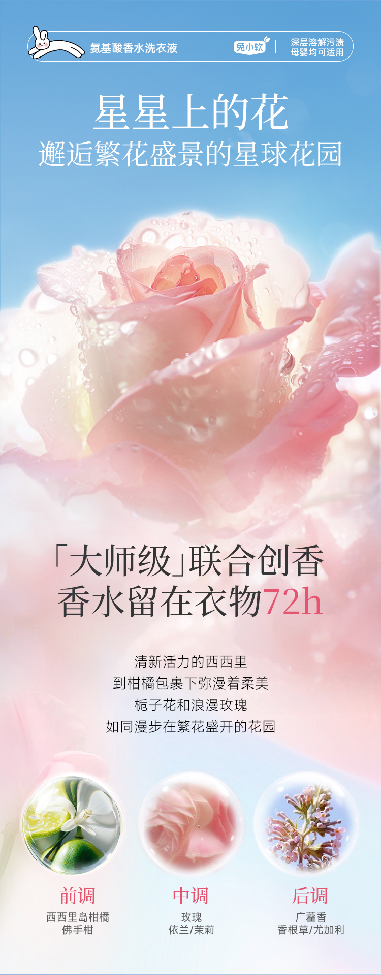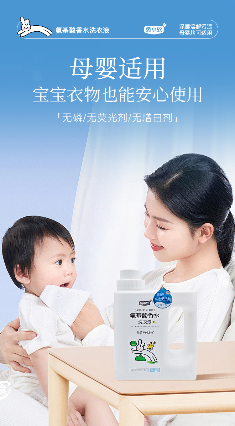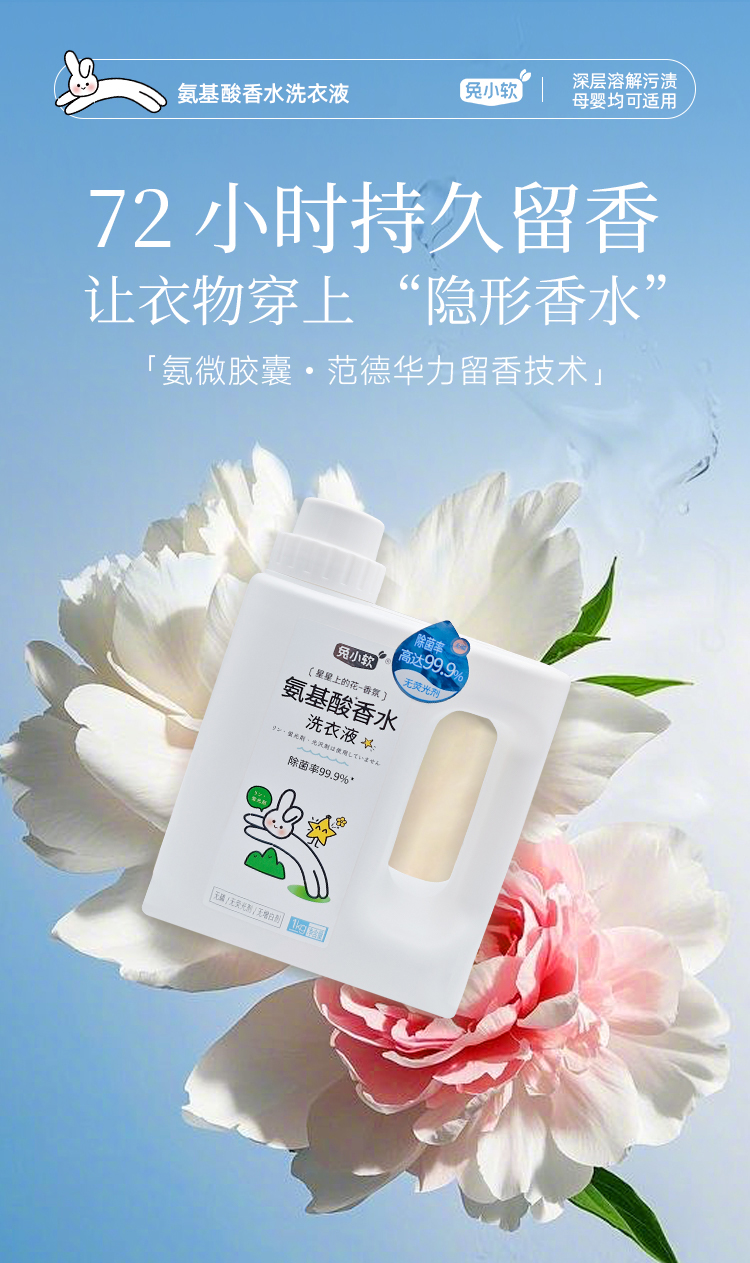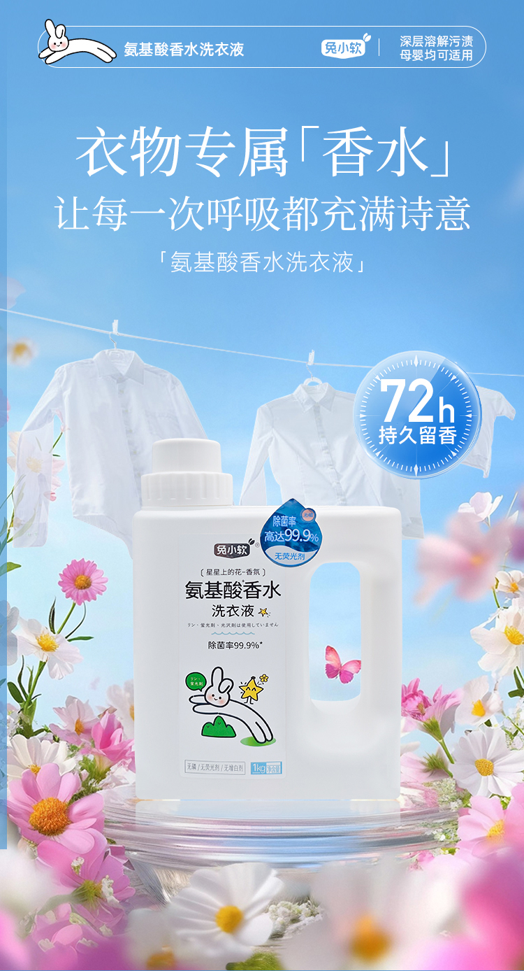 兔小软 氨基酸香水洗衣液 1kg/瓶