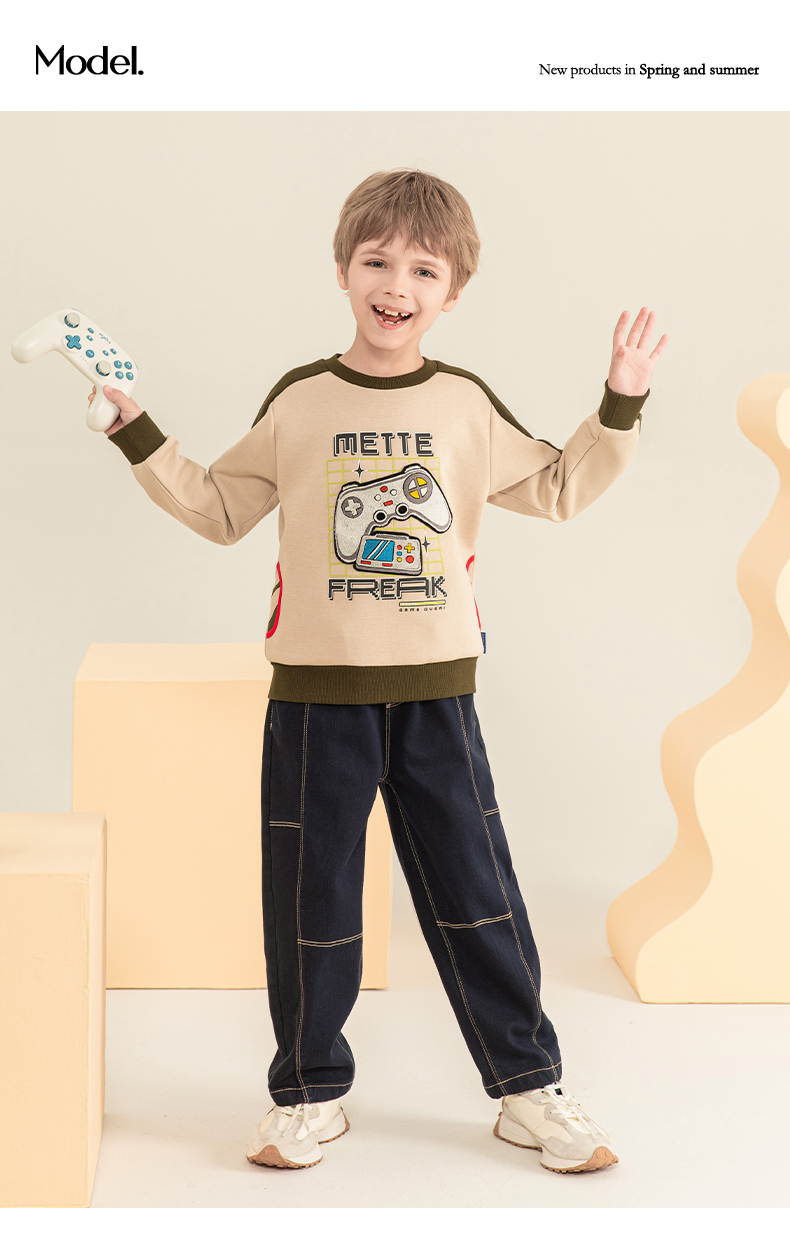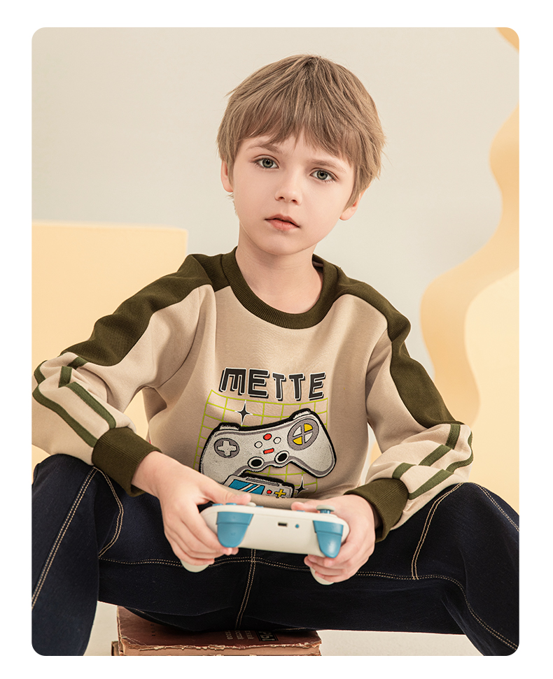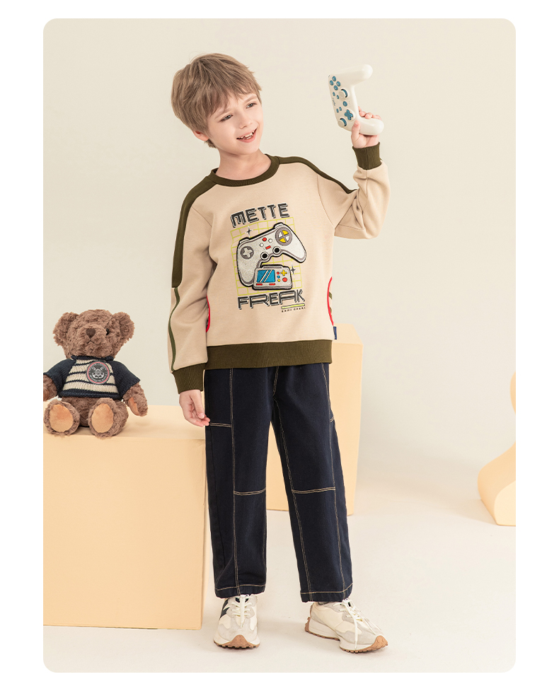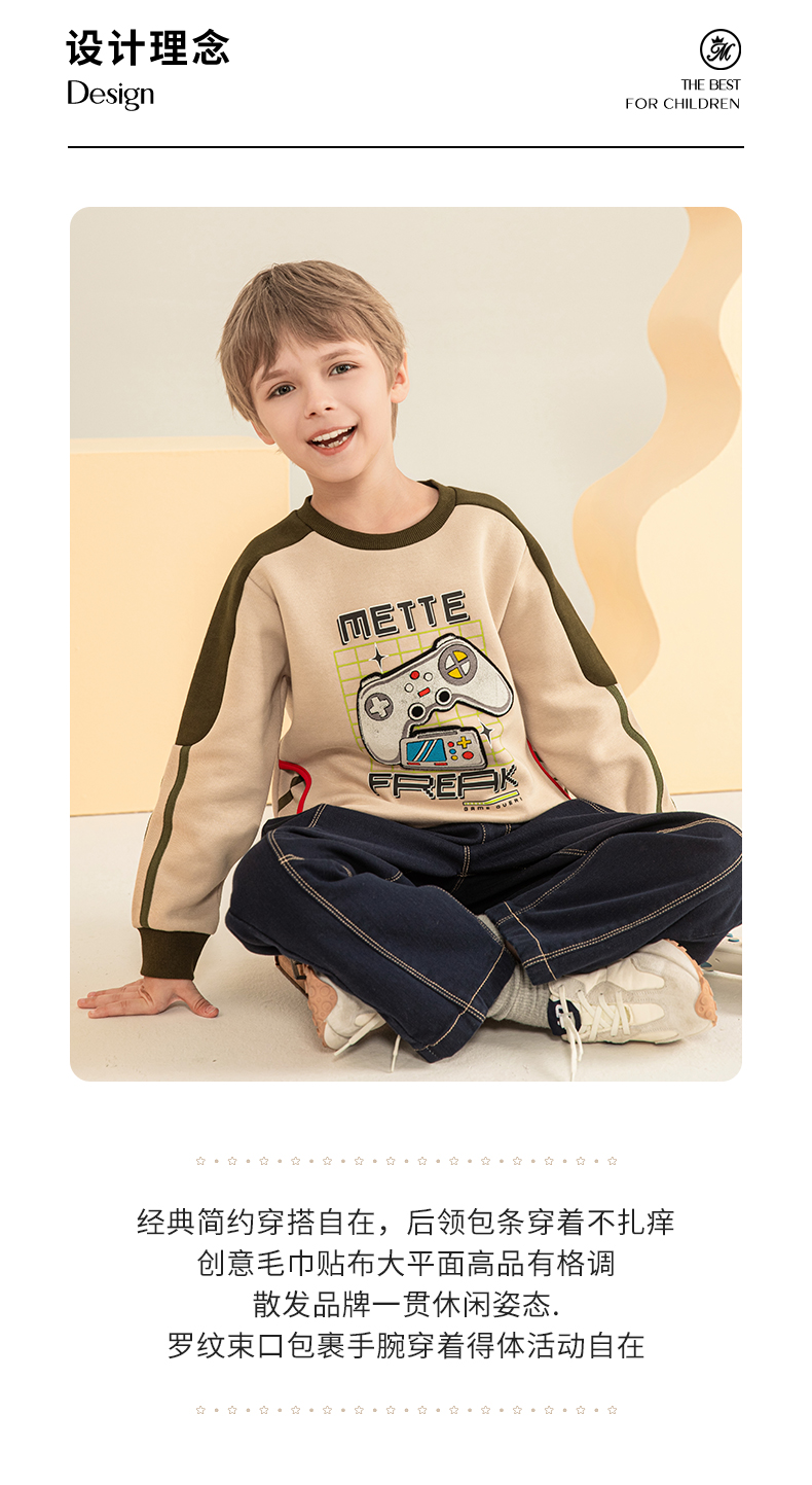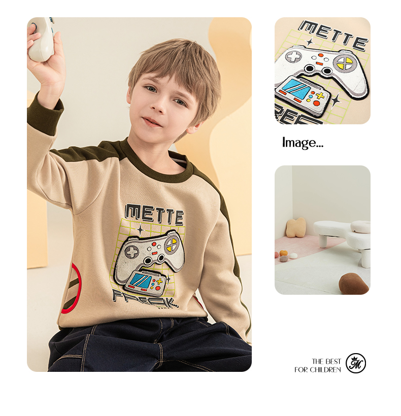 mettekids男童卫衣2023秋季新款儿童休闲中大童卡通圆领宽松上衣