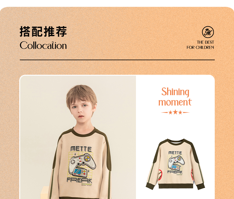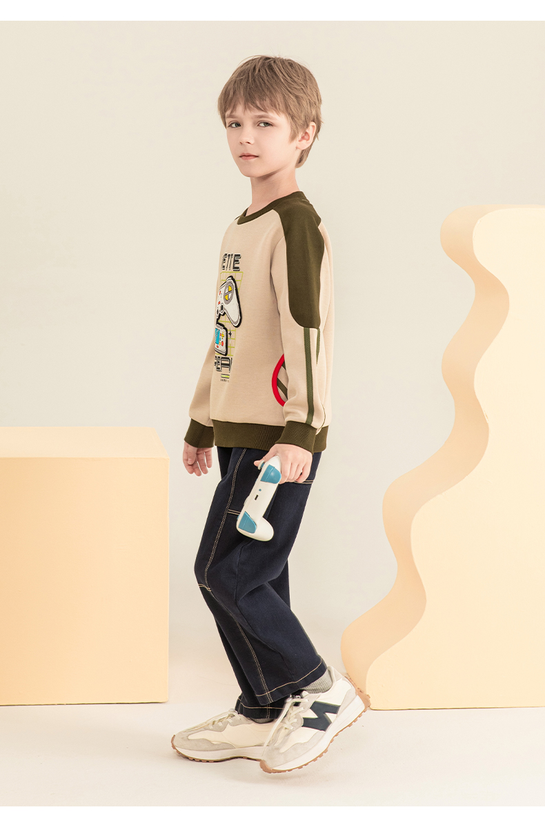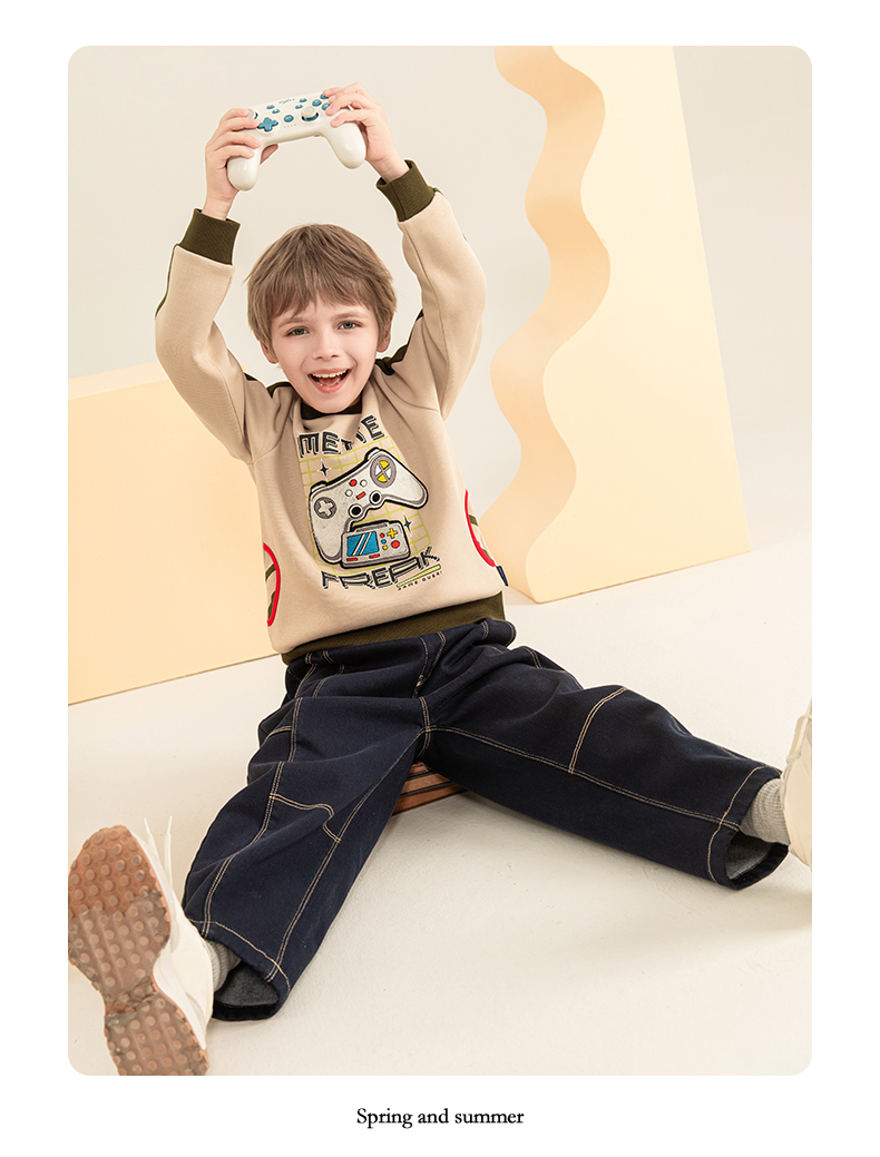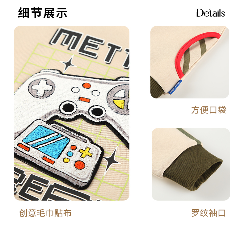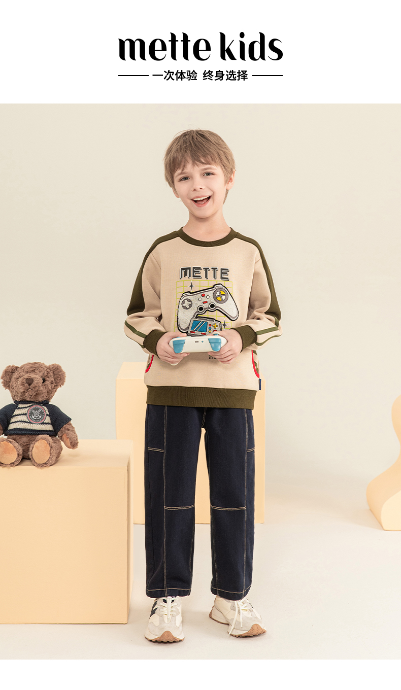 mettekids男童卫衣2023秋季新款儿童休闲中大童卡通圆领宽松上衣