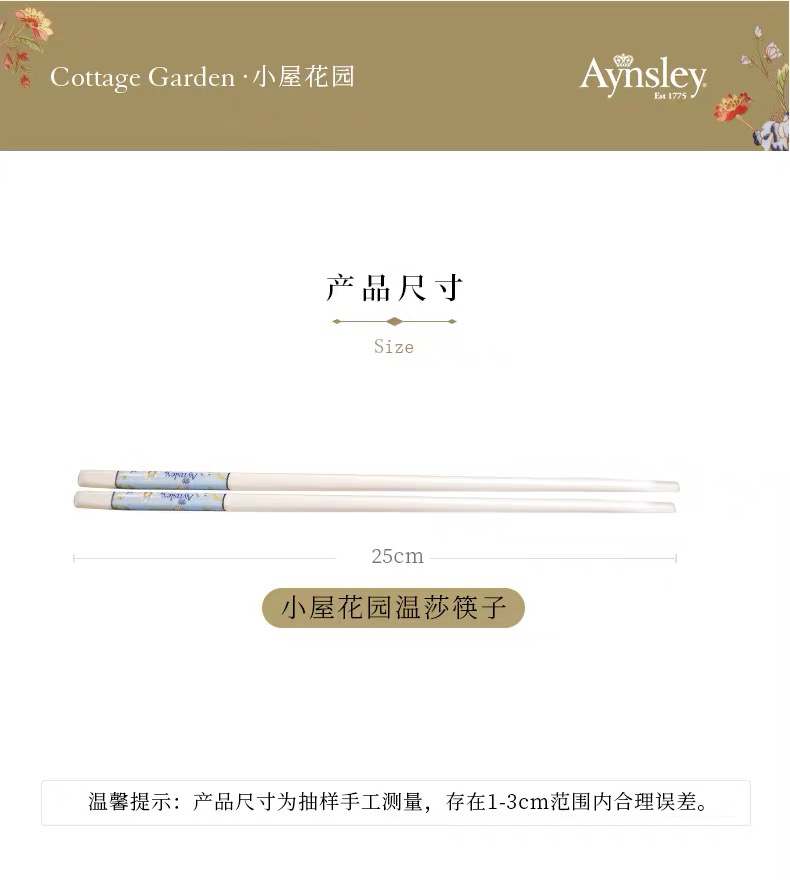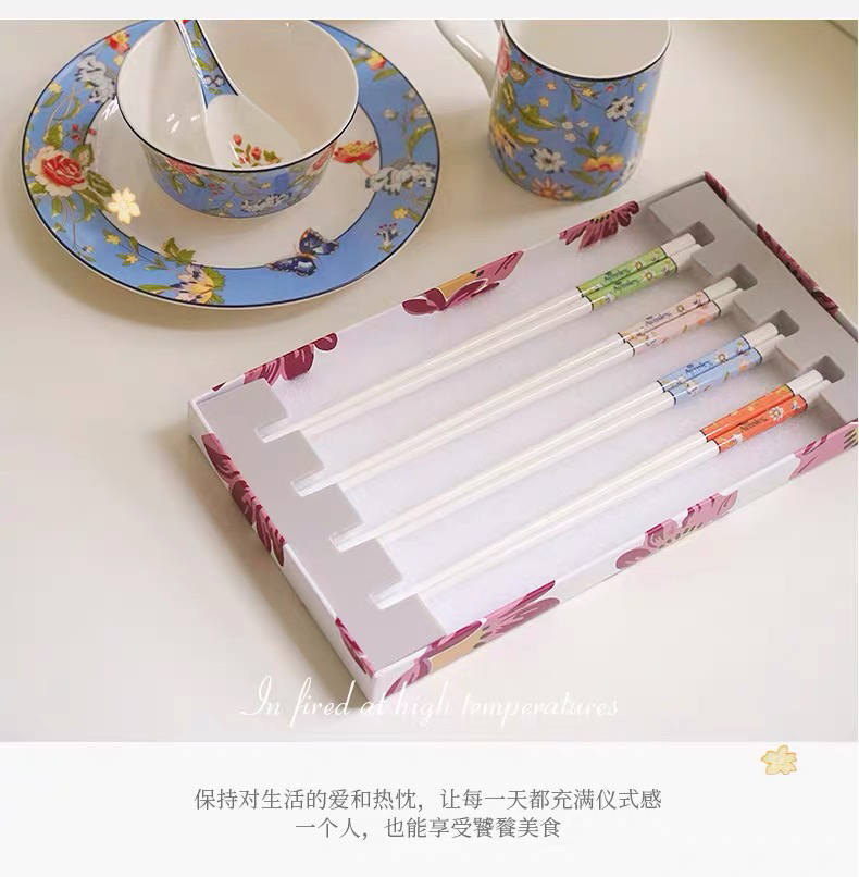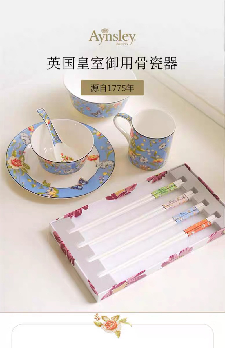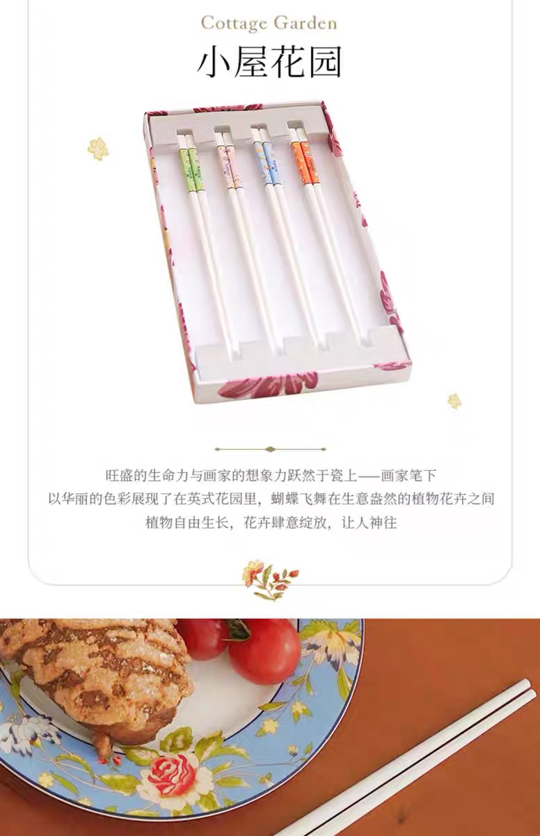 英国Aynsley安斯丽小屋花园系列高档骨瓷筷子套装四双装家用送礼