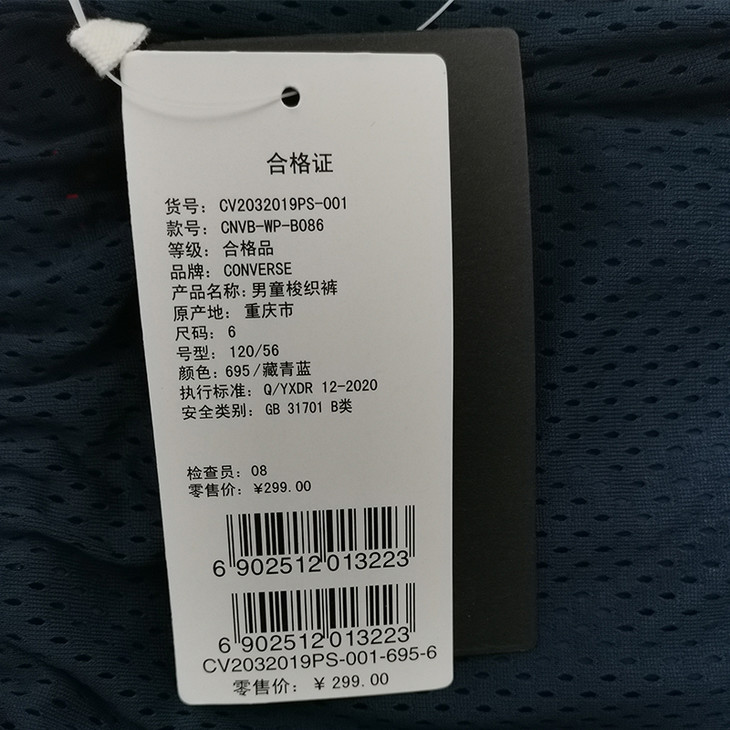 Converse匡威商场同款童衣童装 秋男童网眼布内衬双层梭织长裤CV2032019
