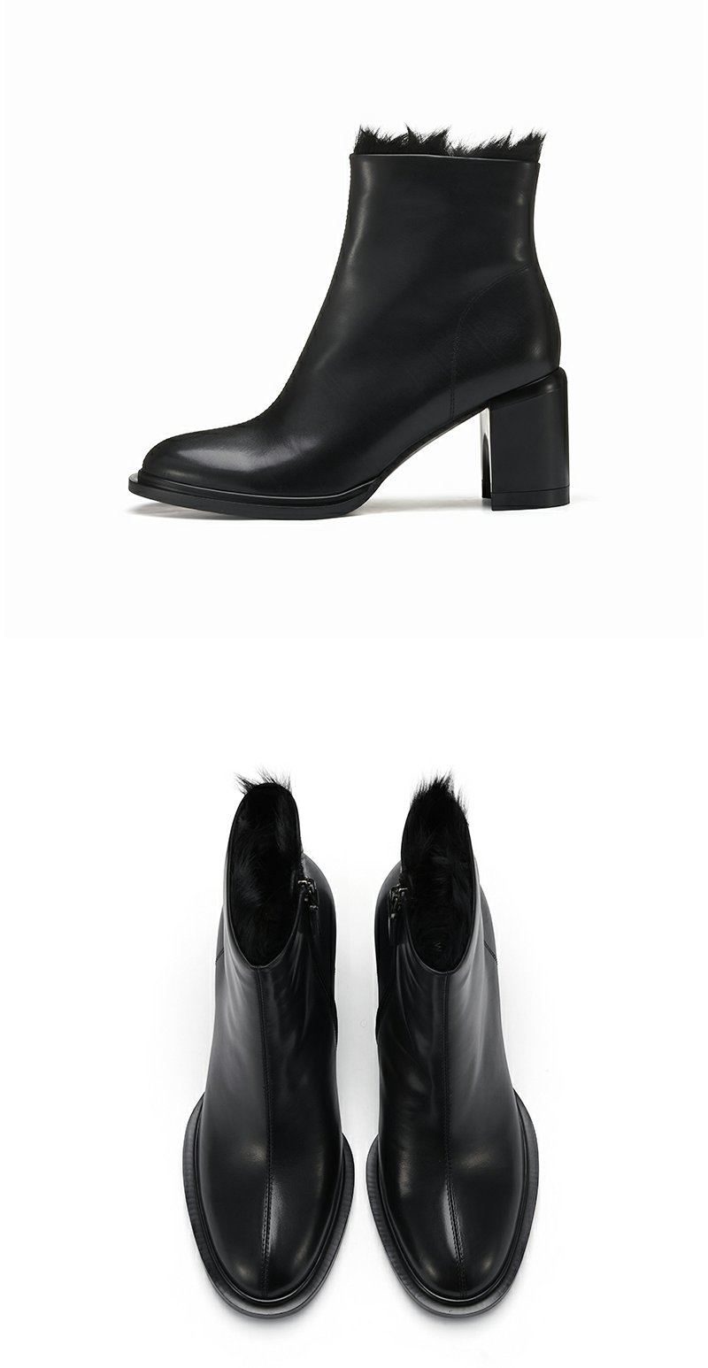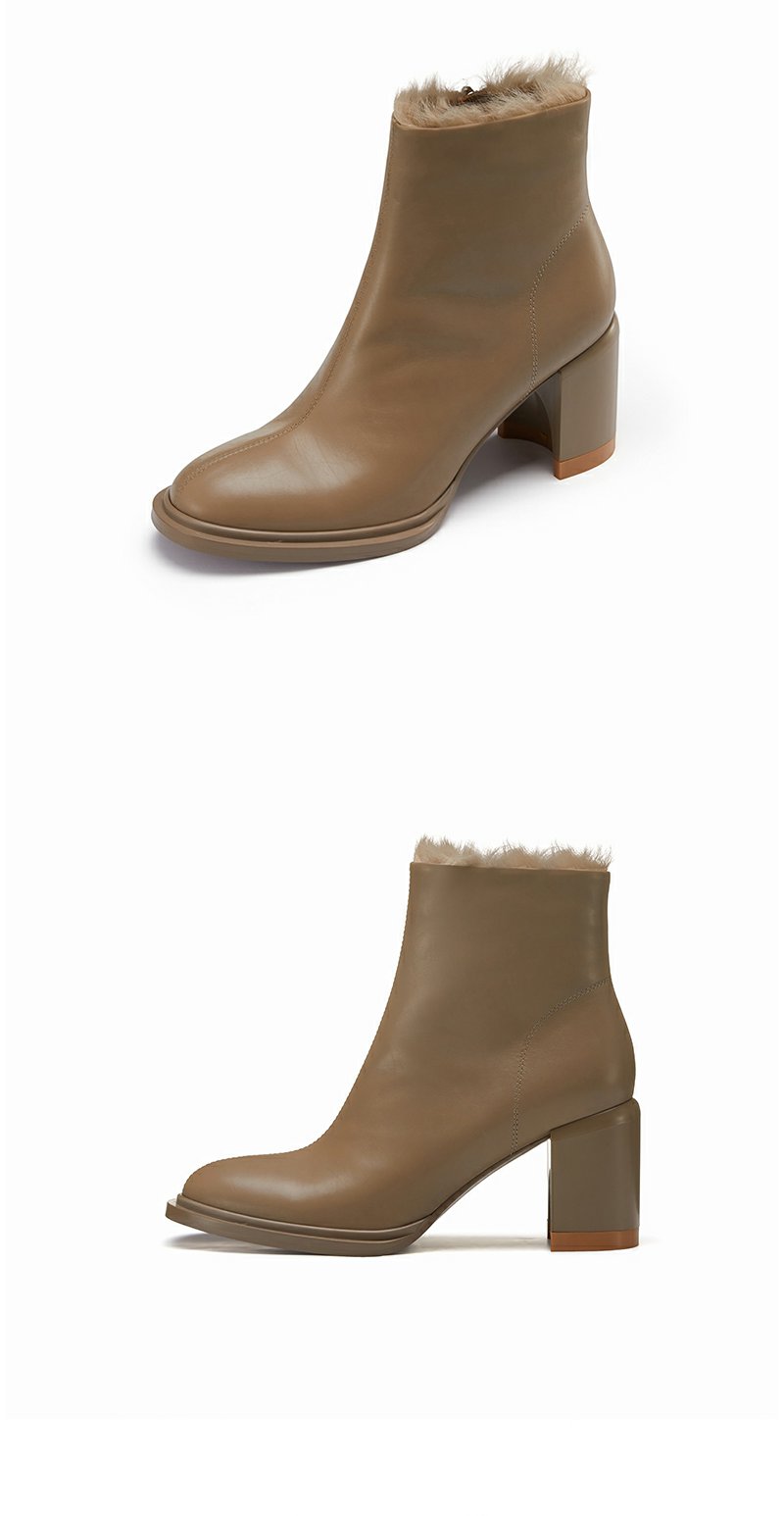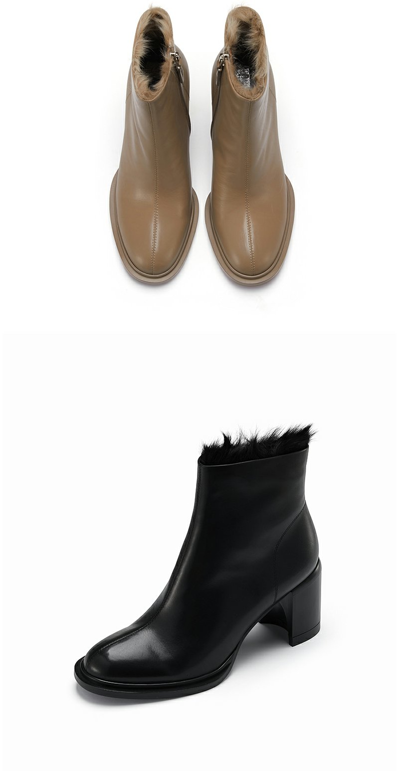 westory冬季加绒保暖靴子粗高跟短筒质感百搭时装靴女82501