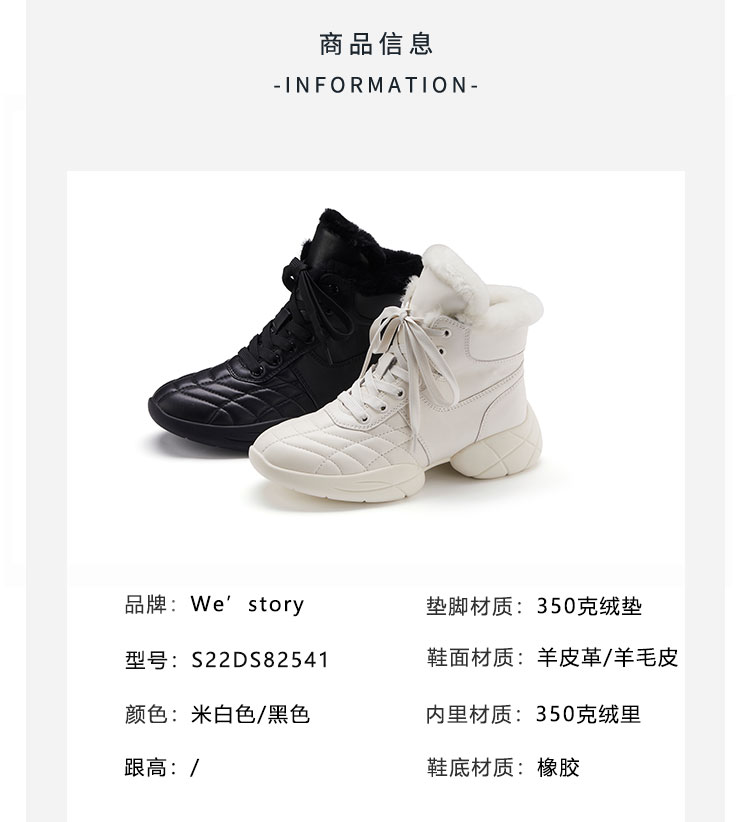 westory2022年秋冬新款高帮运动休闲鞋加绒保暖增高舒适百搭老爹鞋女82541