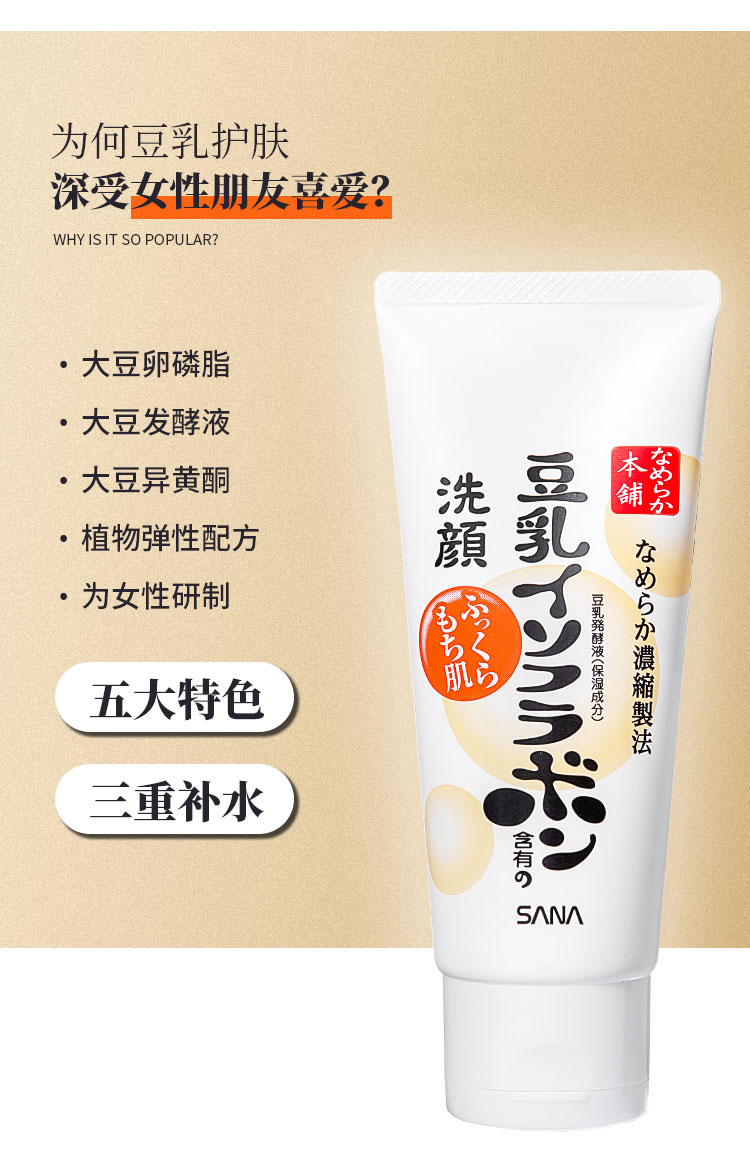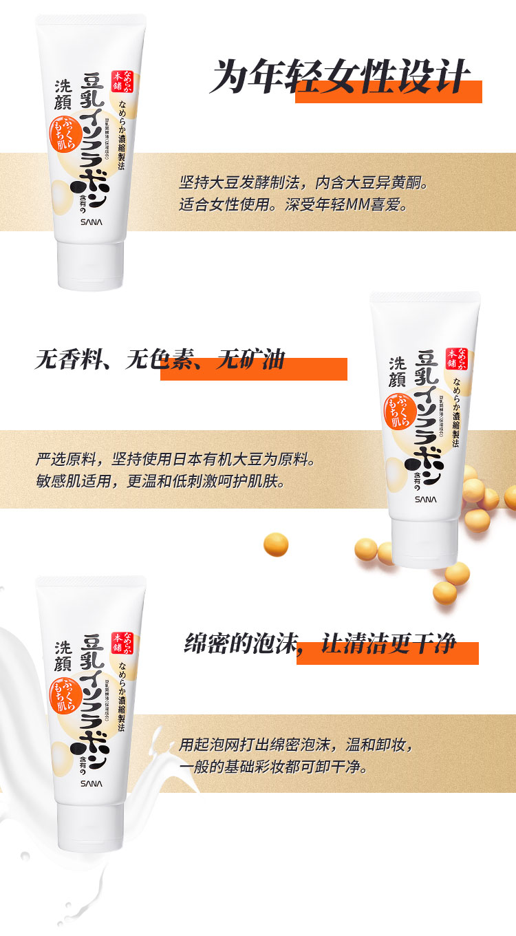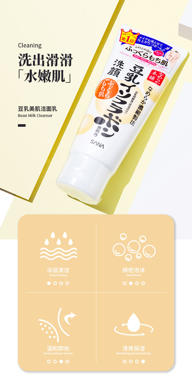 日本SANA莎娜豆乳美肤洗面奶 深层清洁保湿敏感肌可用150g豆乳洗面奶卸妆洁面乳150ML女补水保湿孕妇可用