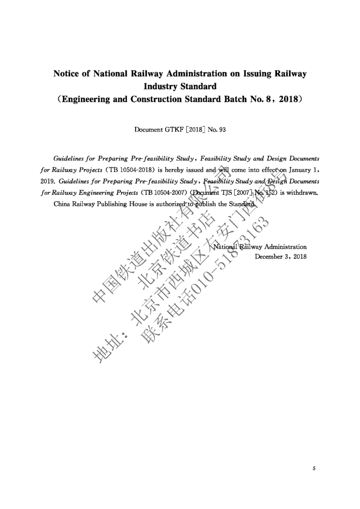 978-7-113-26885-5_铁路建设项目预可行性研究、可行性研究和设计文件编制办法(TB 10504-2018)英文版
