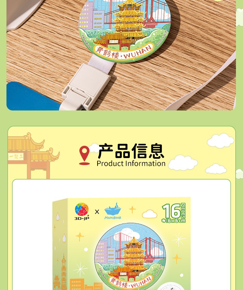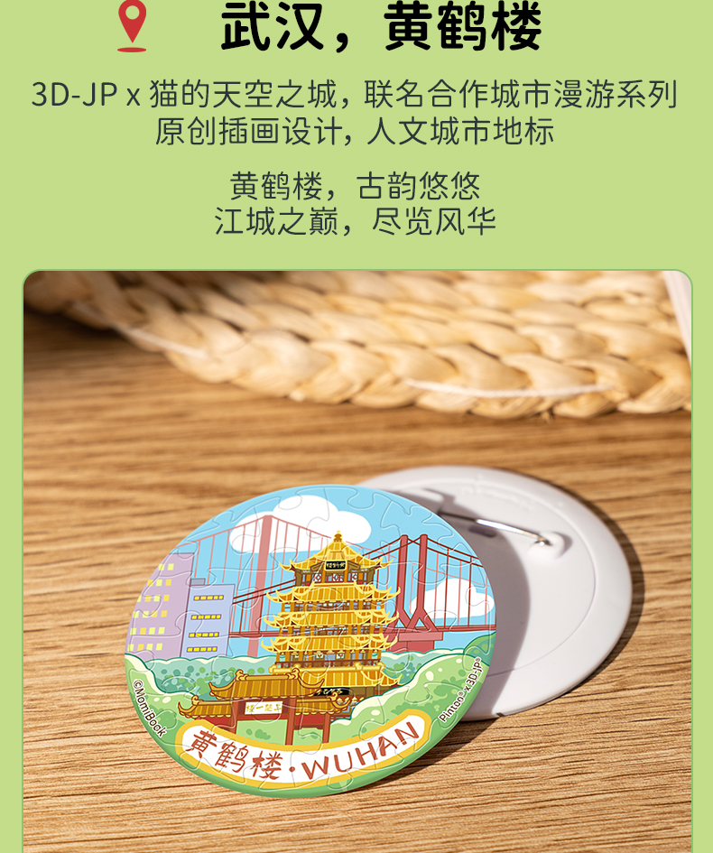 16片 徽章拼图 BD1202 武汉,黄鹤楼