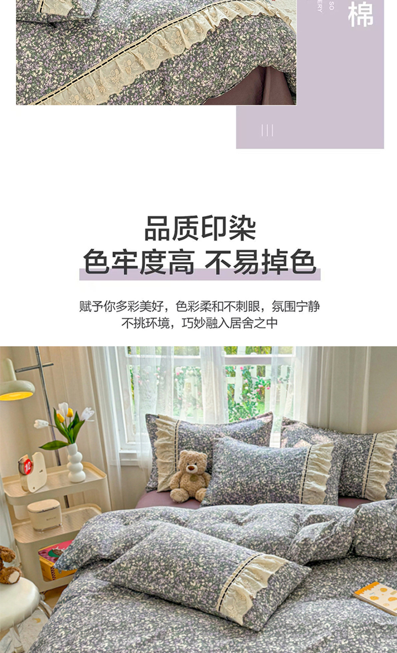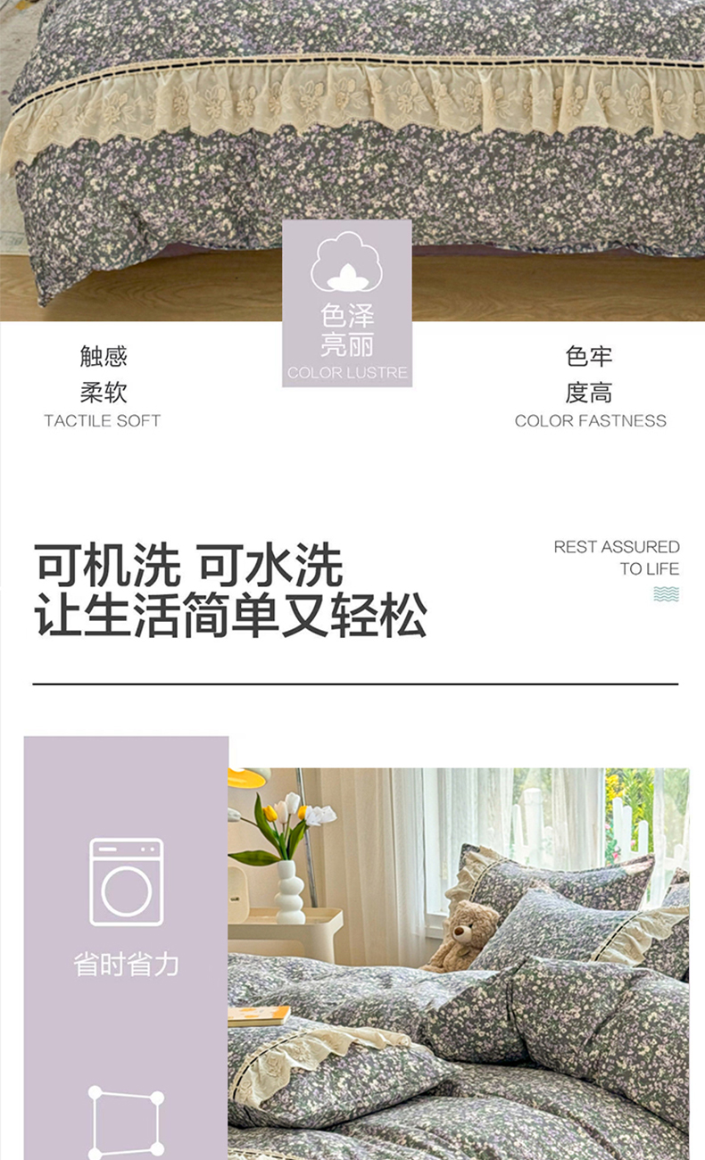 水洗棉四件套色织全棉100纯棉枕套床单被套春秋冬三件套床上用品