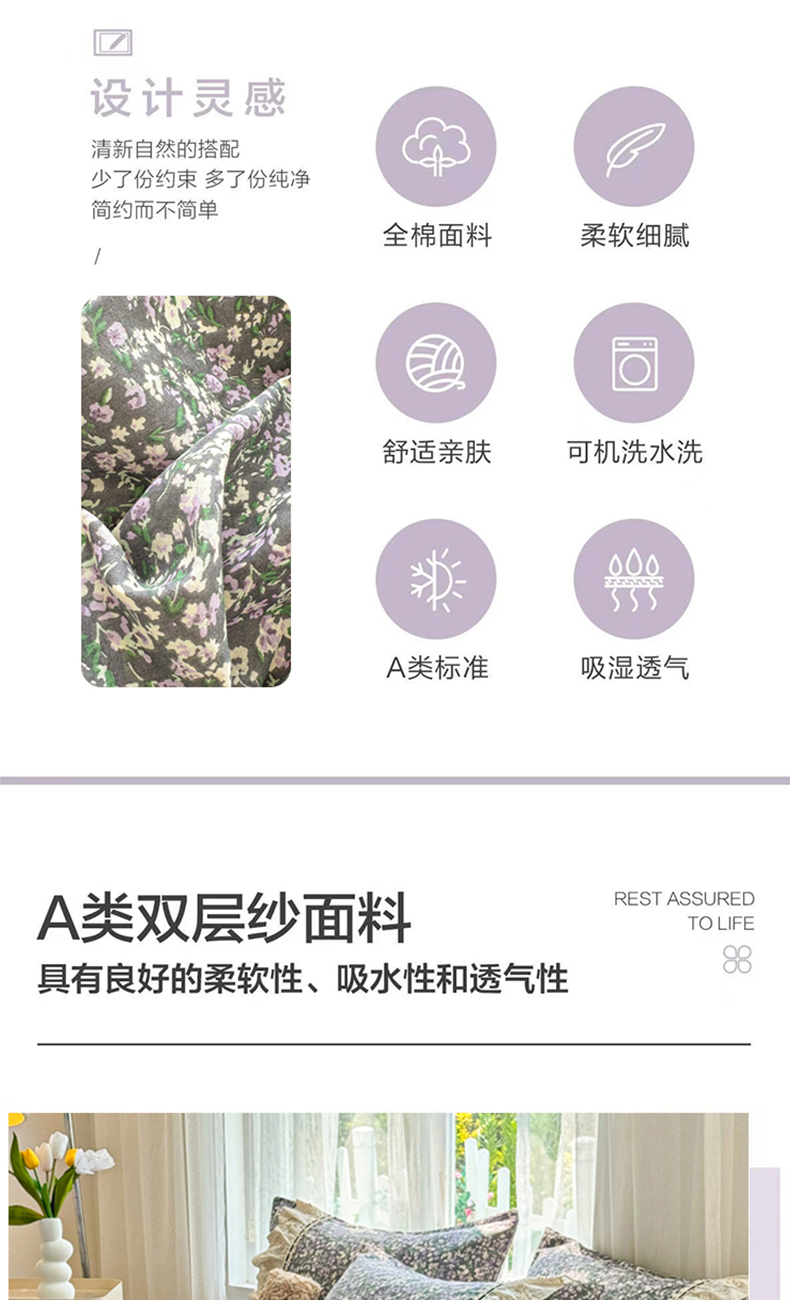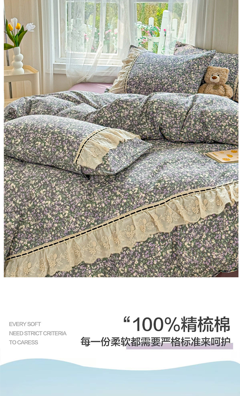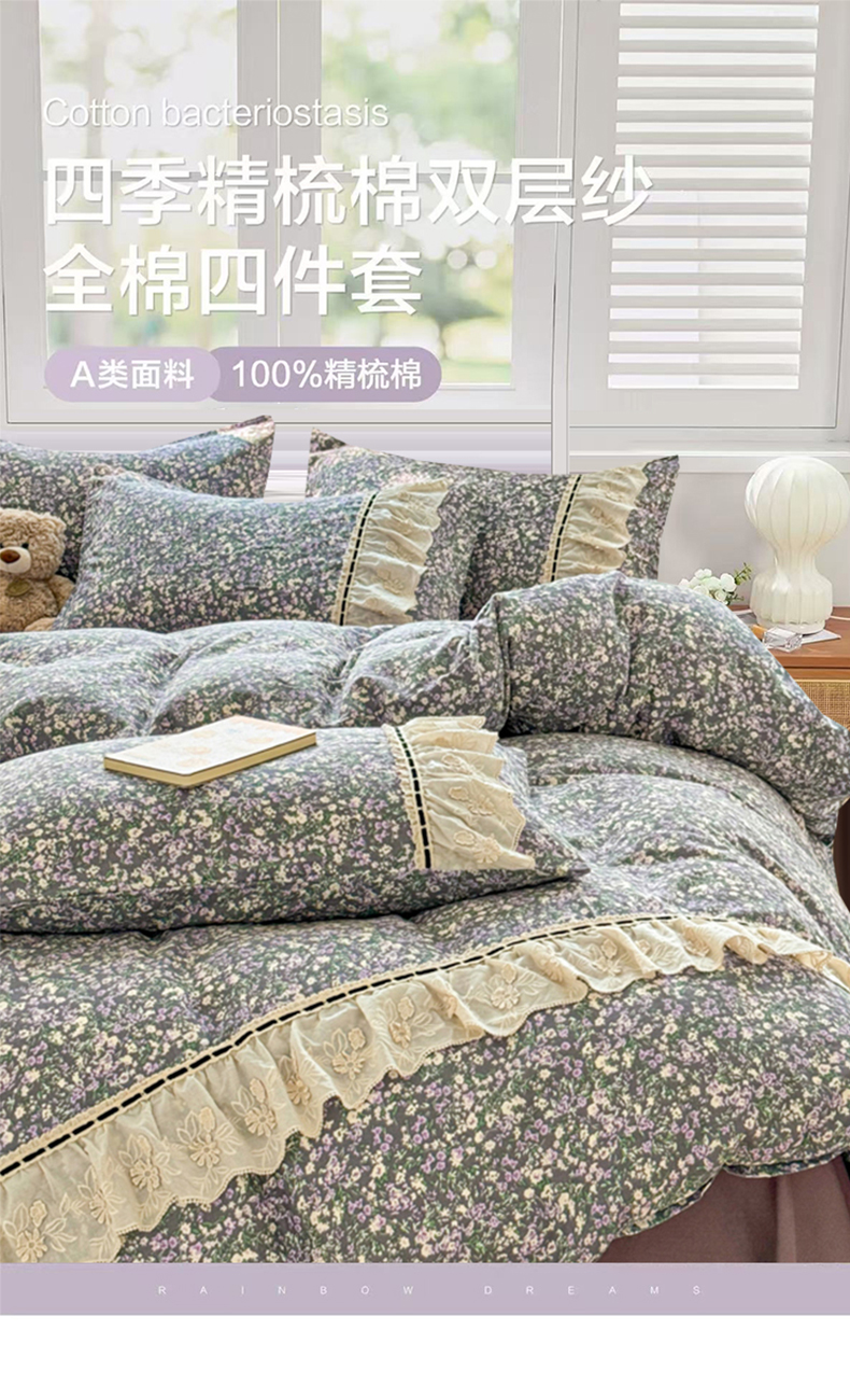 A类母婴级双层纱布全棉四件套家用纯棉被套床单款高级感床上用品