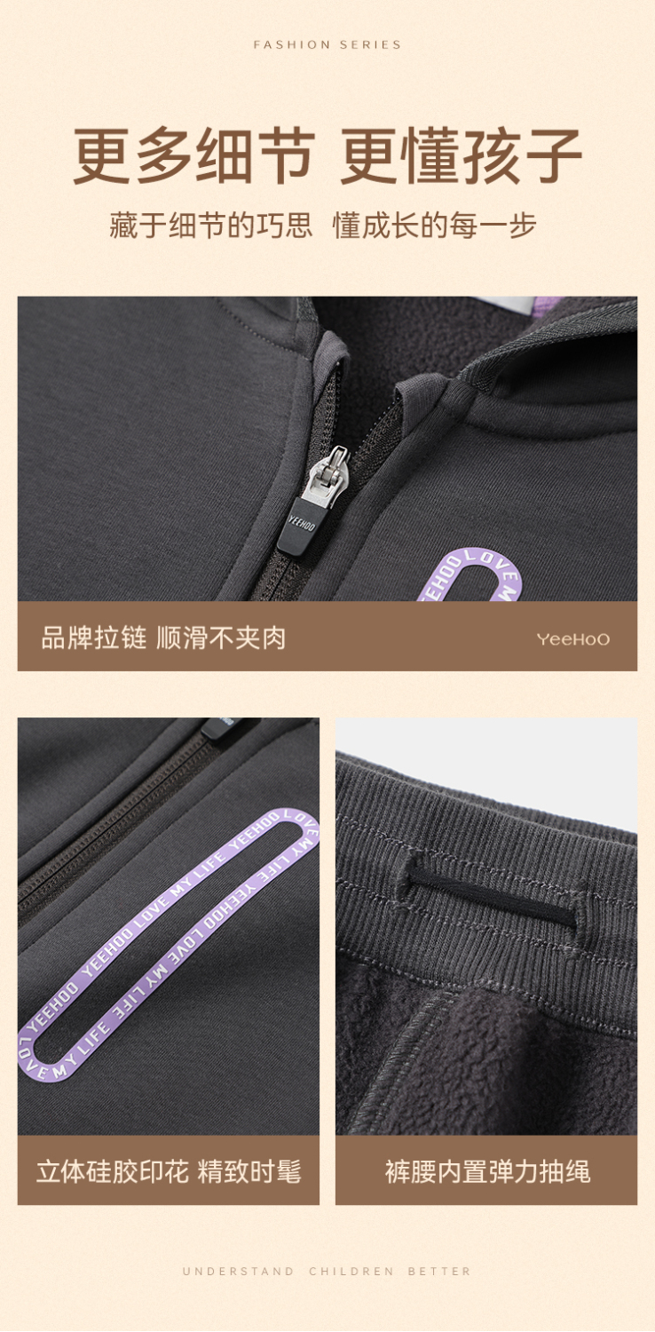 【加绒两件套】【英氏】【110-160】男童冬款加绒外套裤子套装