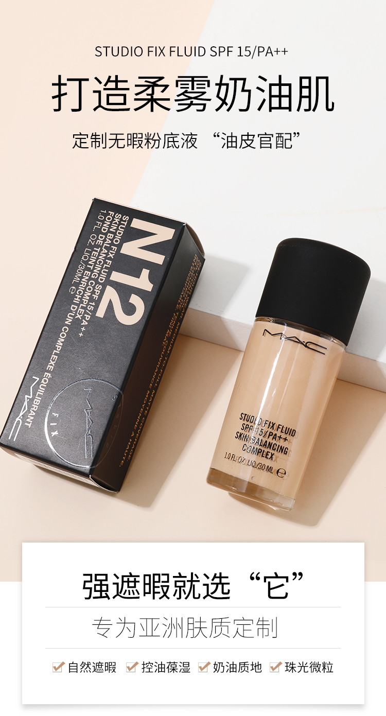 MAC魅可 定制无暇粉底液30ML 持久遮瑕NC12 N12