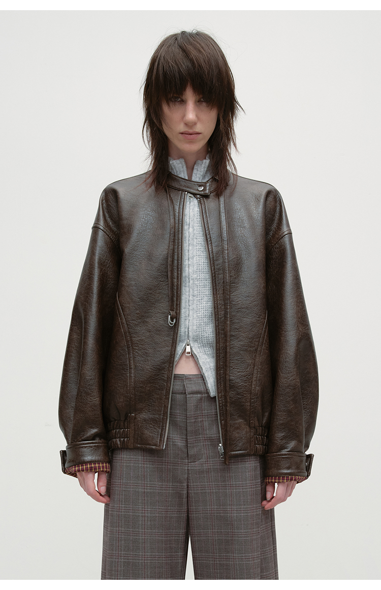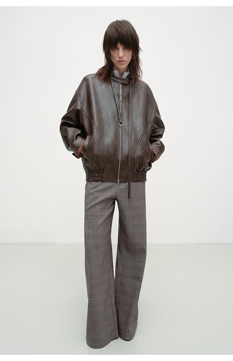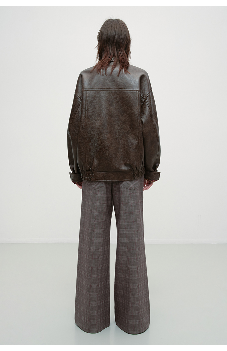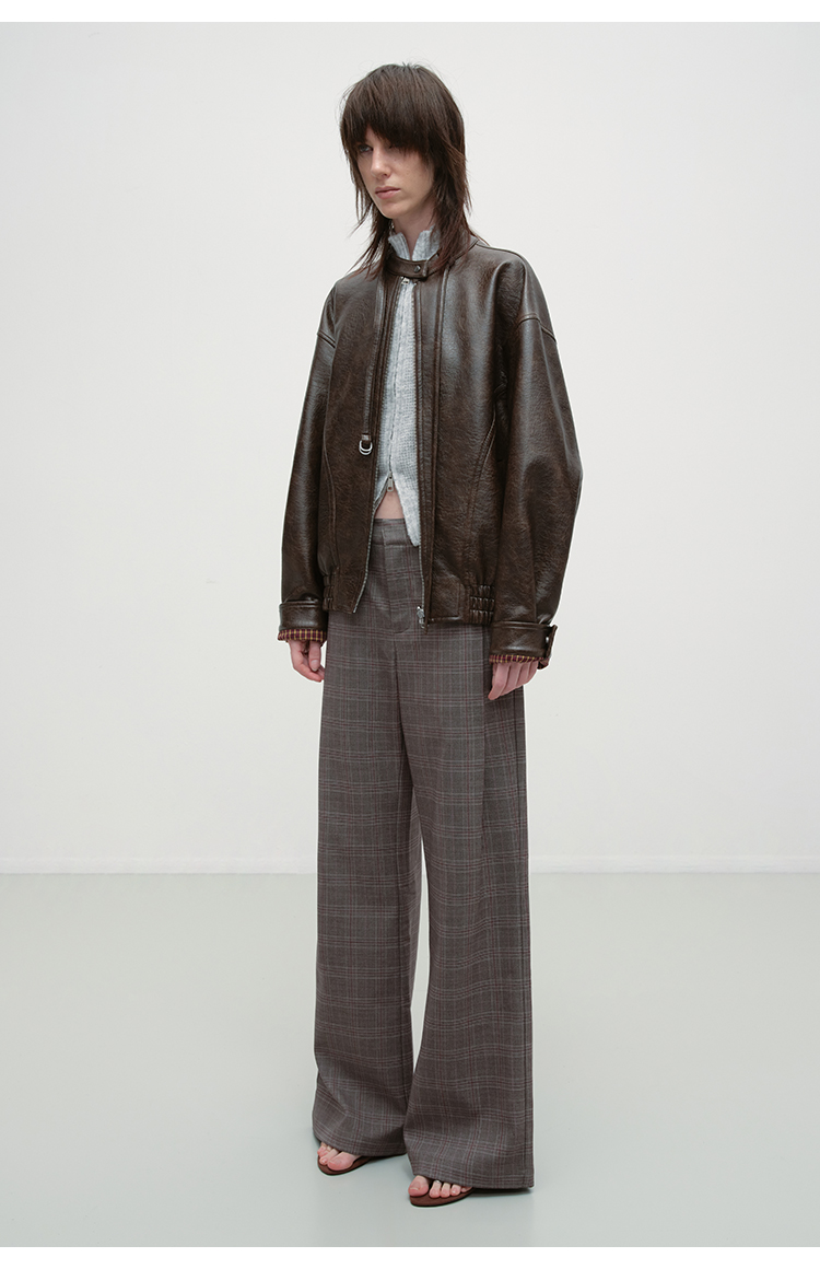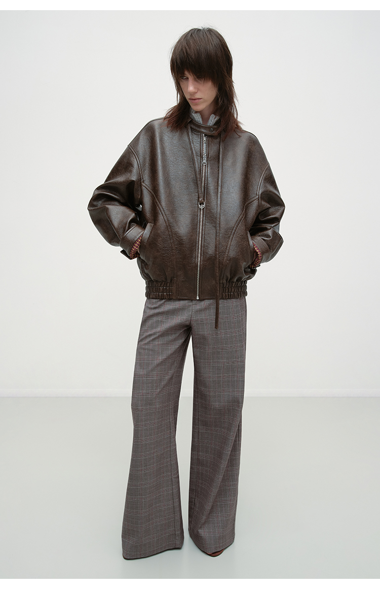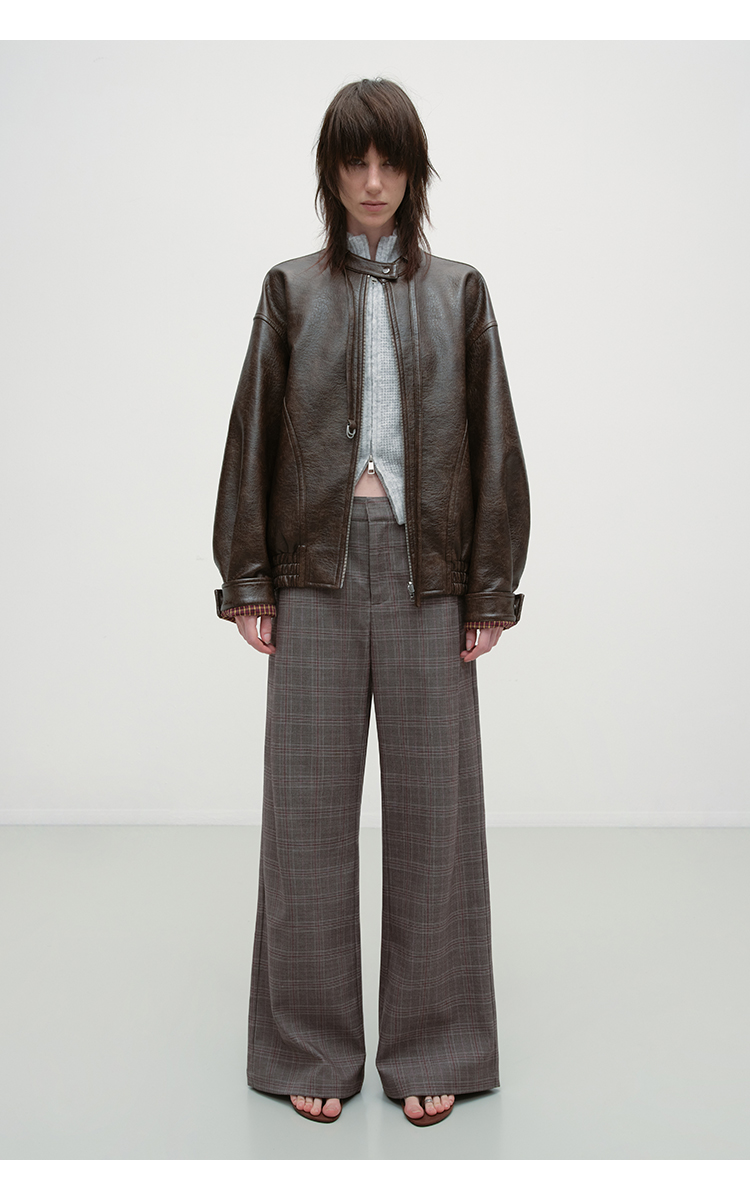 出逃赤岗西/25AWW137/双面穿格纹廓形皮衣