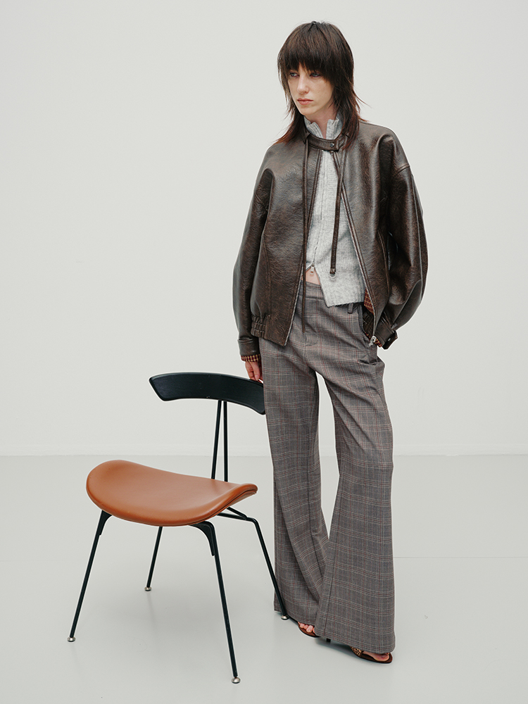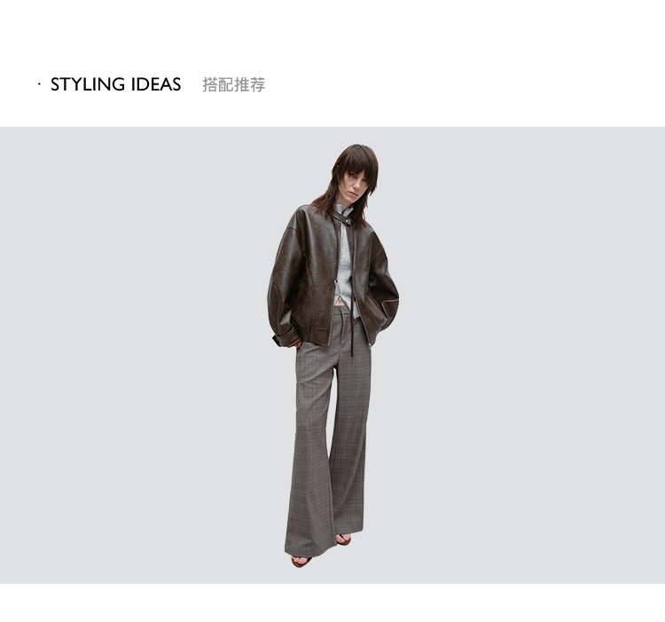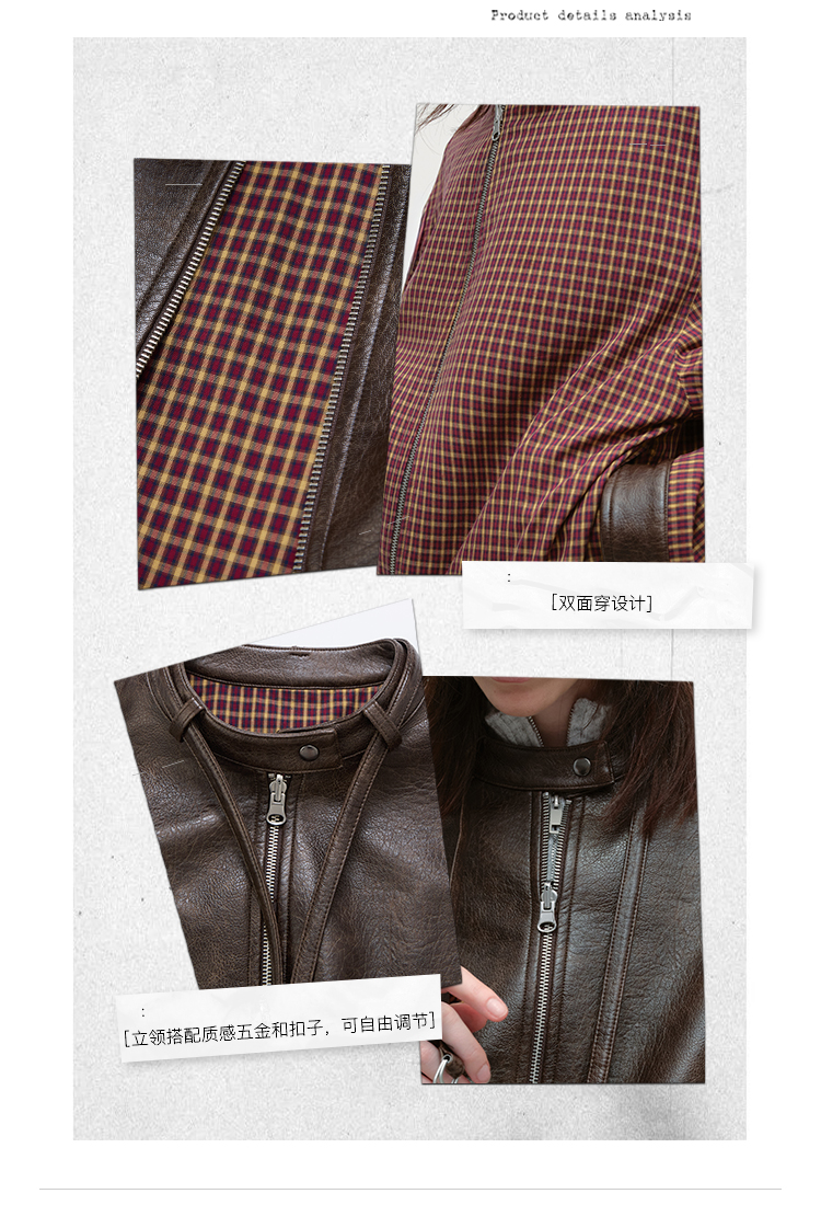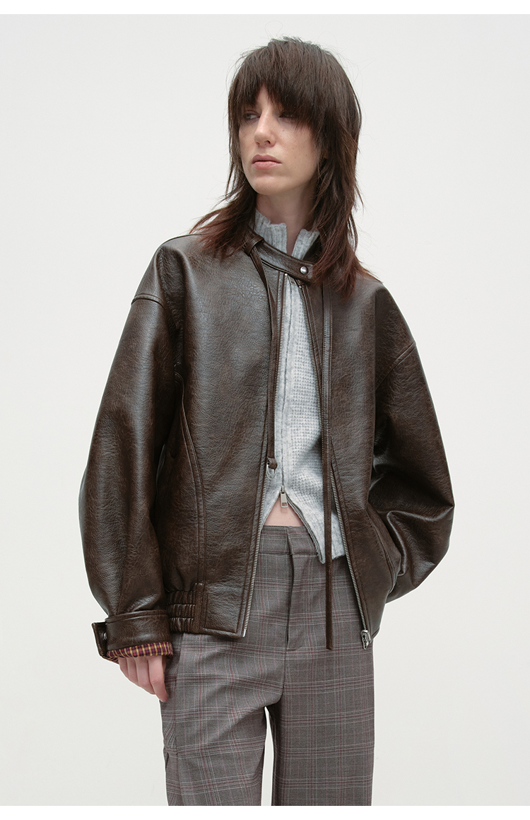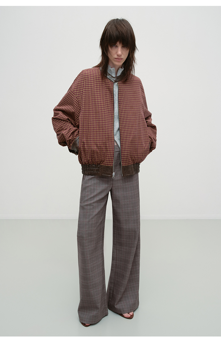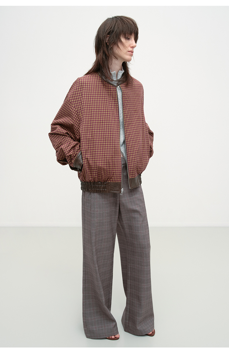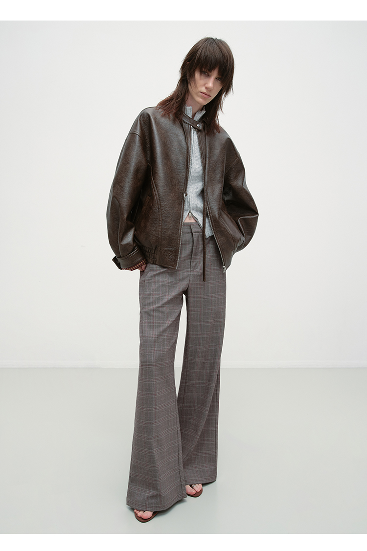 出逃赤岗西/25AWW137/双面穿格纹廓形皮衣