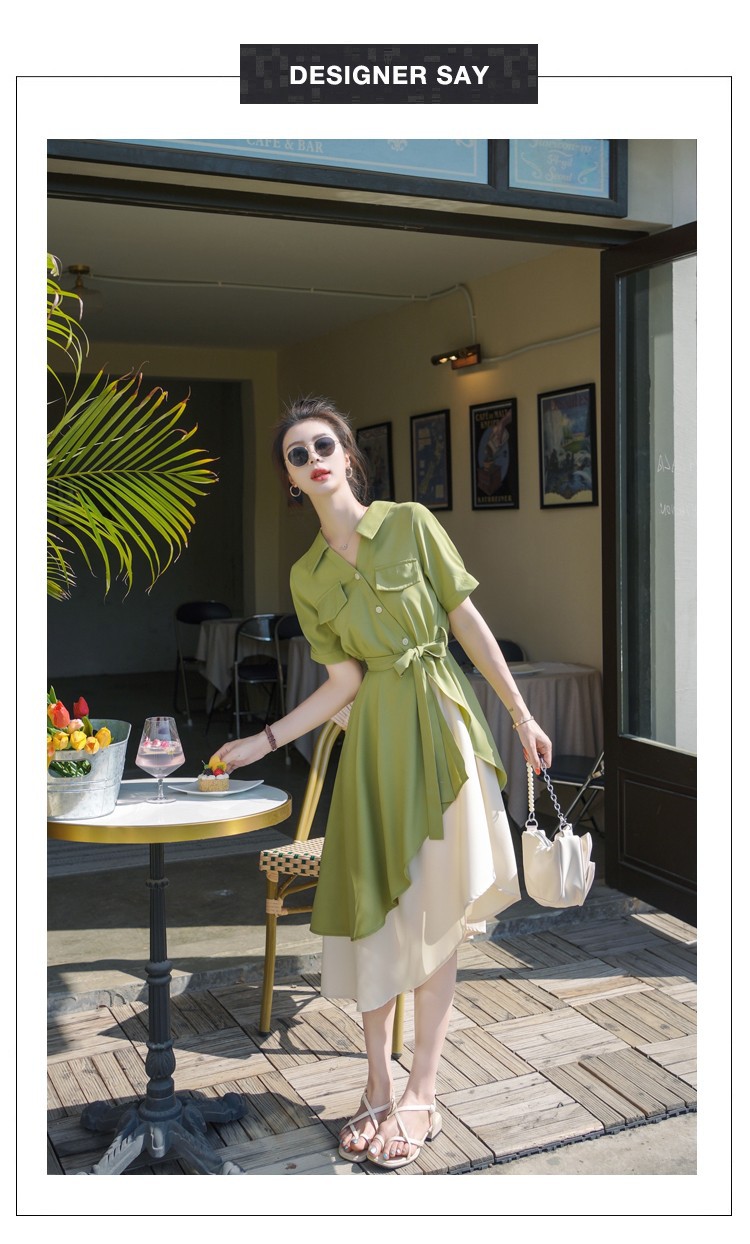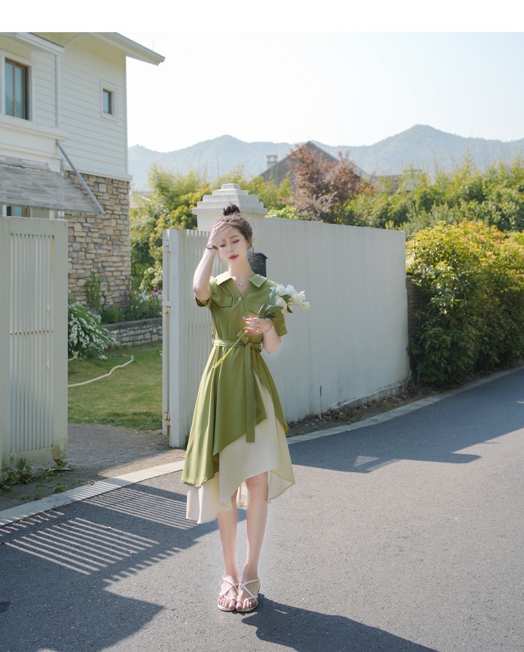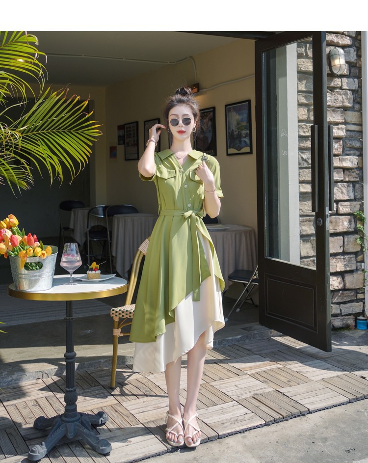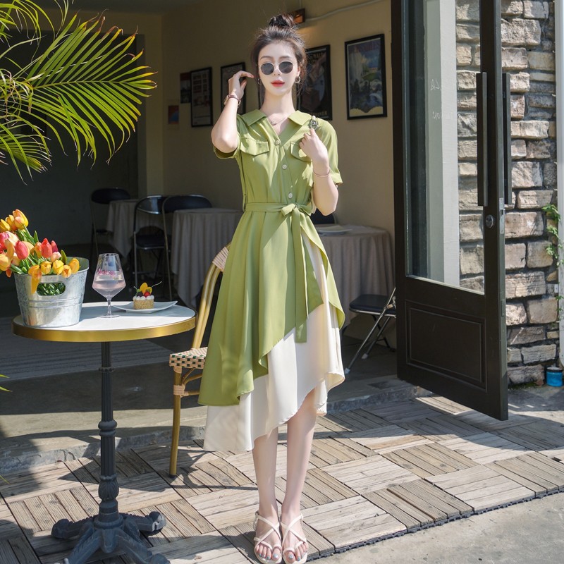 大码微胖女生polo连衣裙女夏季不规则裙子胖mm遮肚显瘦长裙