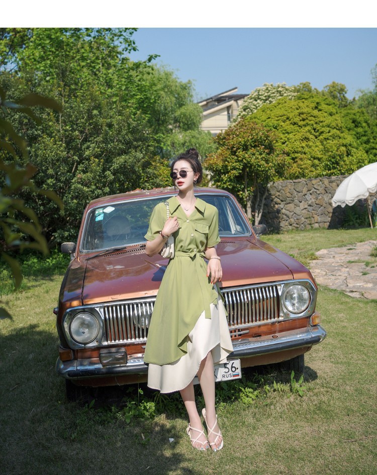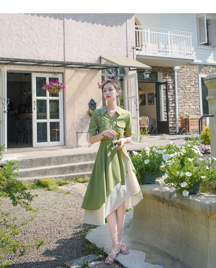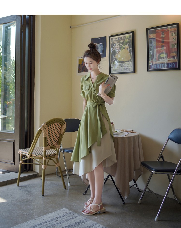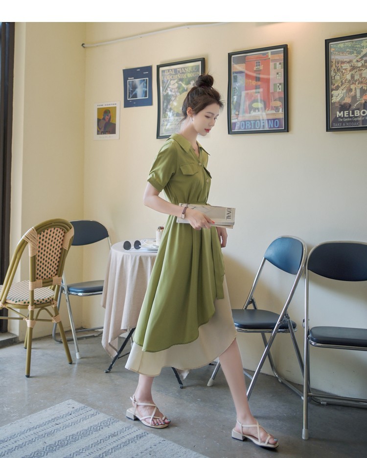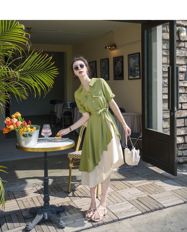 大码微胖女生polo连衣裙女夏季不规则裙子胖mm遮肚显瘦长裙