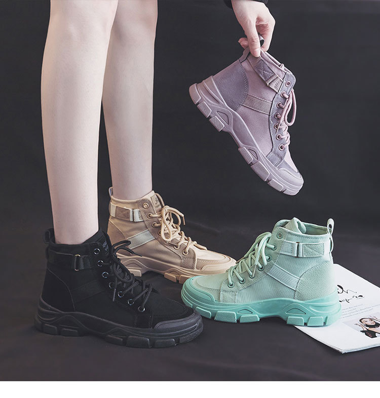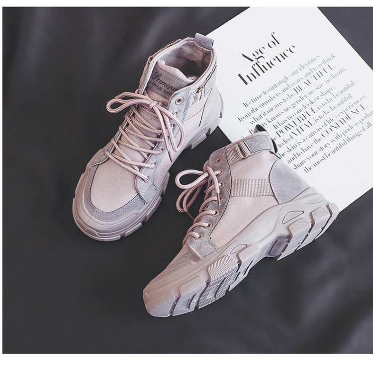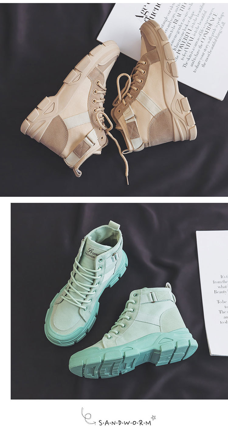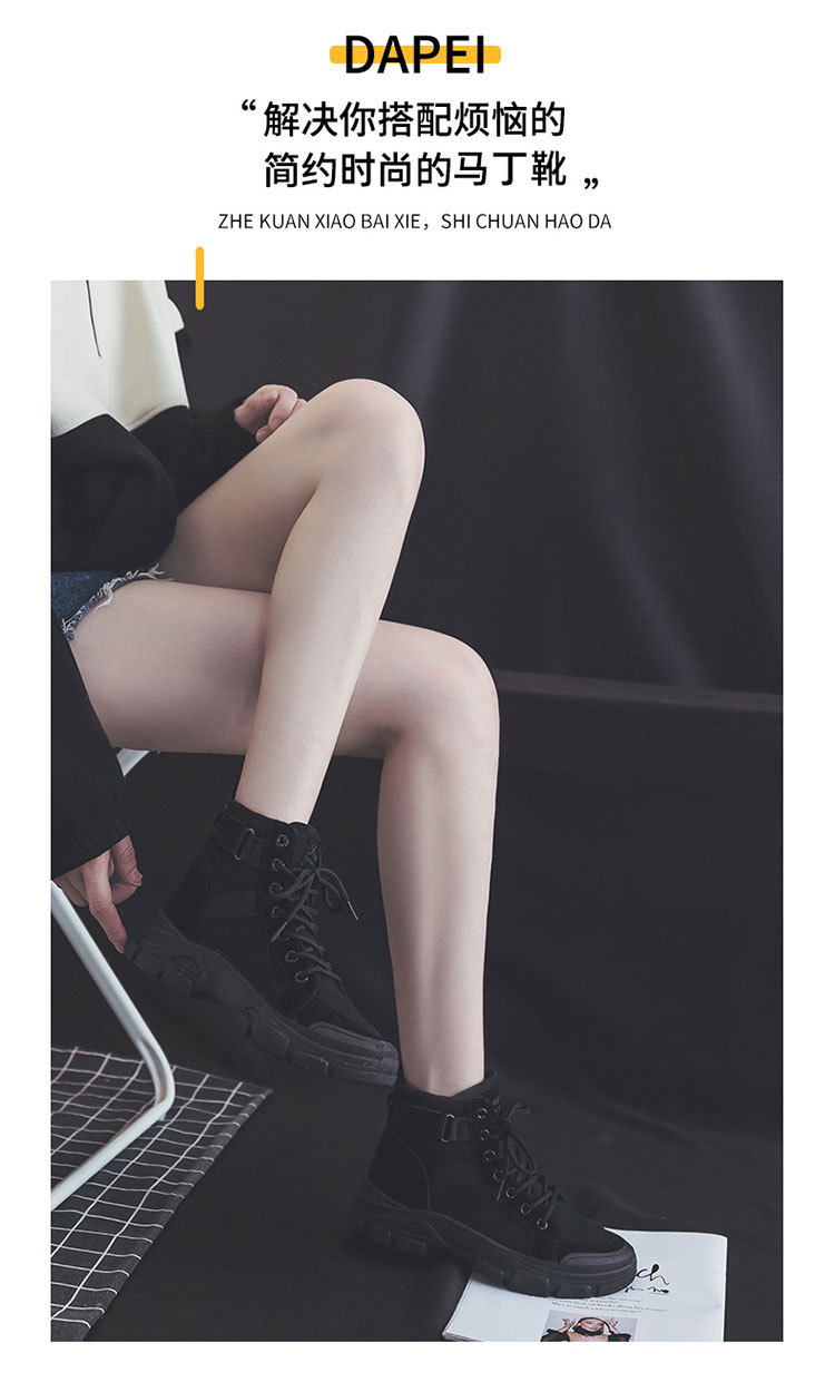 【秋冬新款马丁靴】学生百搭骑士短筒高帮小短靴 chic帆布鞋登山女鞋