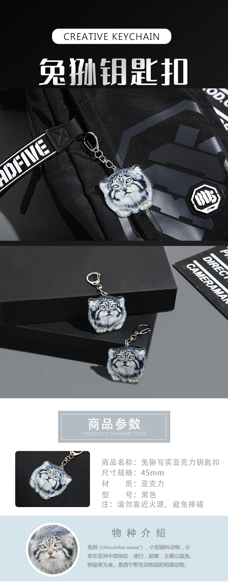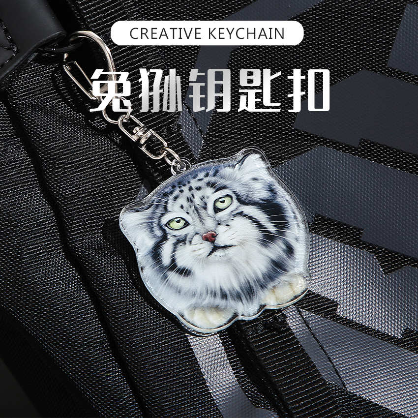 兔狲手绘写实亚克力包包钥匙链挂饰