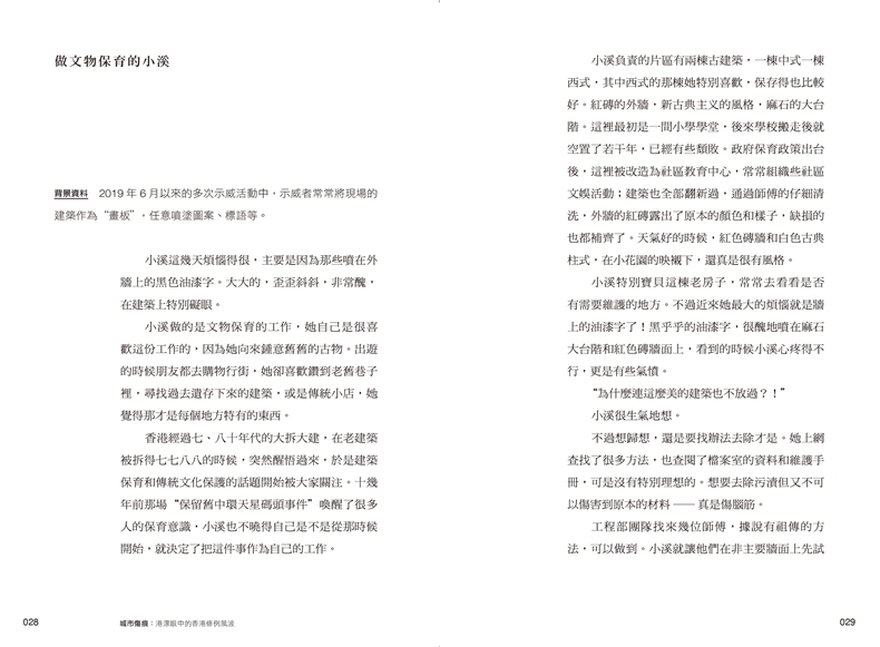 本書試圖對2019年至今發生於香港的社會運動進行觀察、總結、反思,作者從一名“港漂”的視角出發,以親身經歷為基礎,配合傳媒報道,將素材進行整理加工,創作出一系列短文,試圖從不同的角度來呈現此次運動的各種面貌,以及對香港社會帶來的種種影響。書中既囊括他人的故事,記述作者看到、聽到的,裹挾在是次風波中的他/她們的經歷;亦由作者個人的城市觀察,期望能夠折射出多元的社會思考,引發讀者不同的分享和討論。