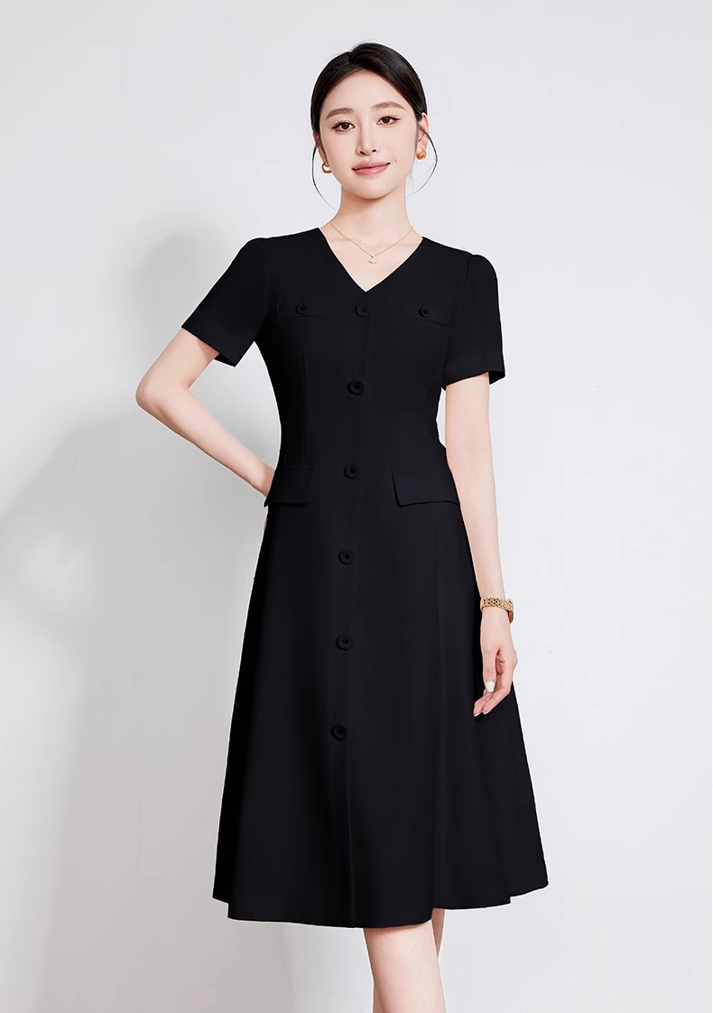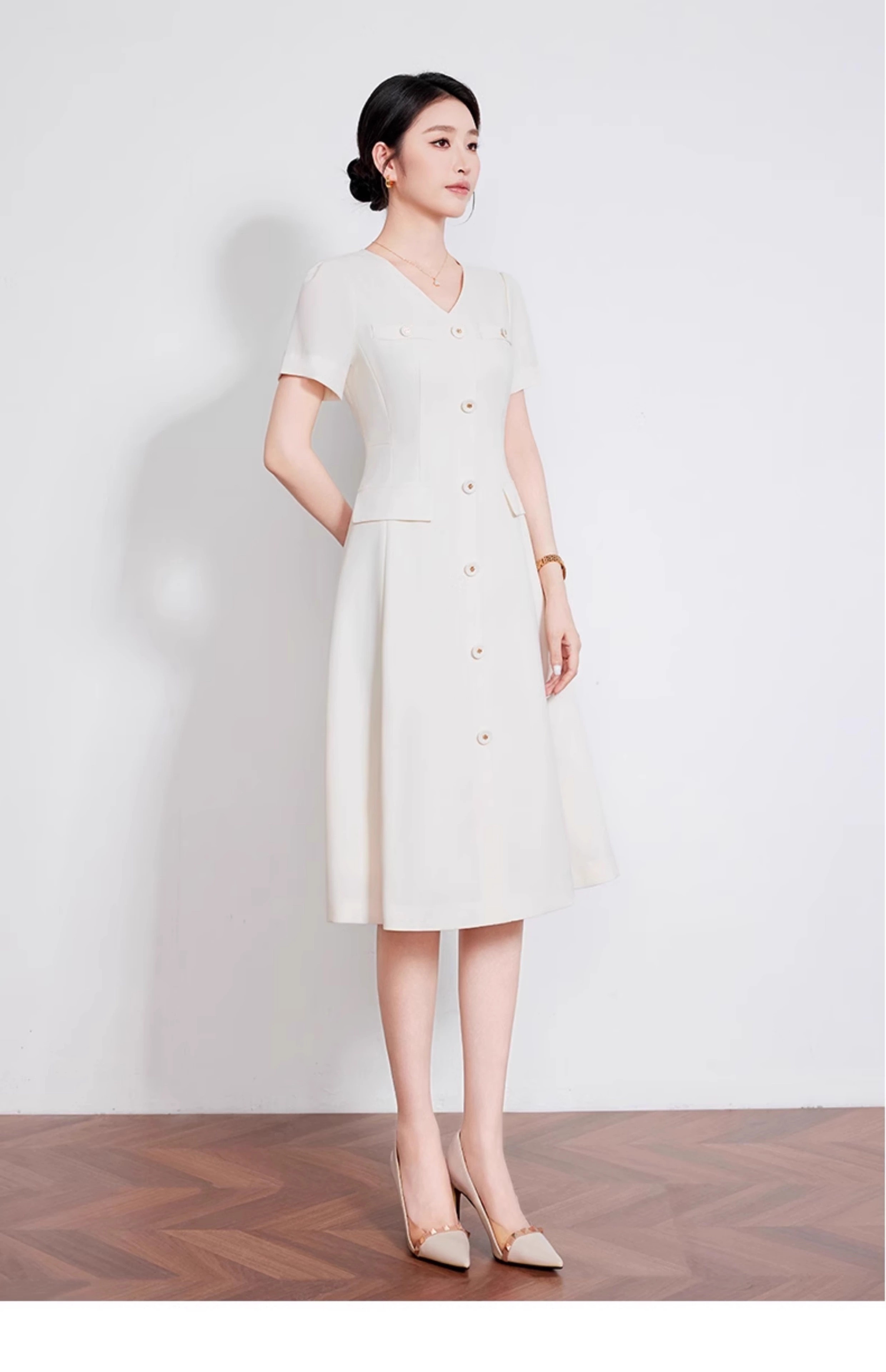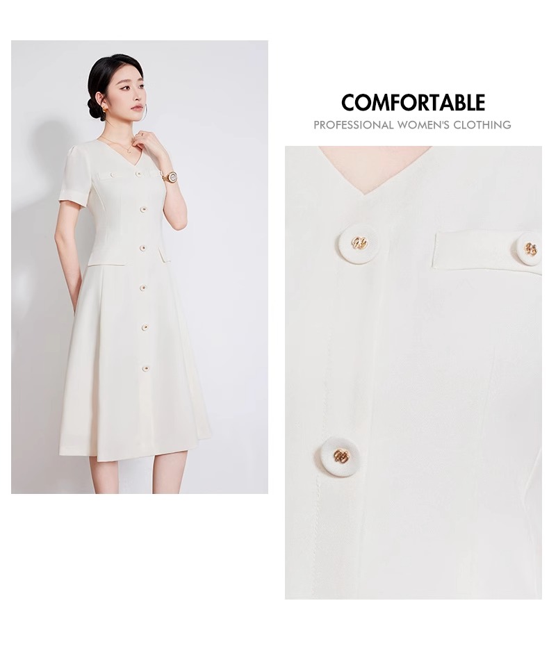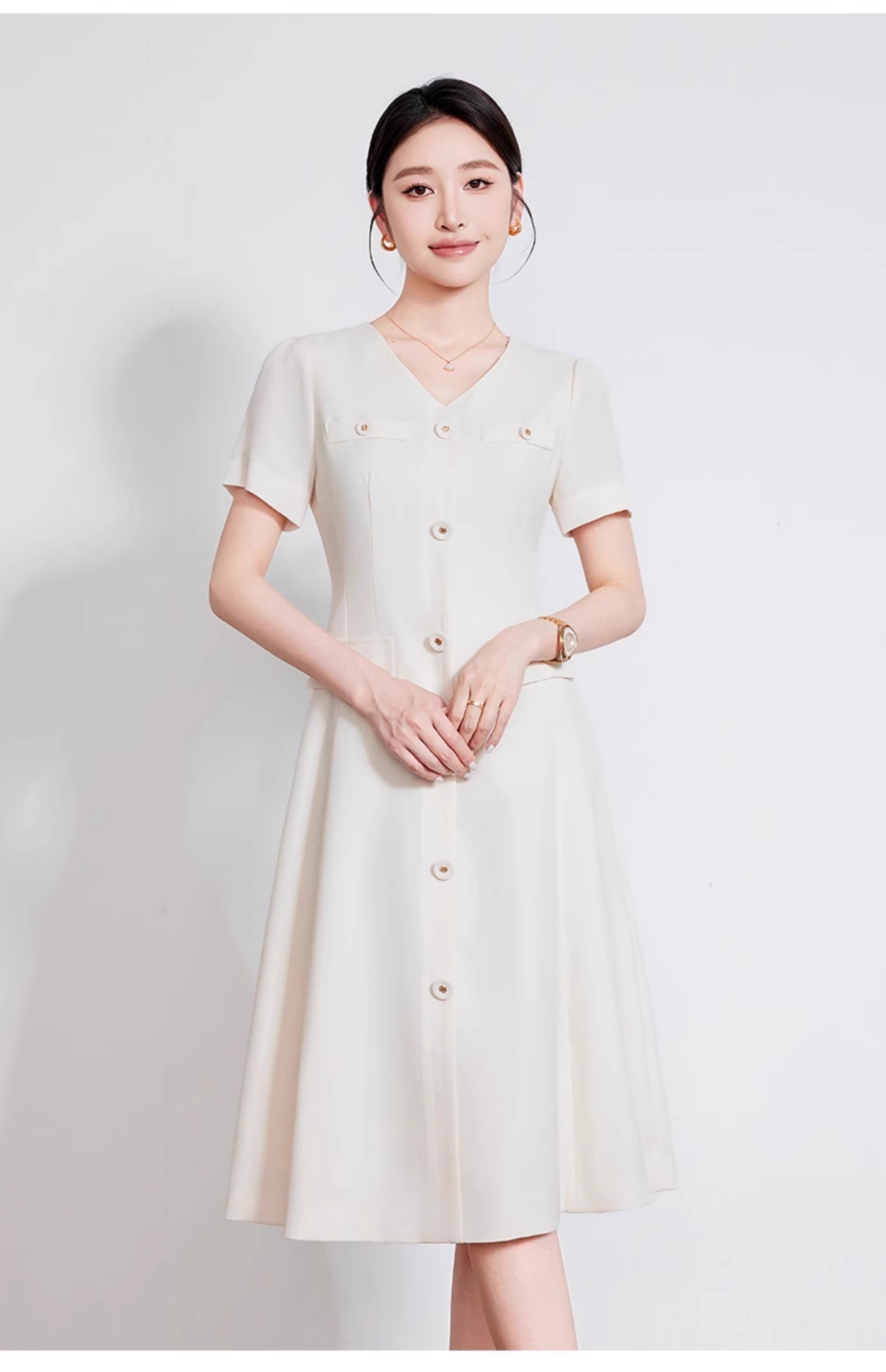 IWY/米白色夏季新款法式小香风连衣裙女高级感V领气质短袖裙子 242053Q1