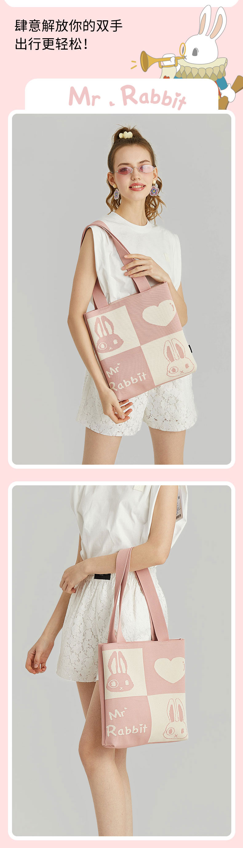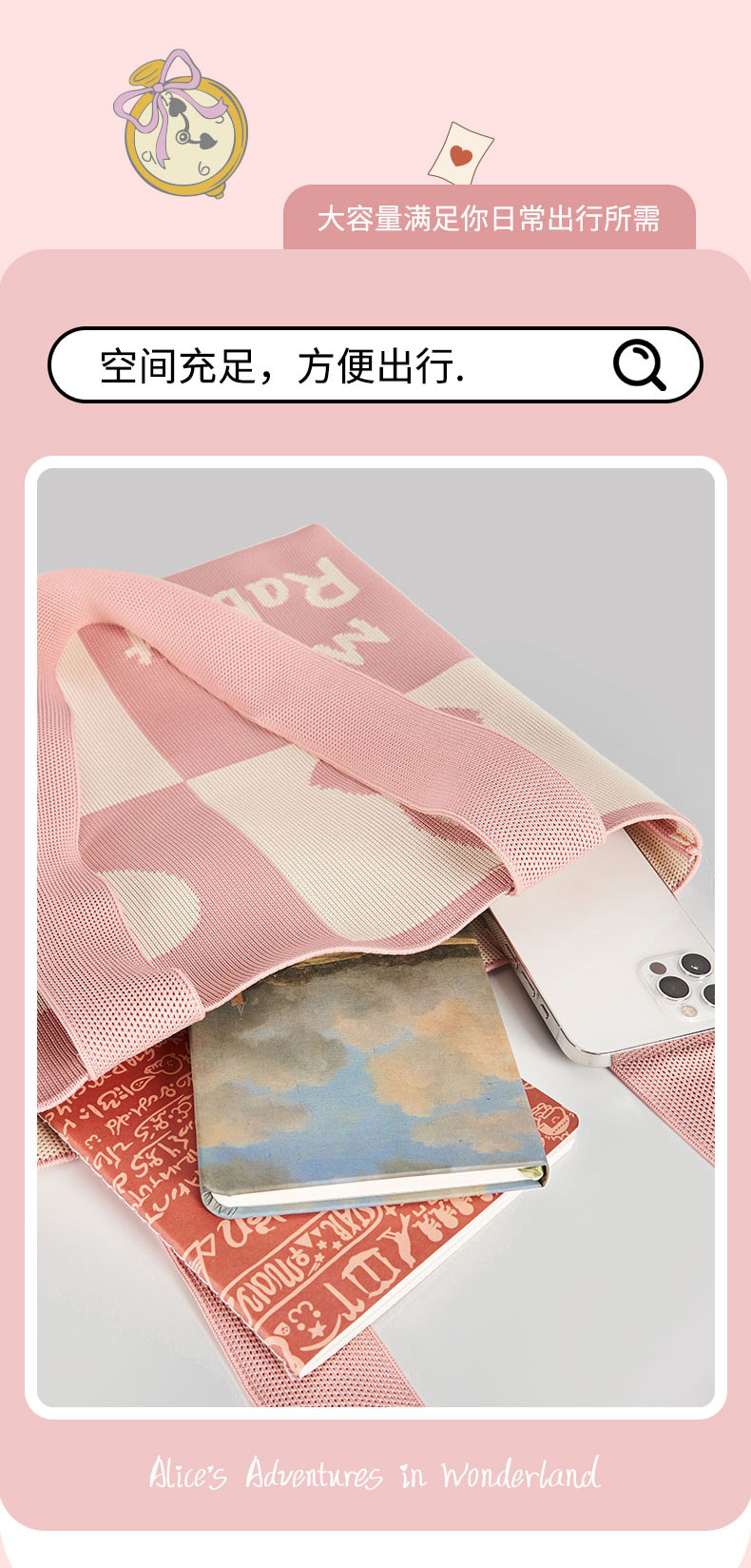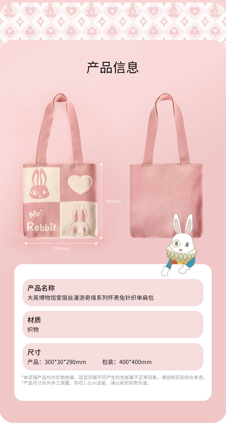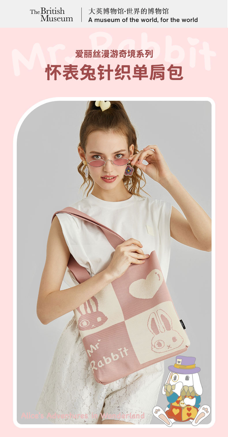 大英博物馆 爱丽丝漫游奇境系列 怀表兔 针织单肩包 手拎包 生日礼物 节庆礼物 送女友 送朋友