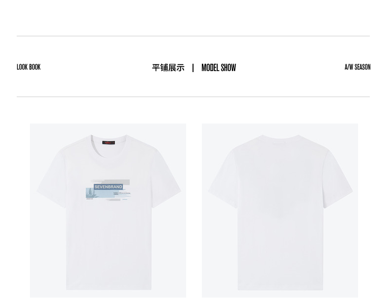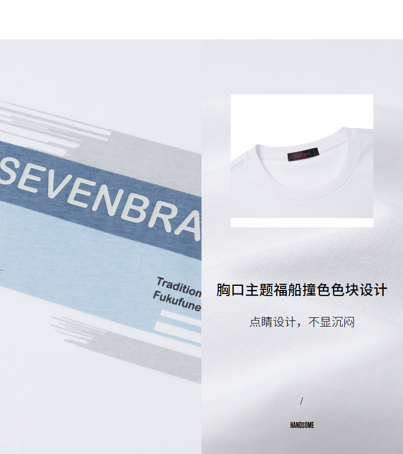 【特价】柒牌男士短袖T恤夏季薄款时尚潮流青年白色纯棉透气圆领上衣124T73100